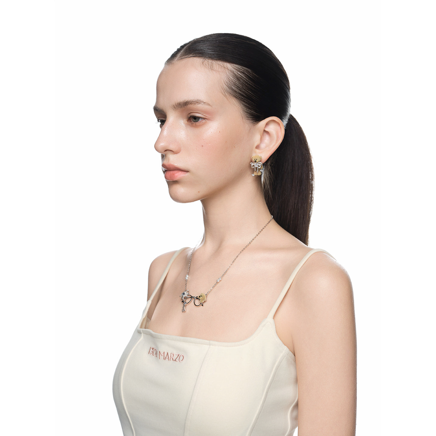 13DE MARZO Scarf Bear Crystal Rhinestone Ear Studs