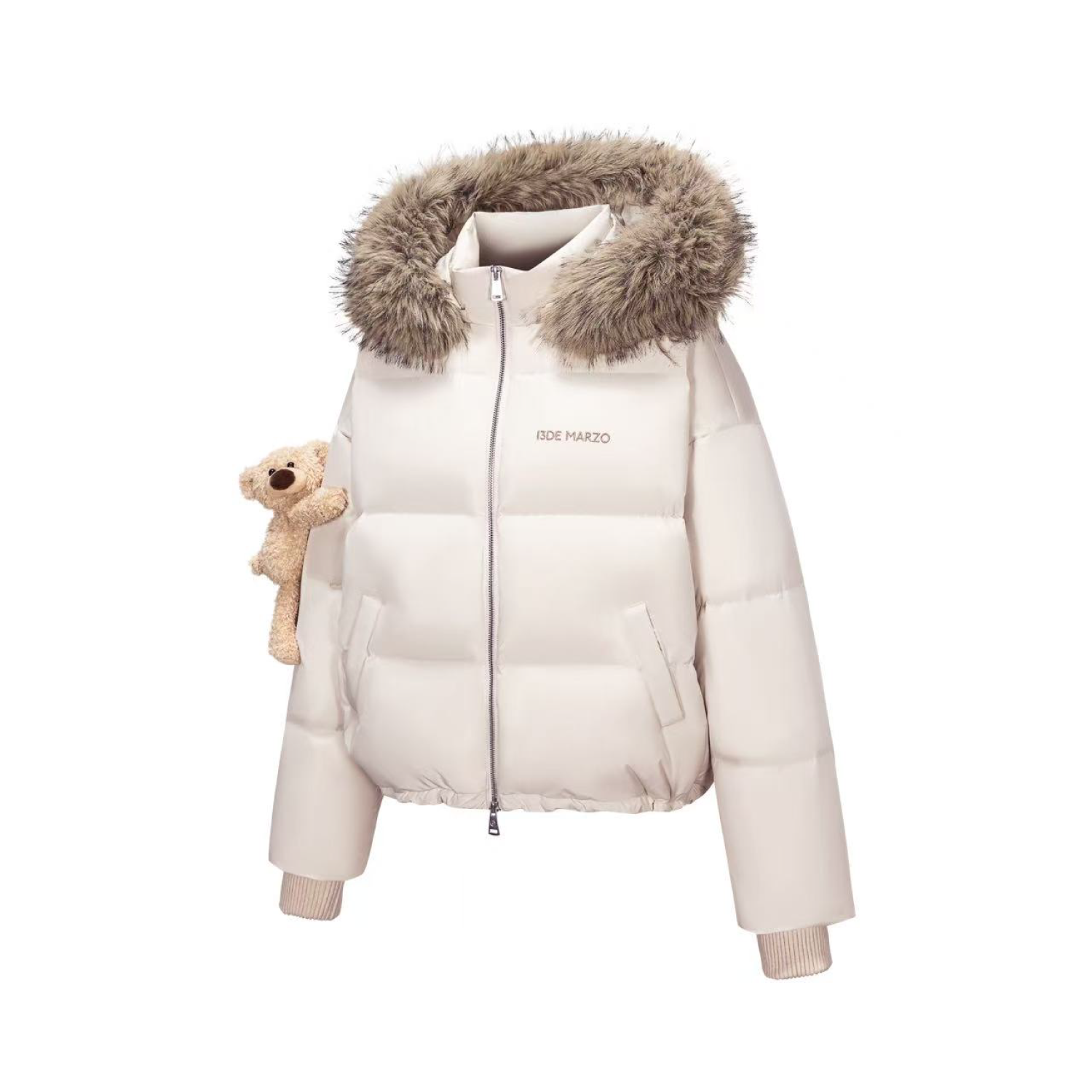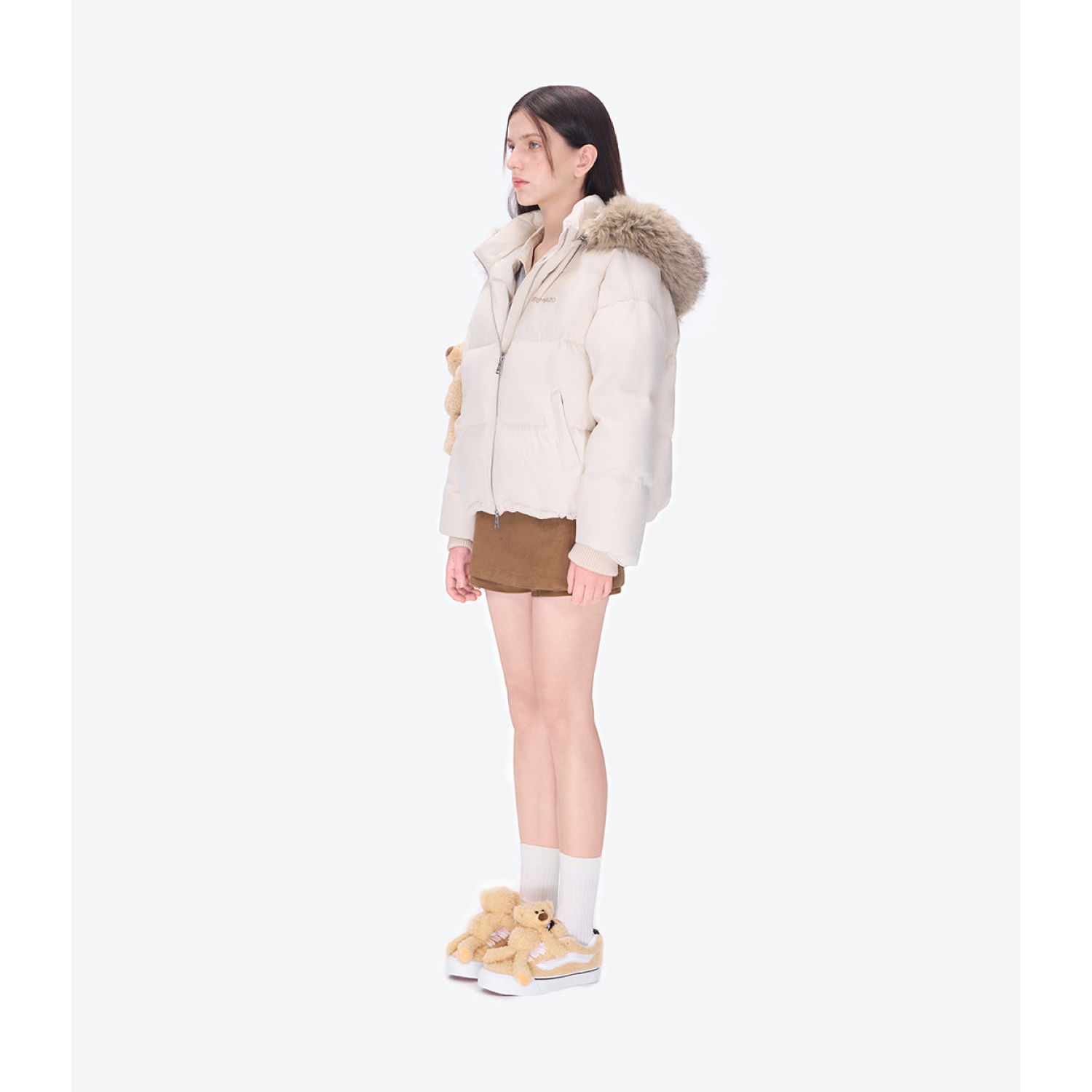 13DE MARZO Bear Fuzzy Hood Down Jacket Almond