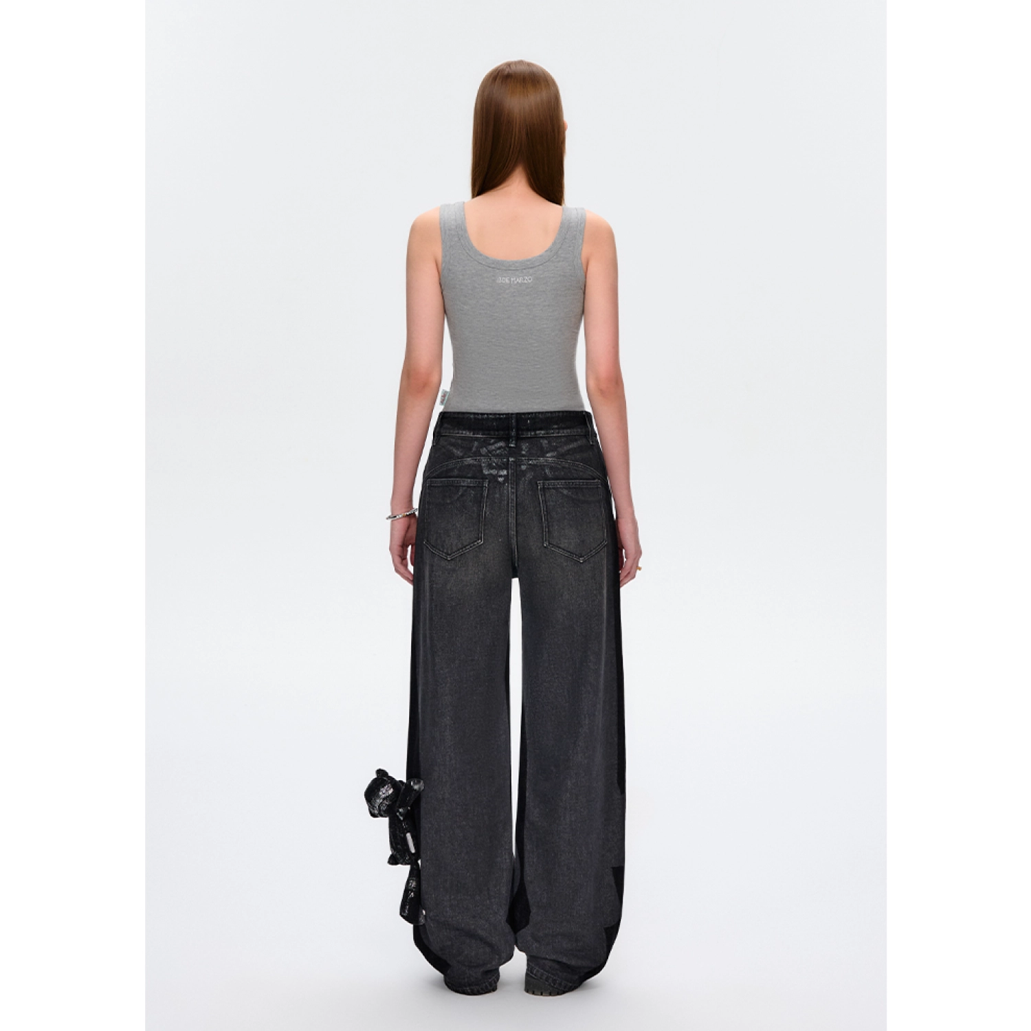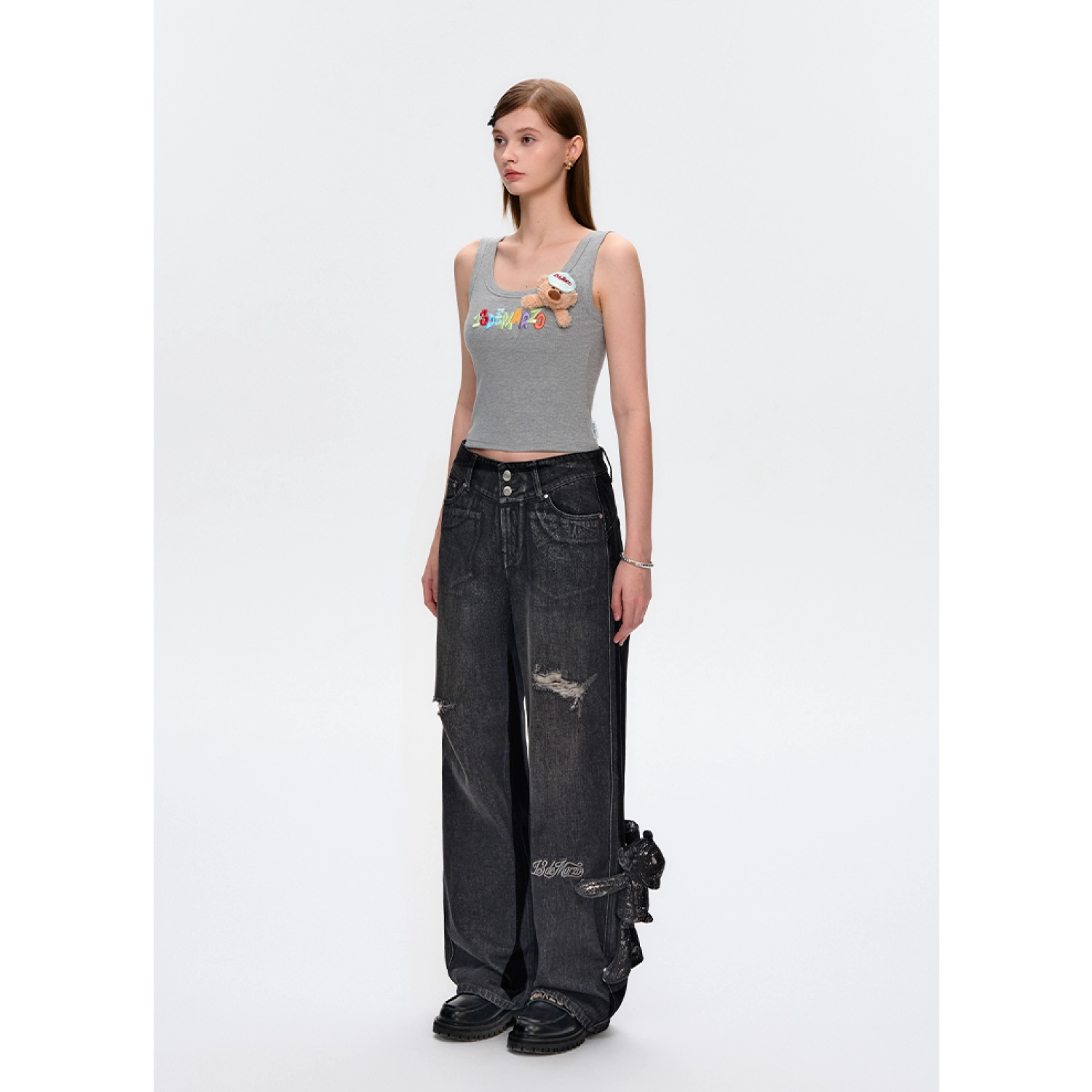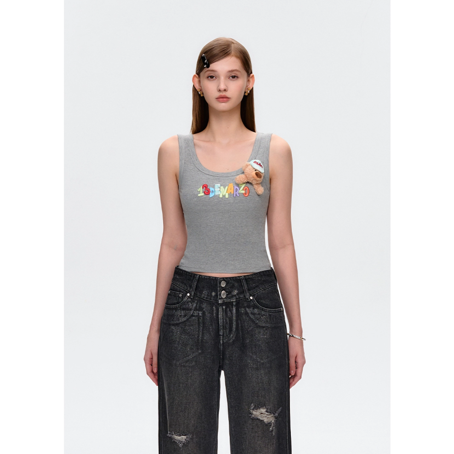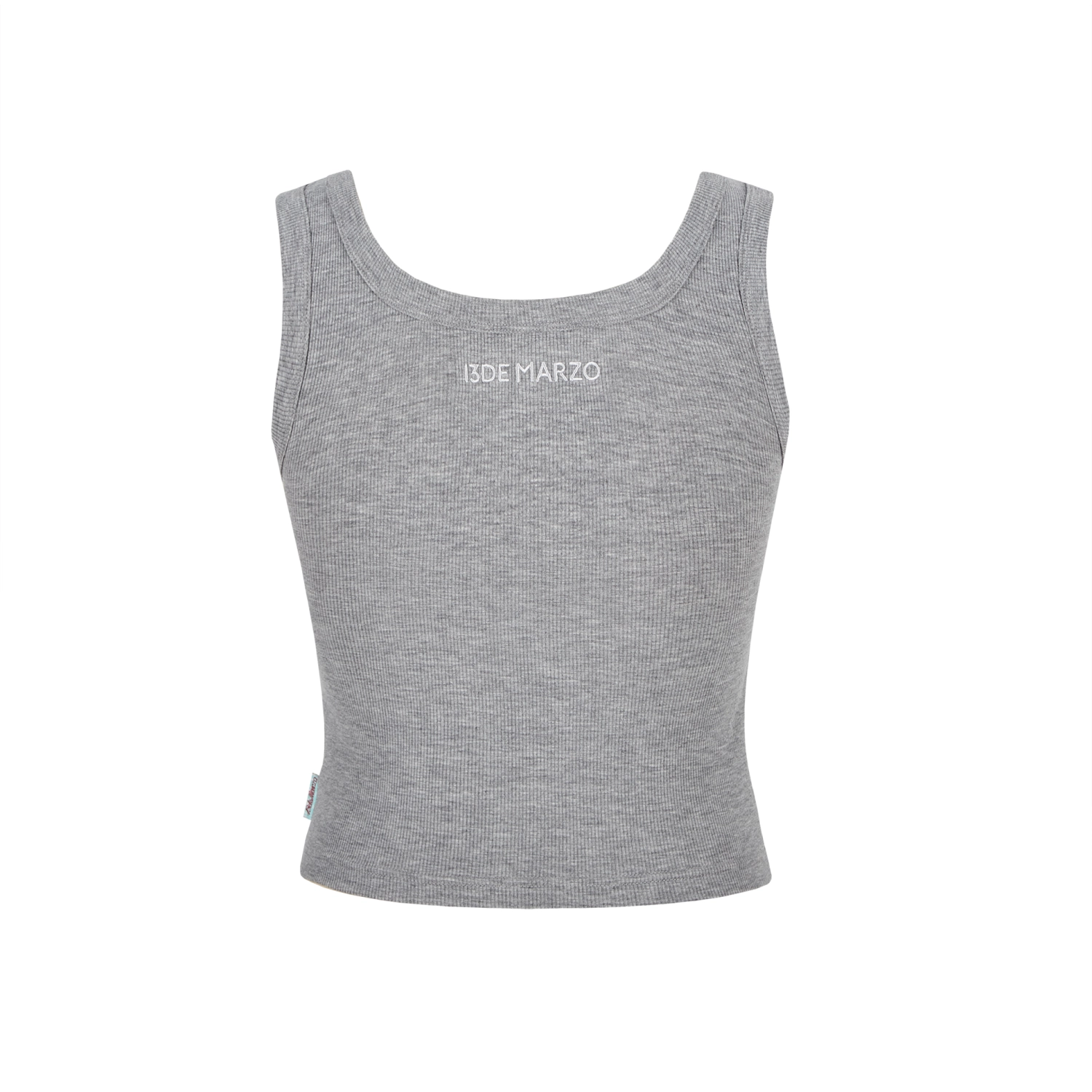 13DE MARZO Embroidered Colour-block Letter Tank Grey