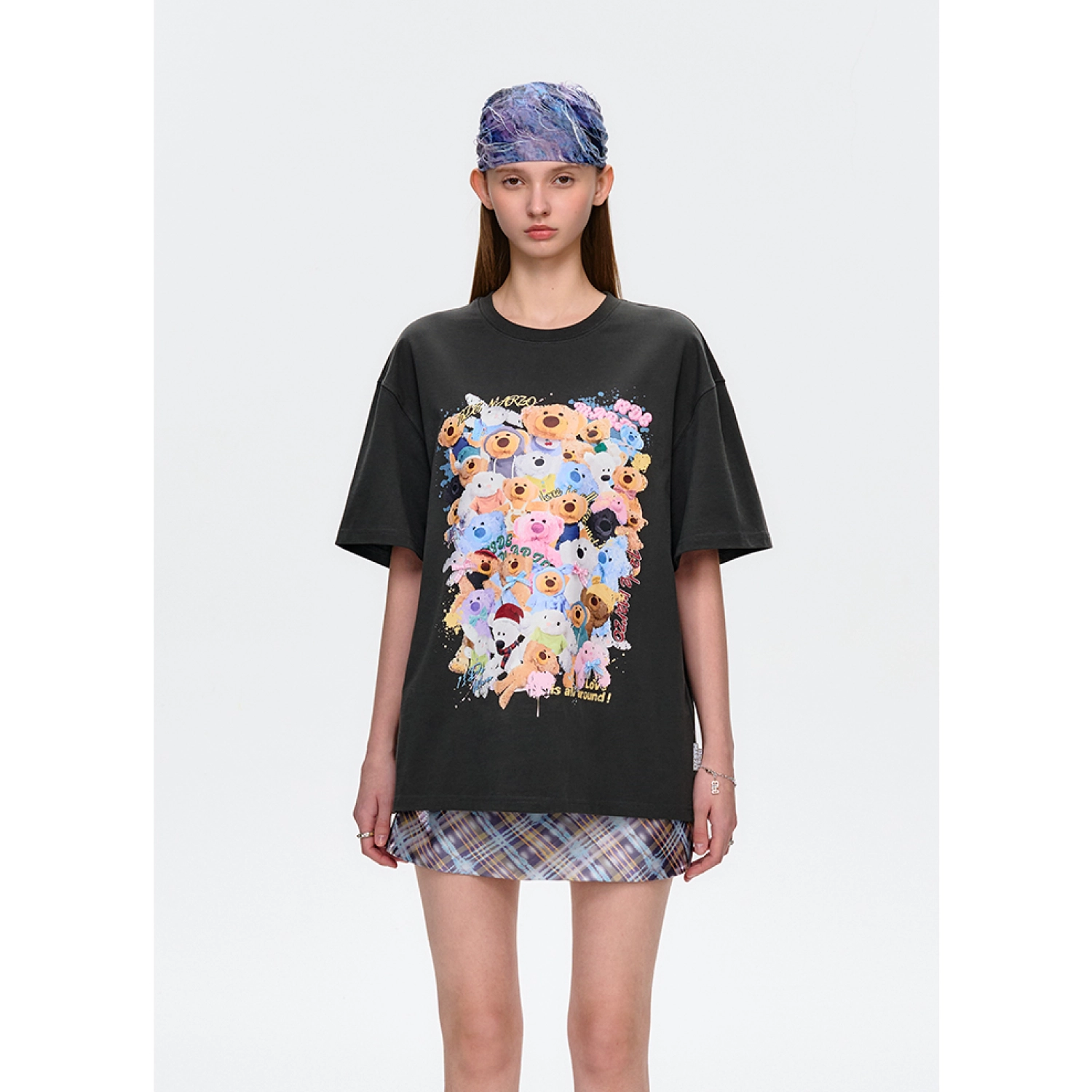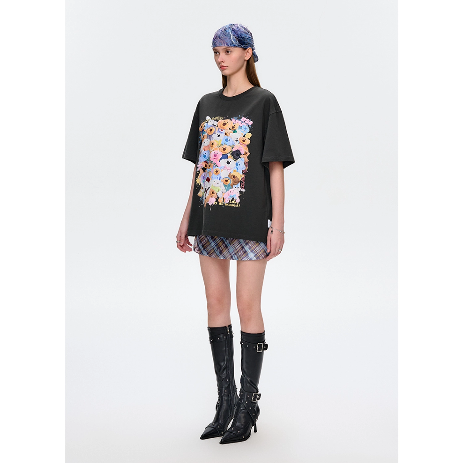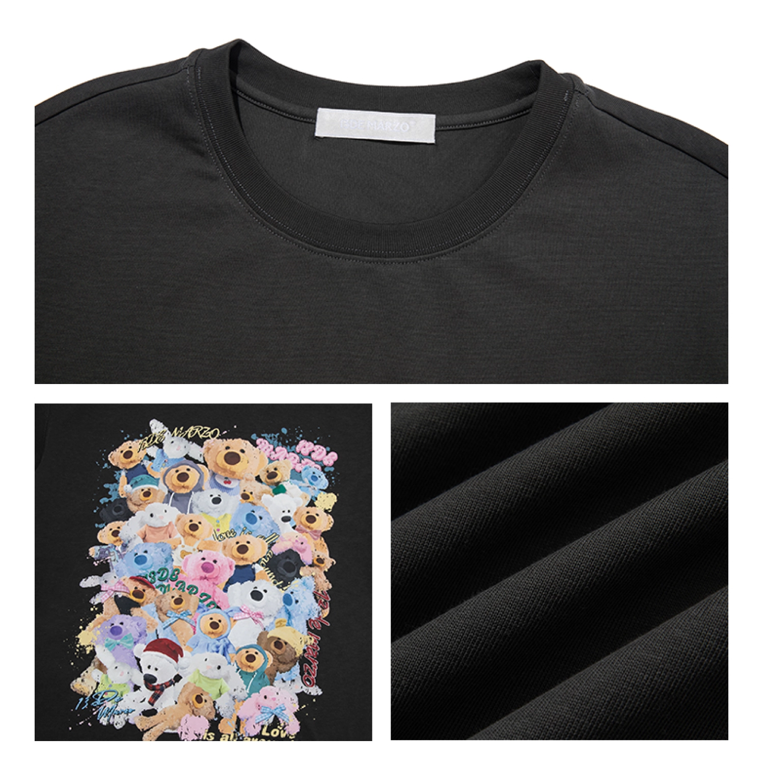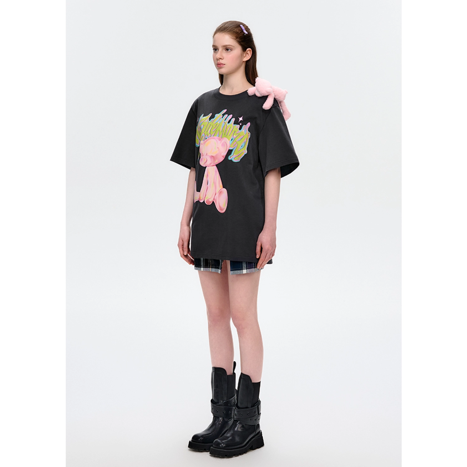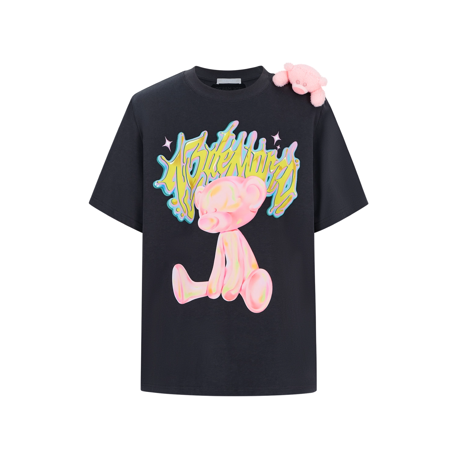 13DE MARZO Illustrated Colourful Bear T-Shirt Dark Grey