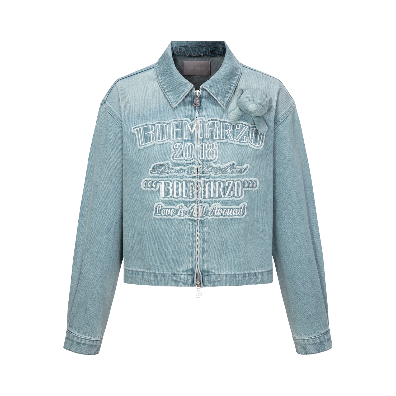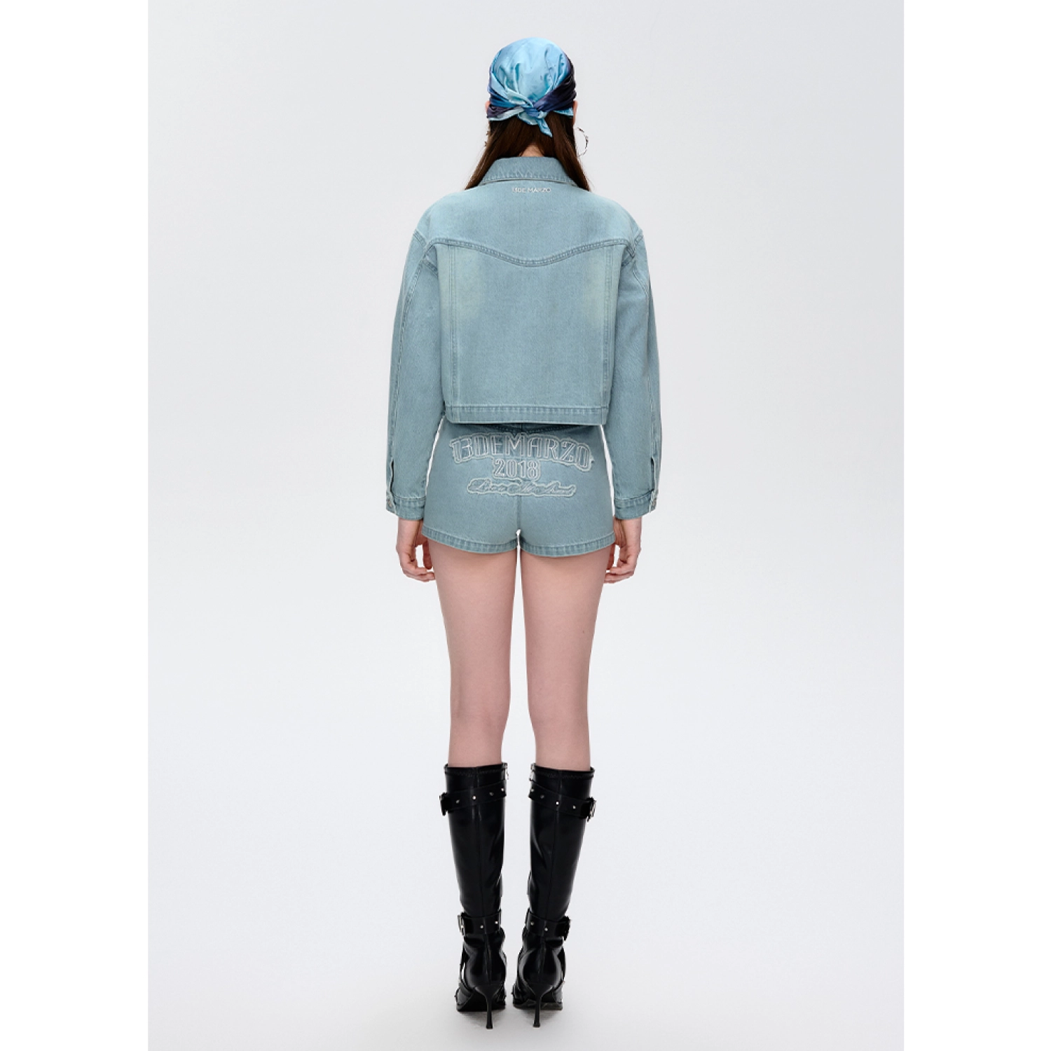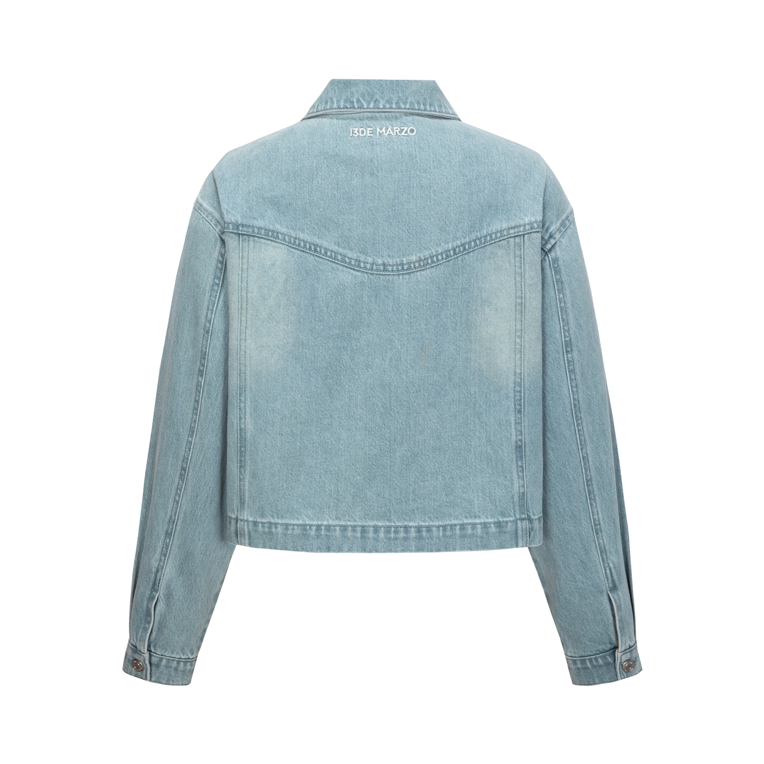 13DE MARZO Denim Frayed Embroidered Jacket Blue