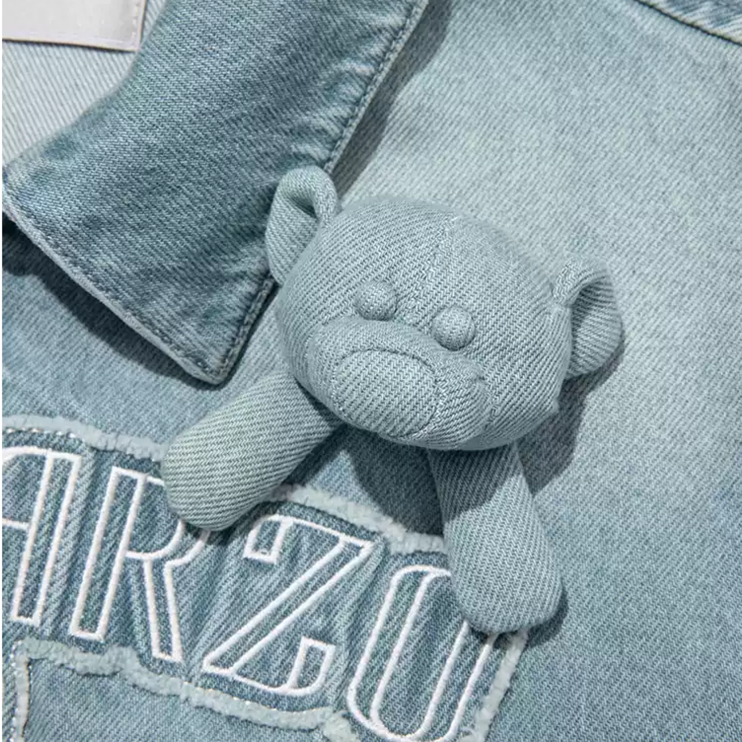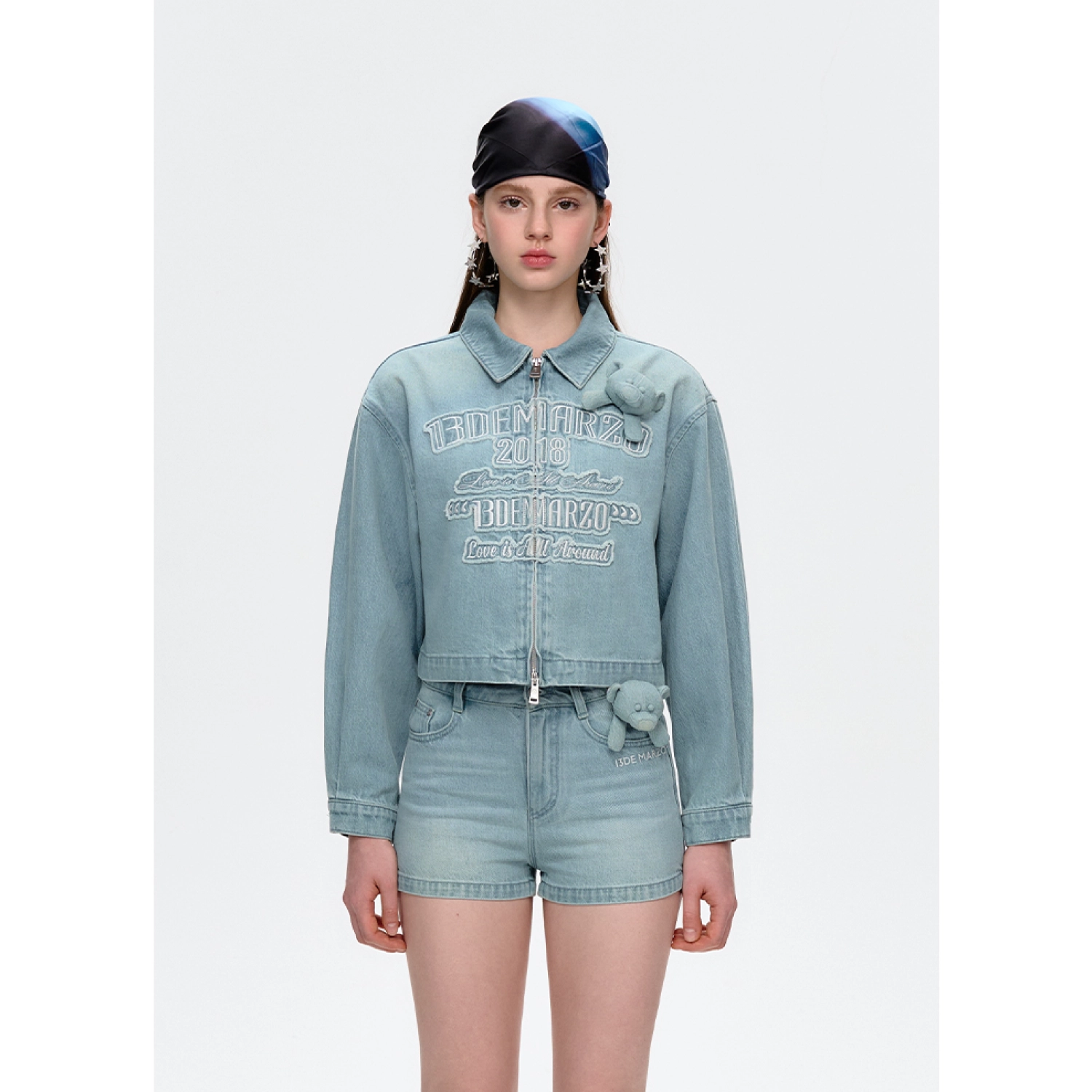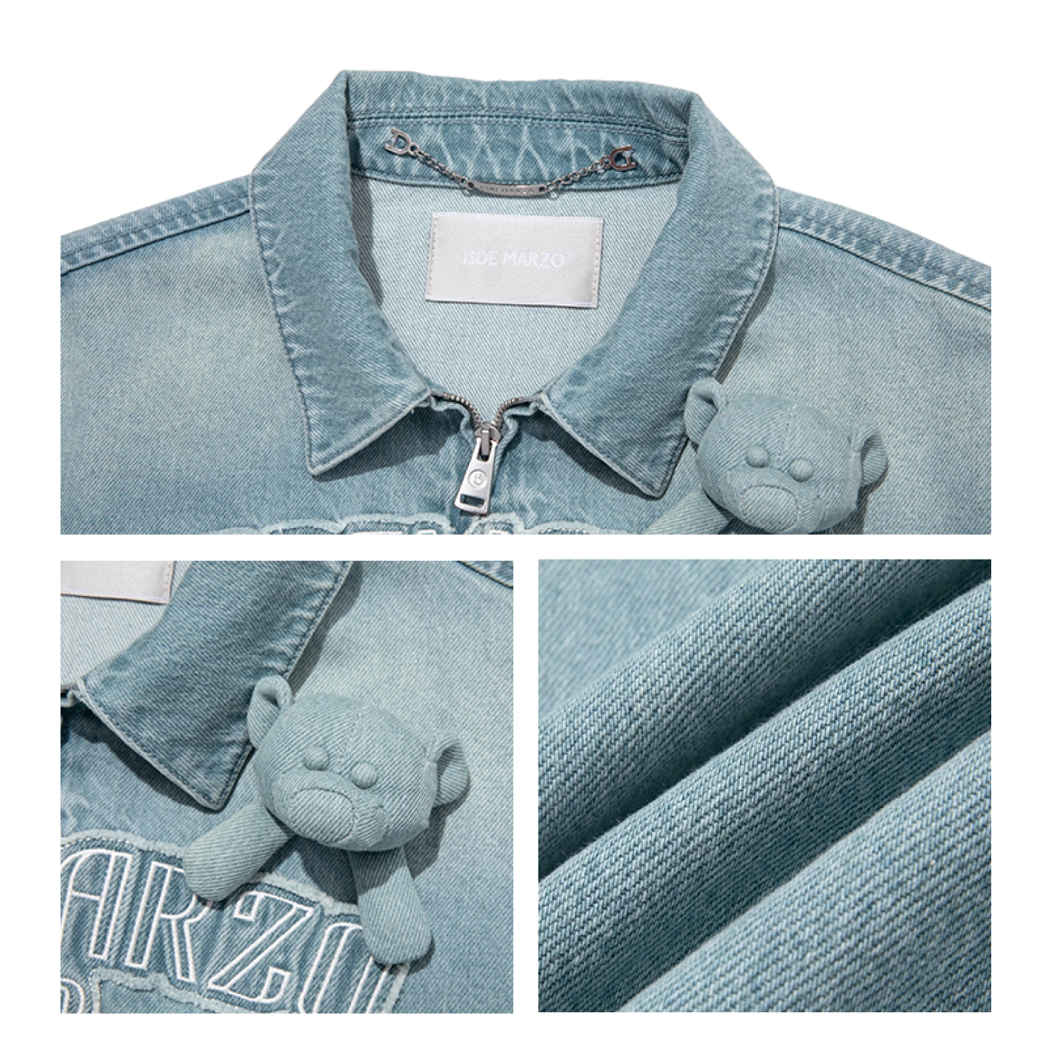13DE MARZO Denim Frayed Embroidered Jacket Blue