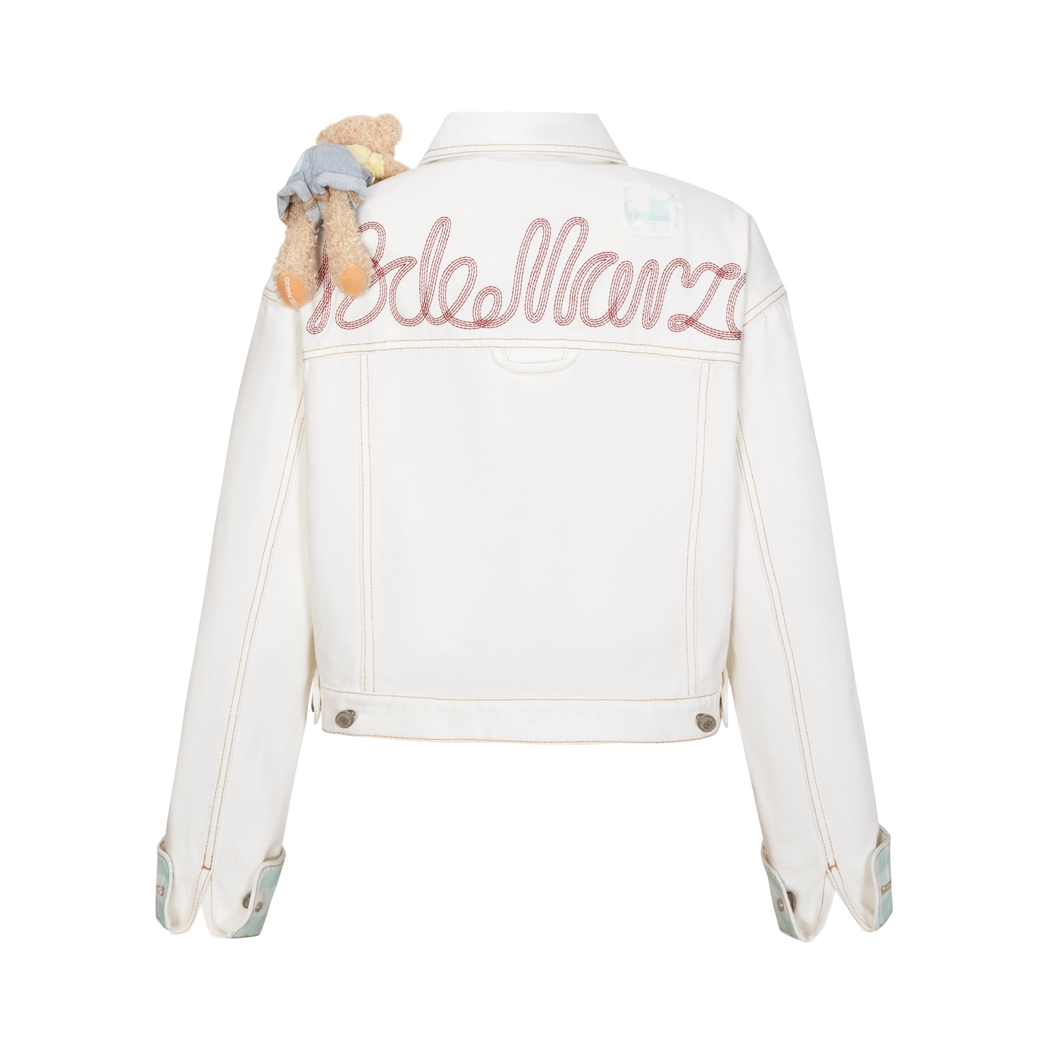 13DE MARZO Plaid Cuffed Sleeve Denim Jacket White