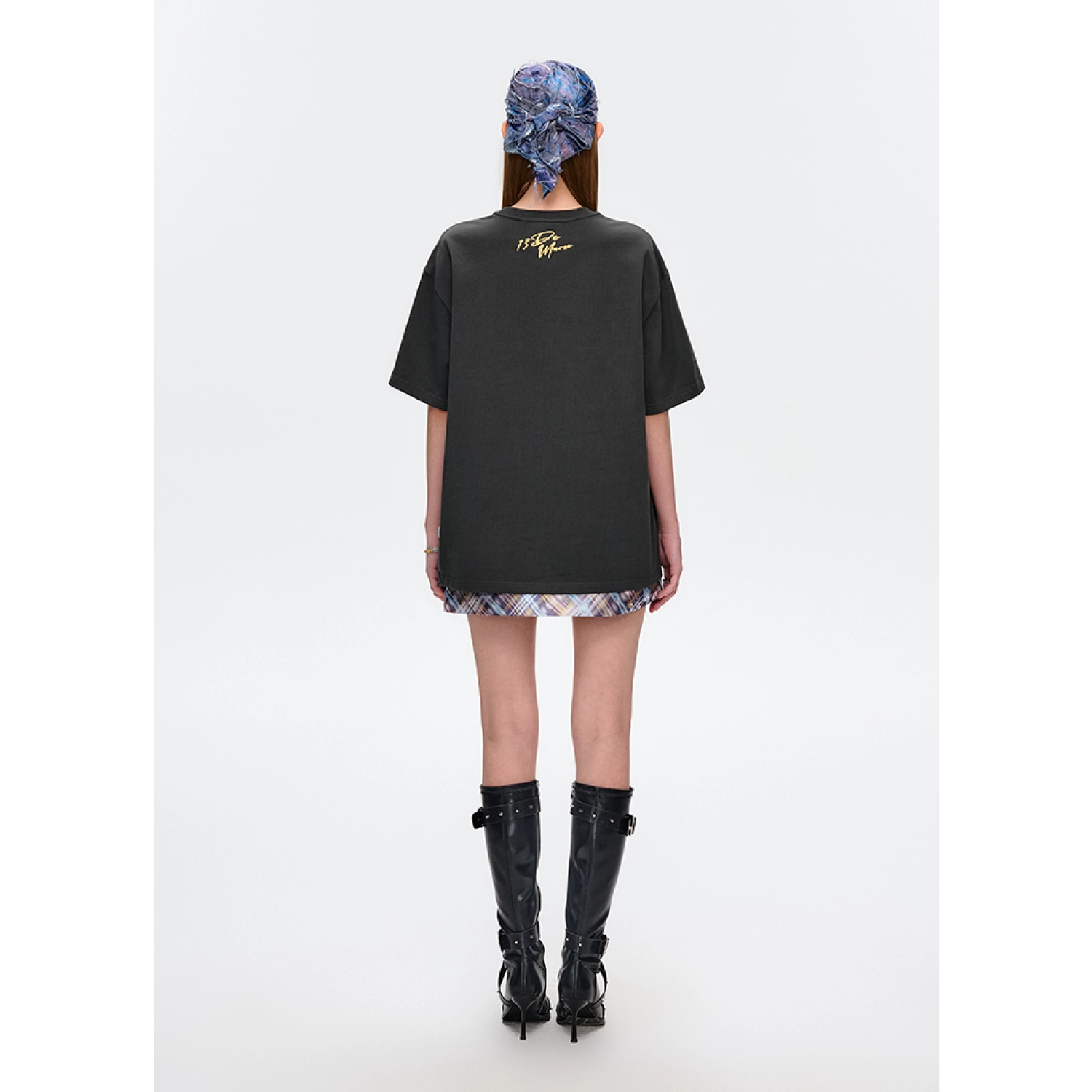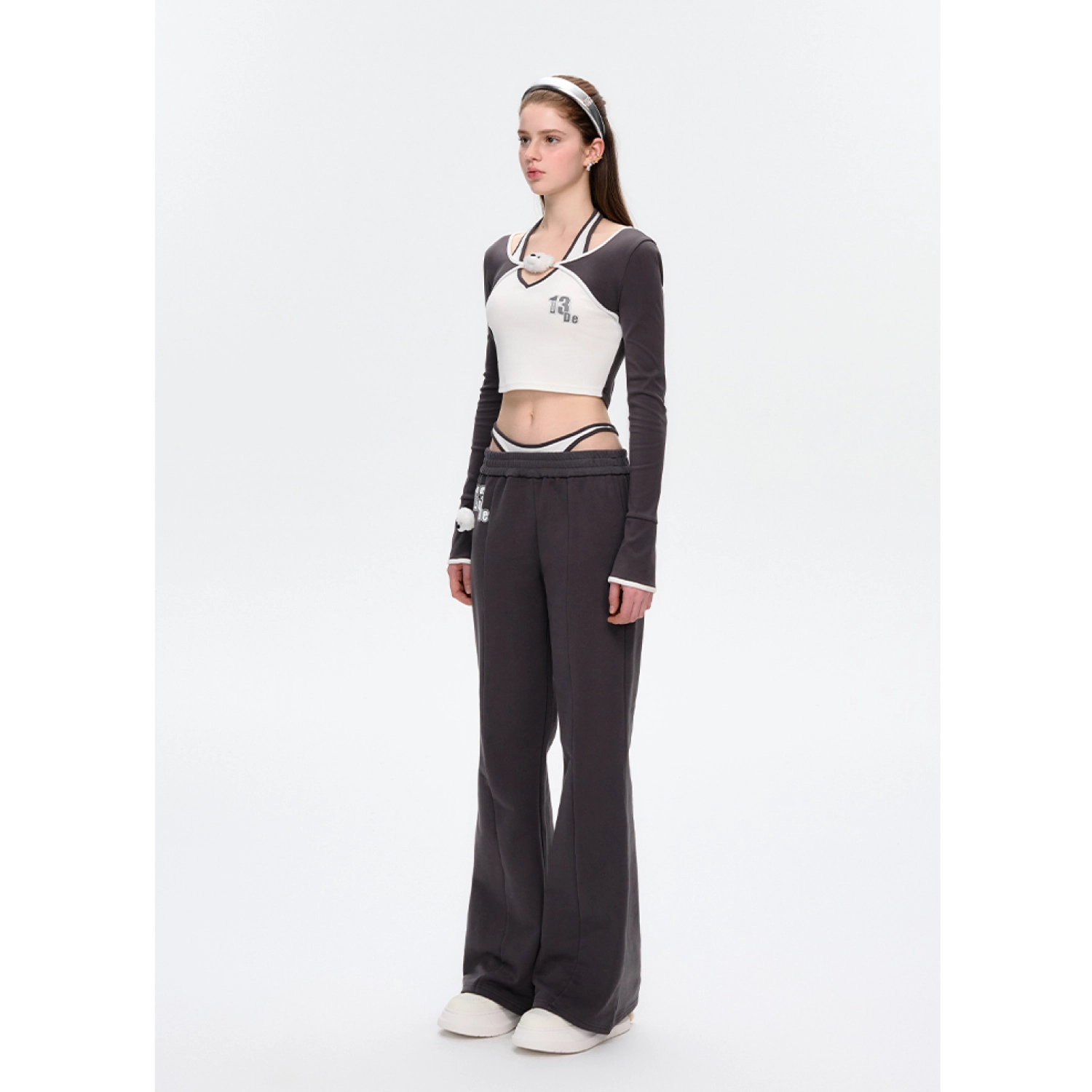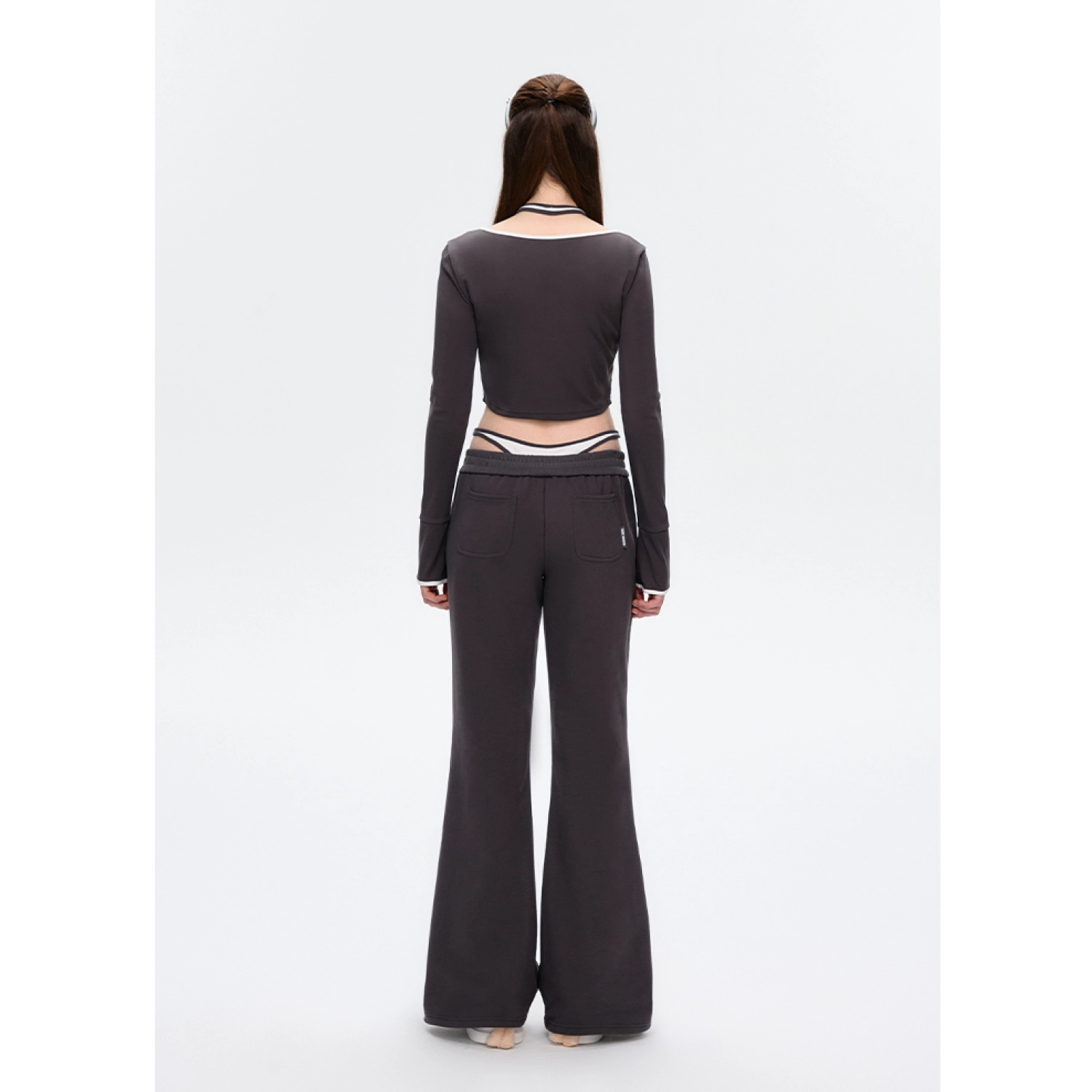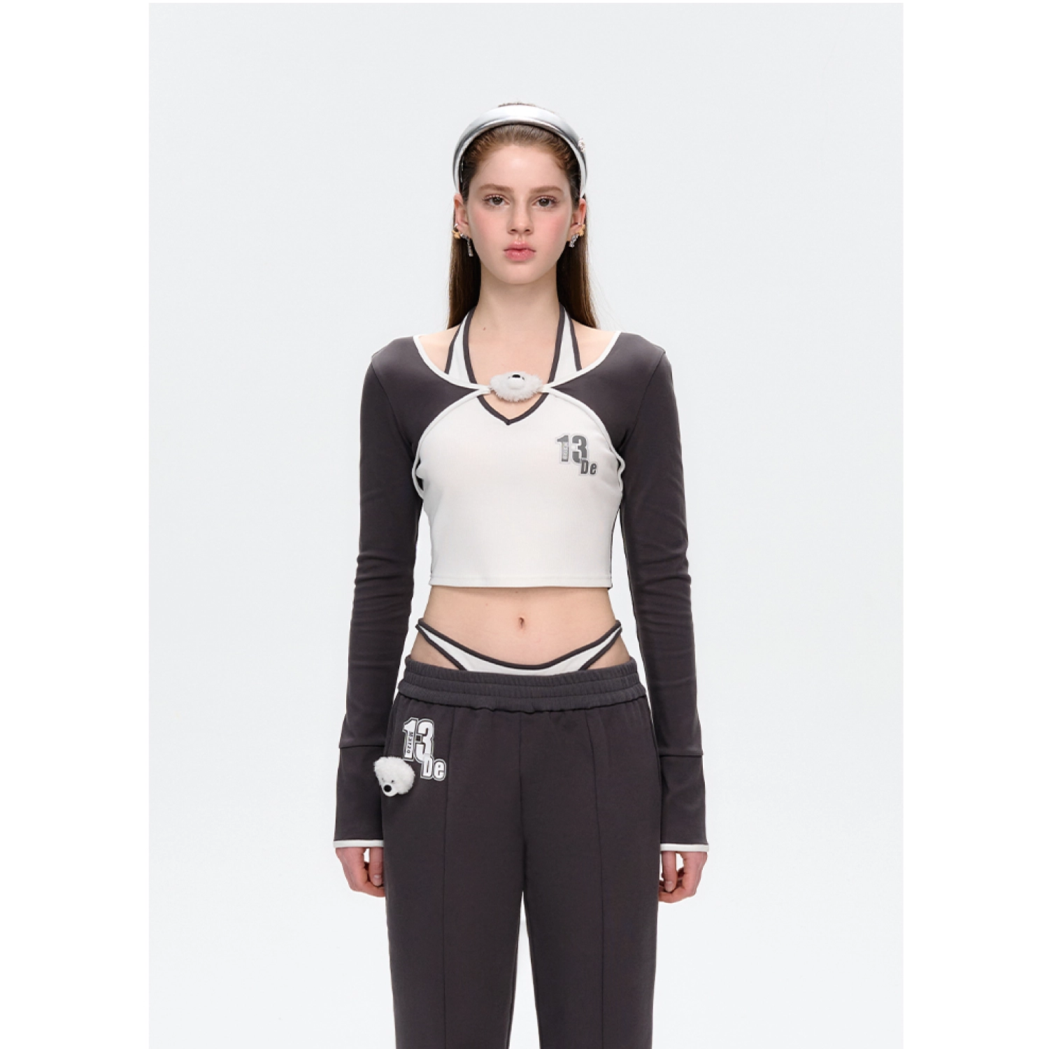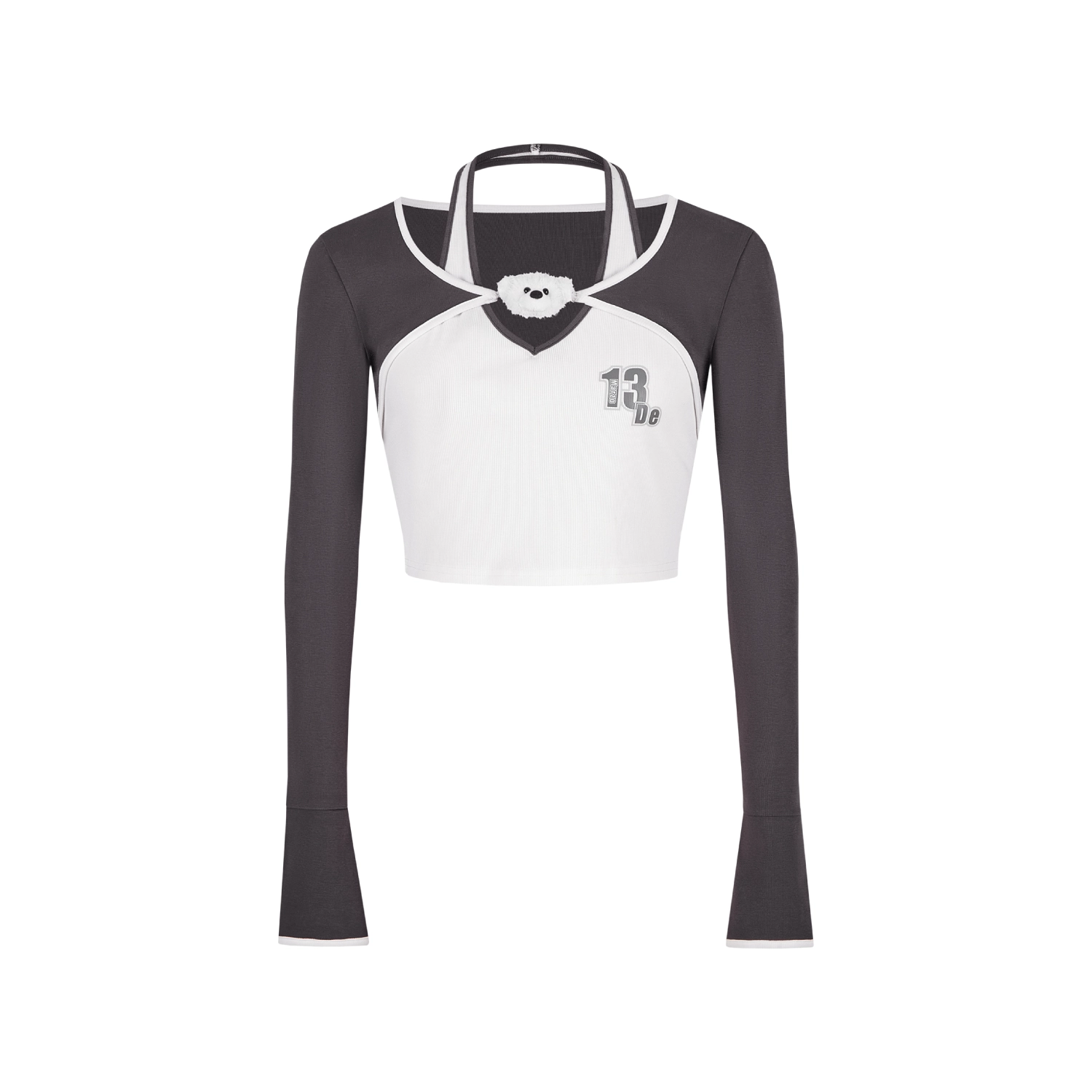 13DE MARZO Faux Two-Piece Vintage Long Sleeve Dark Grey