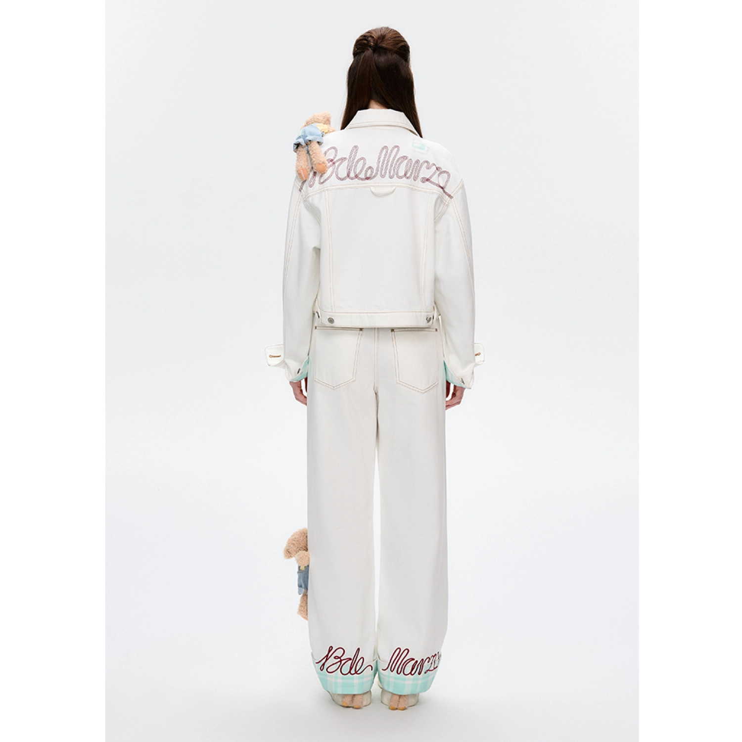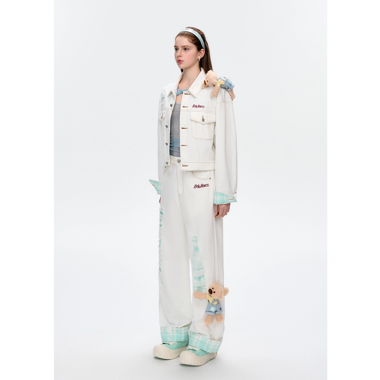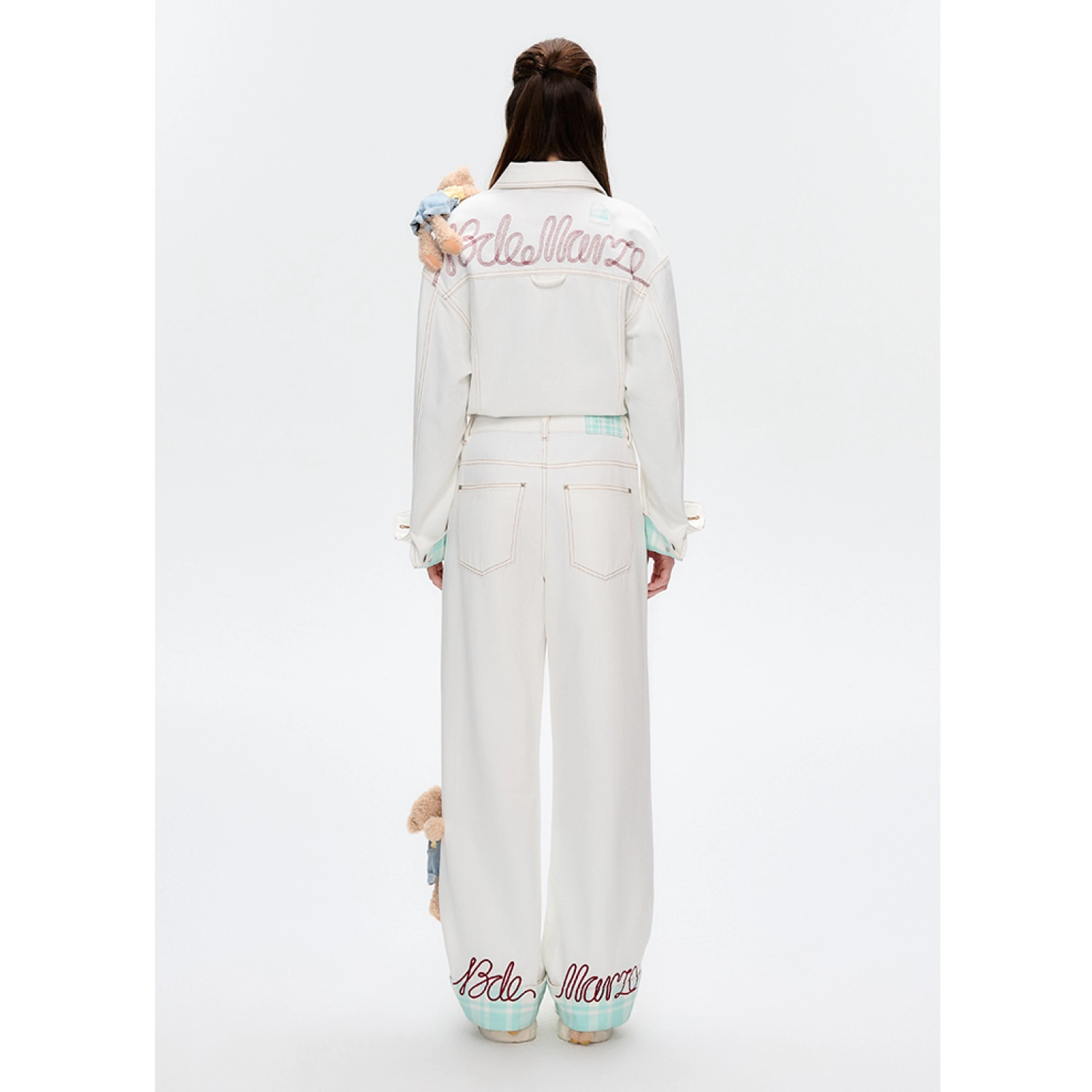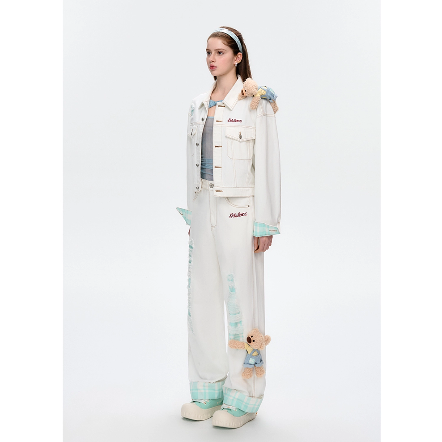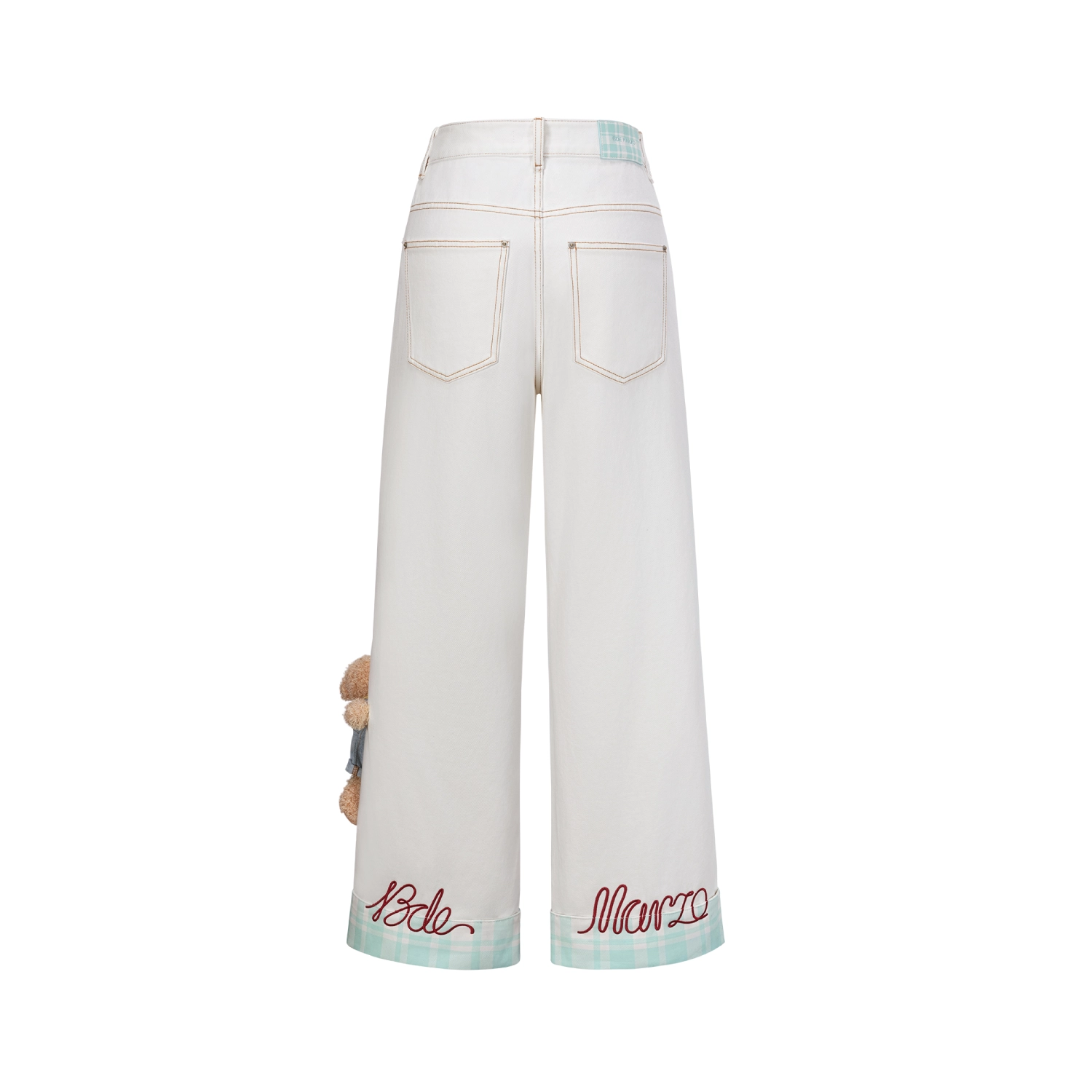 13DE MARZO Plaid Cuffed Sleeve Denim Pants White