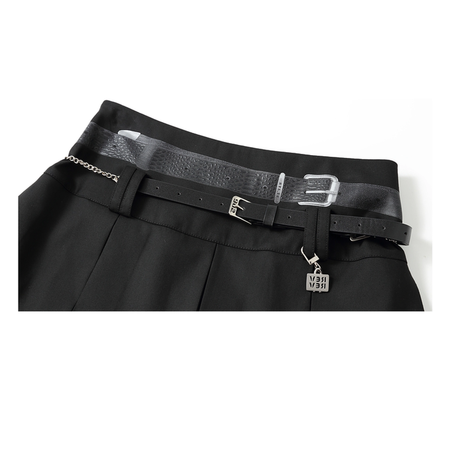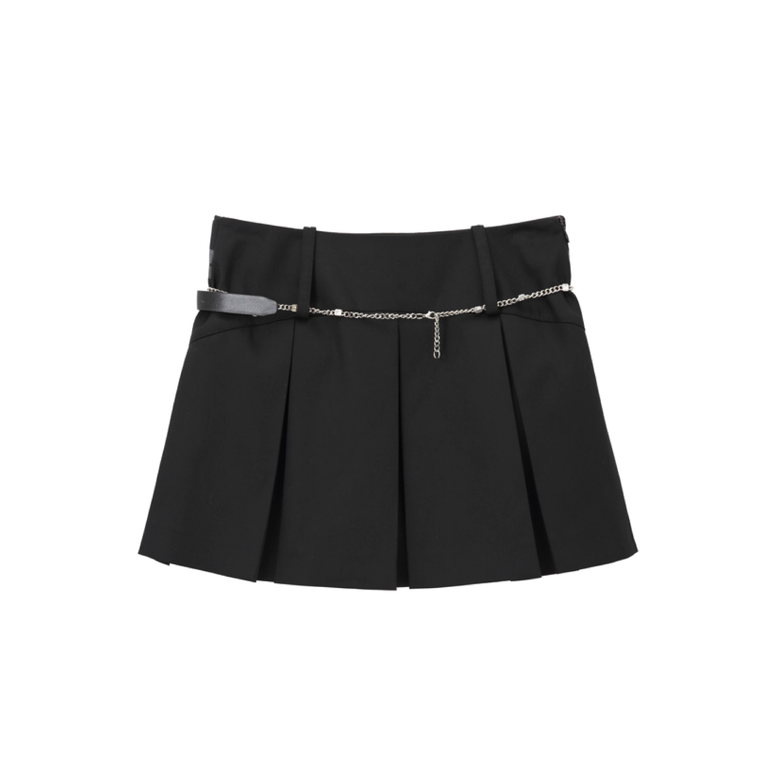 REVAN Ebony Leather-Denim Pleated Mini Skirt Dark Grey