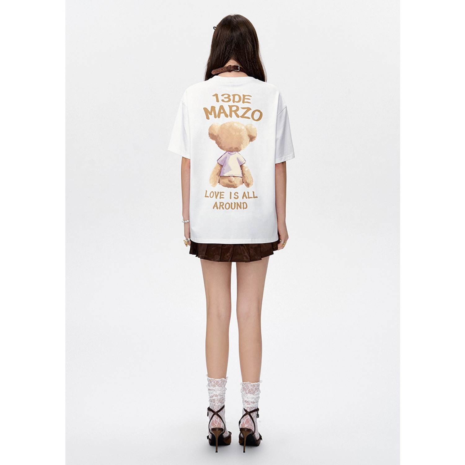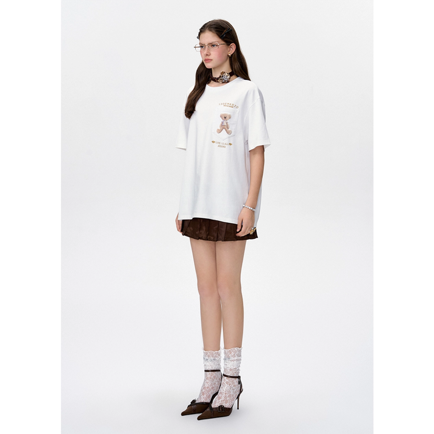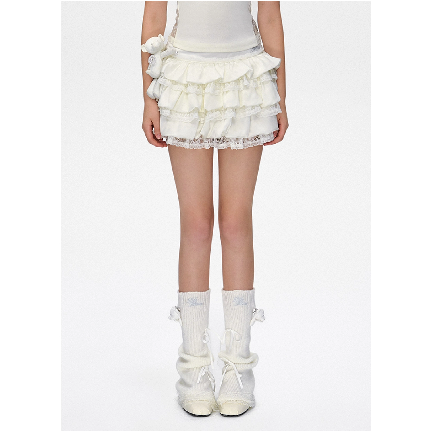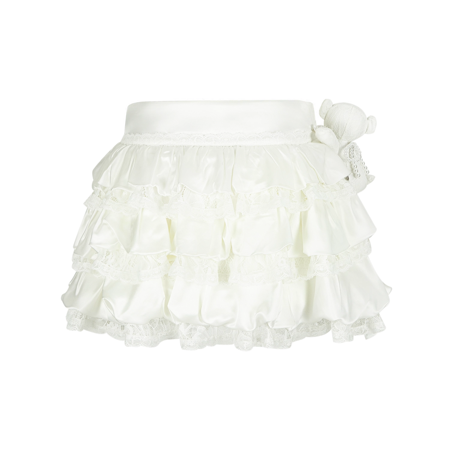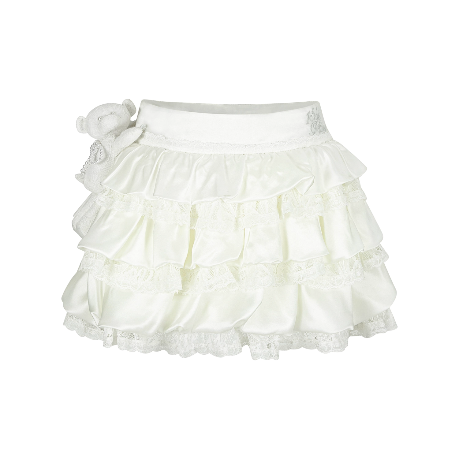 13DE MARZO Bear Lacy Bud Skirt White