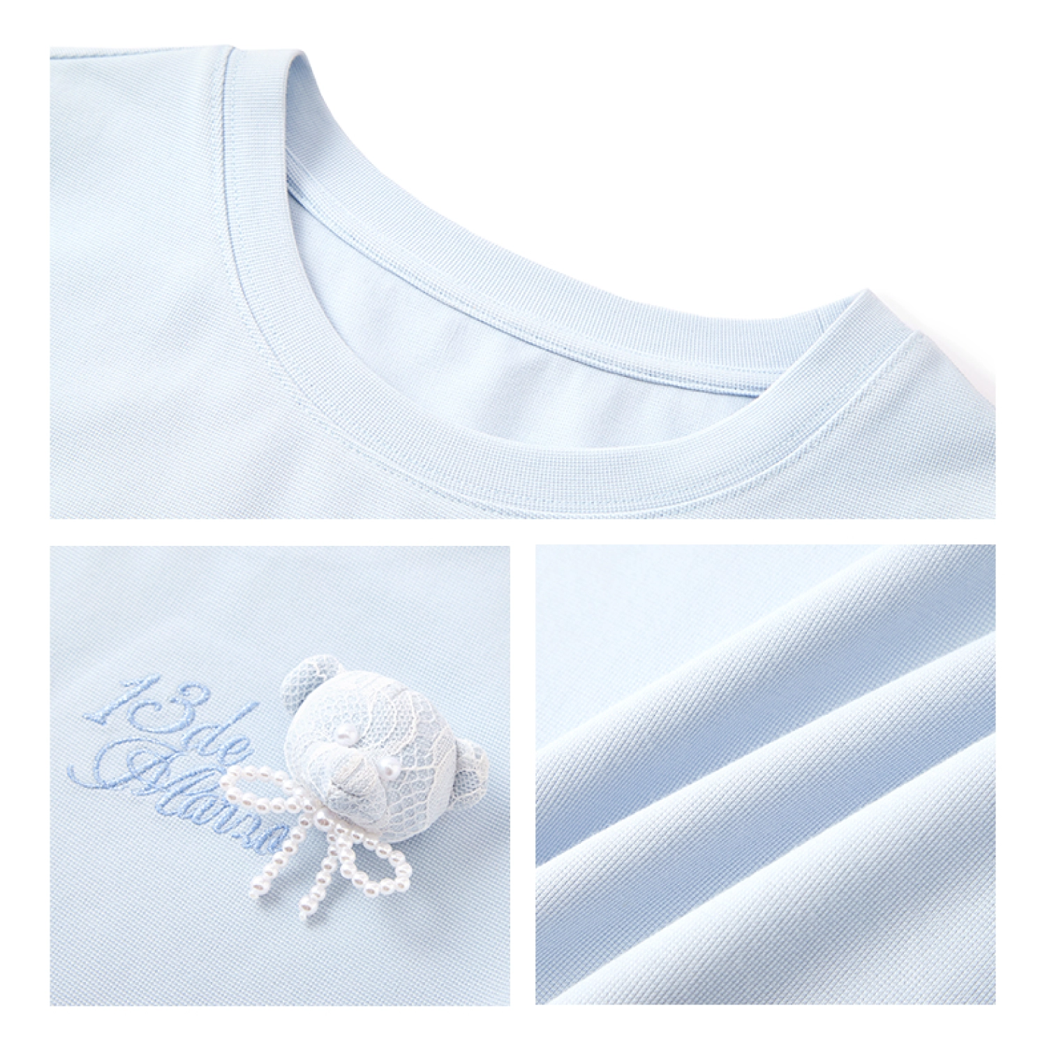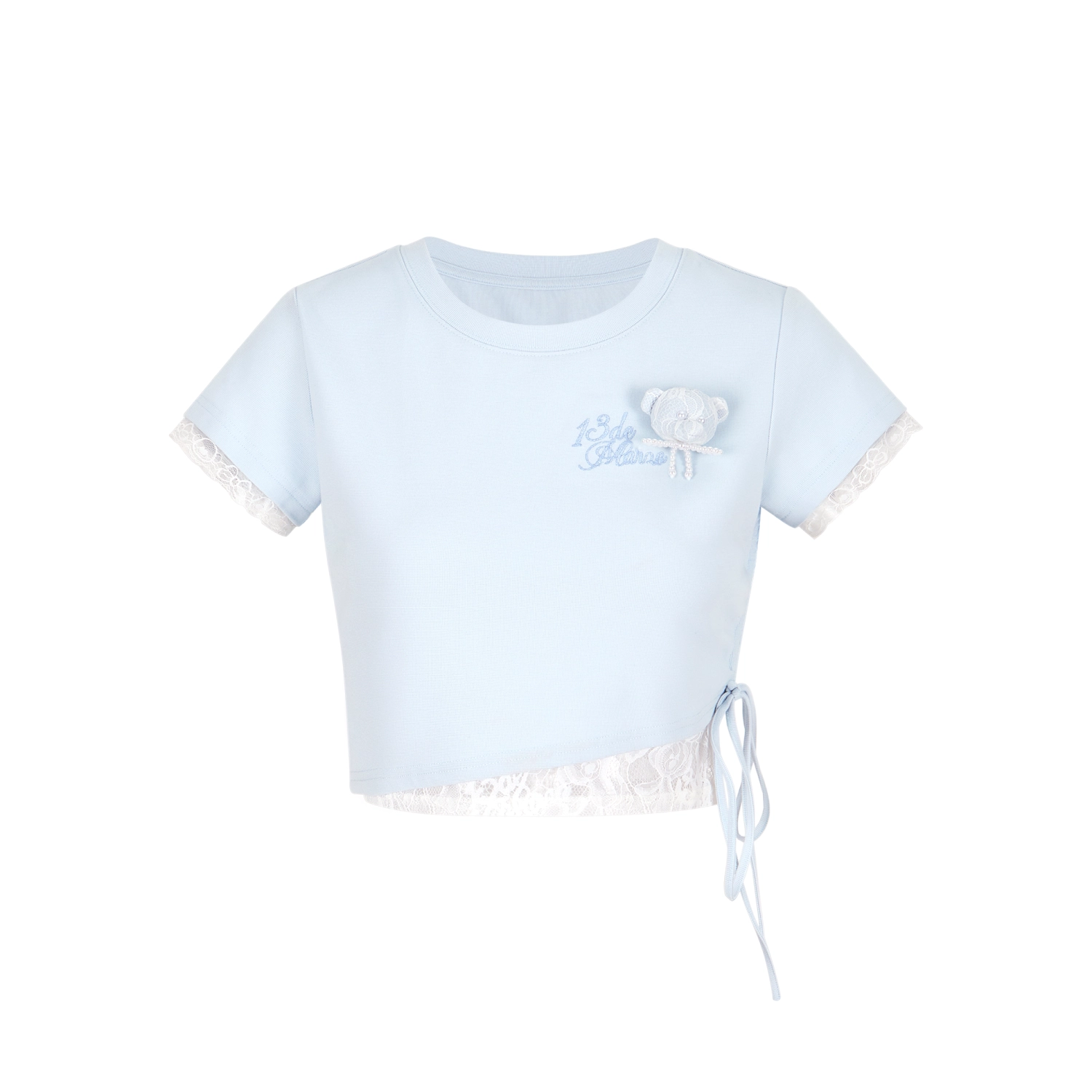 13DE MARZO Bear Lacy Tight Short Top Blue