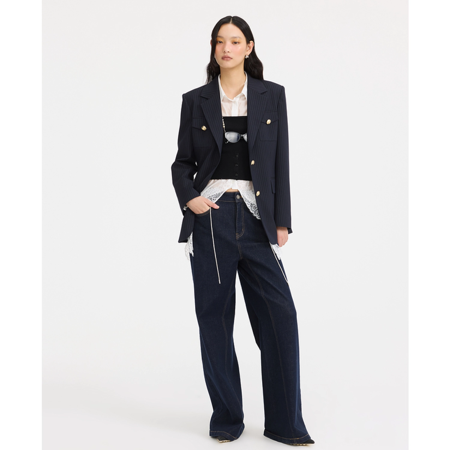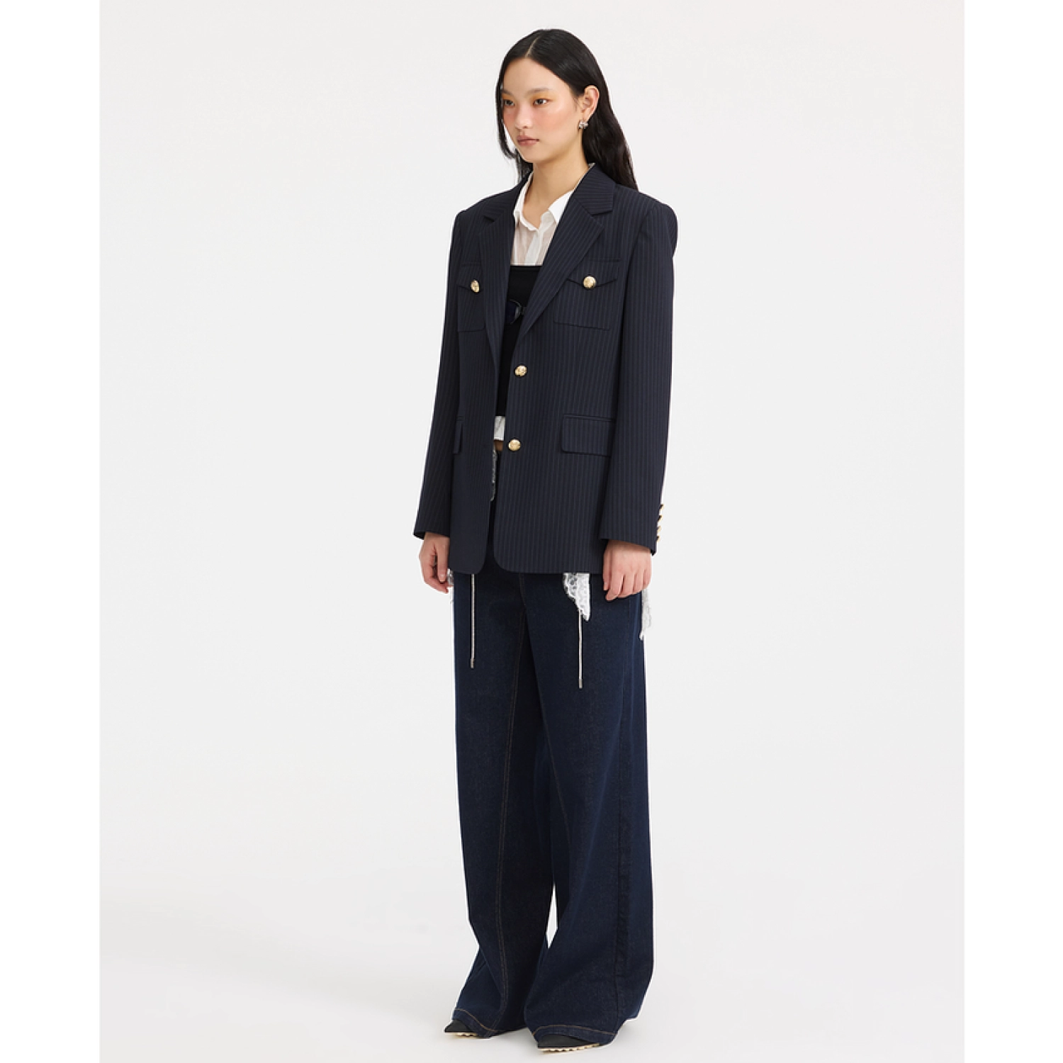 REVAN Crisp Jacquard Tailored Blazer Navy Blue