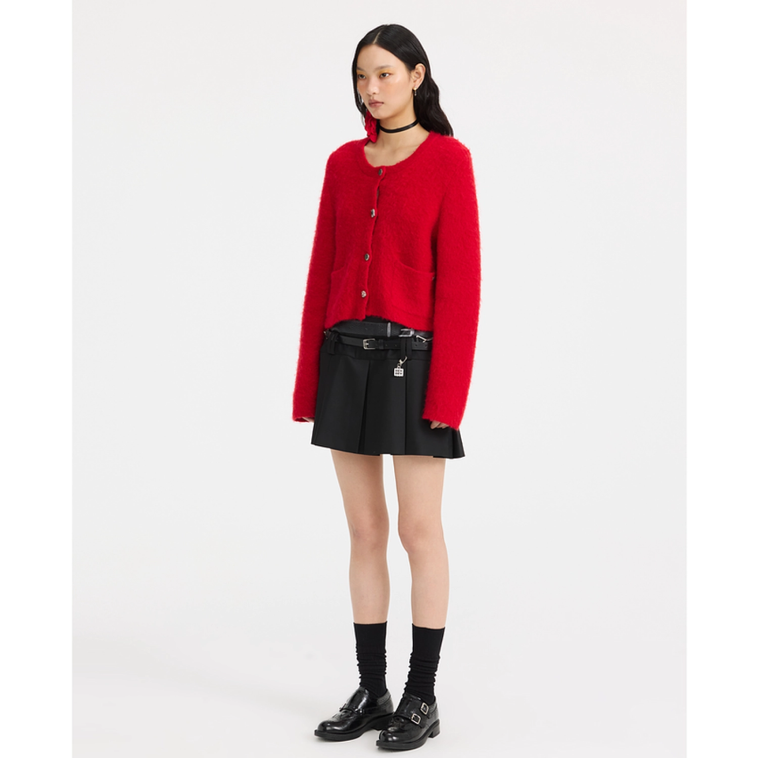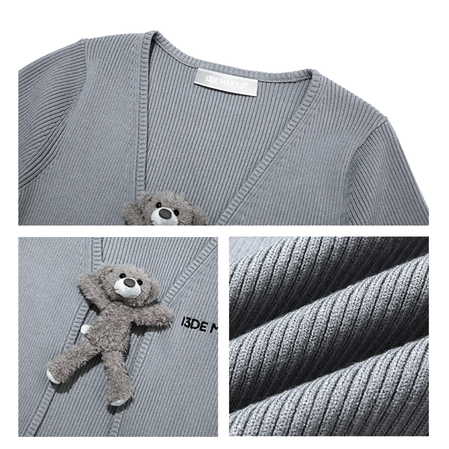 13DE MARZO Bear Buckle Thin Cardigan Grey