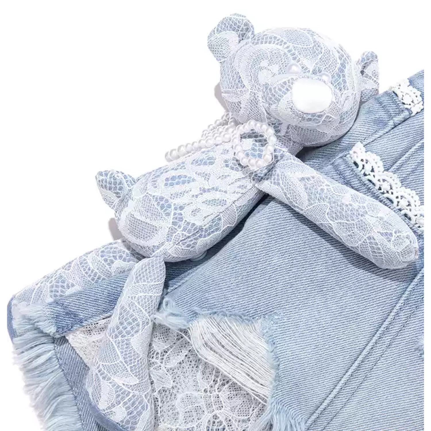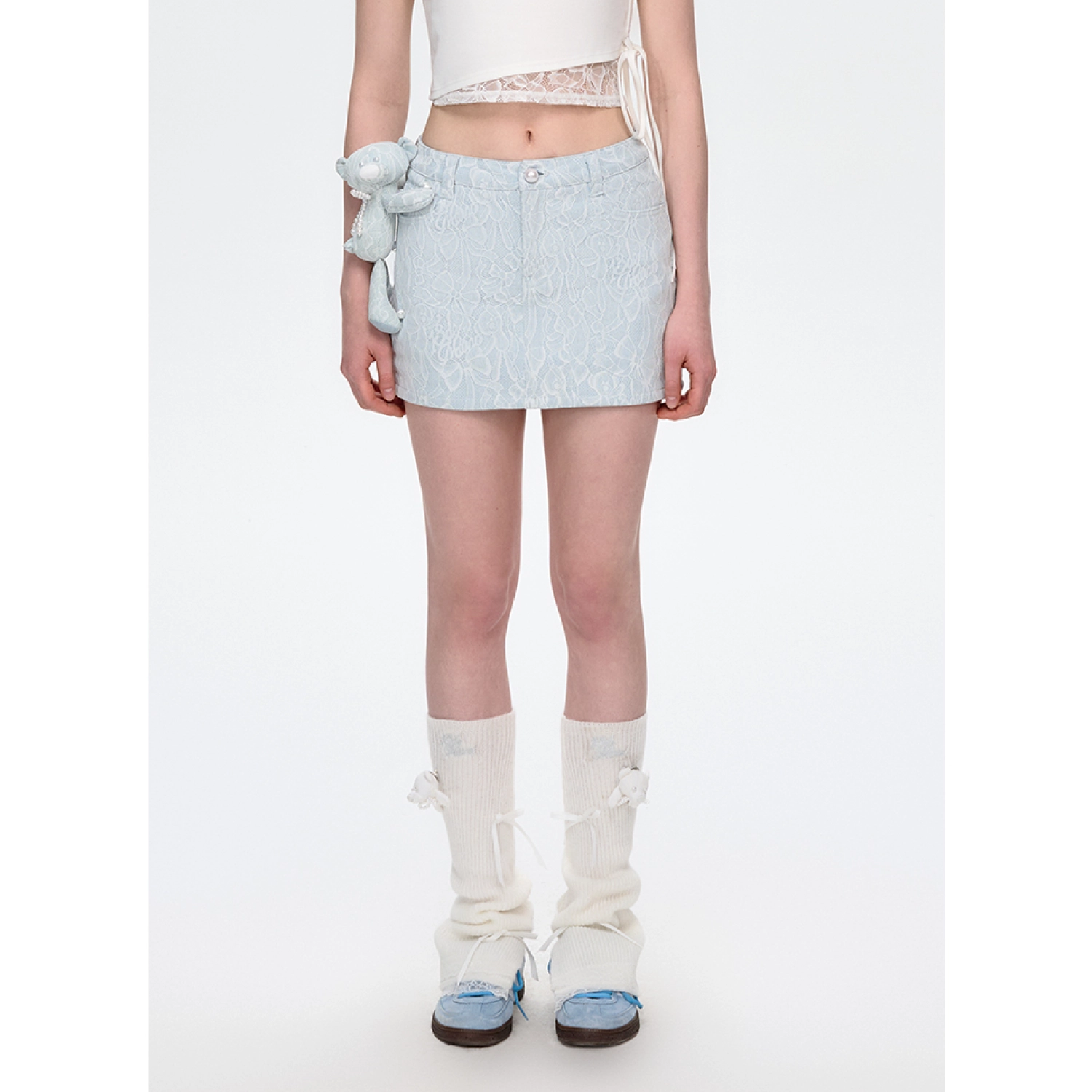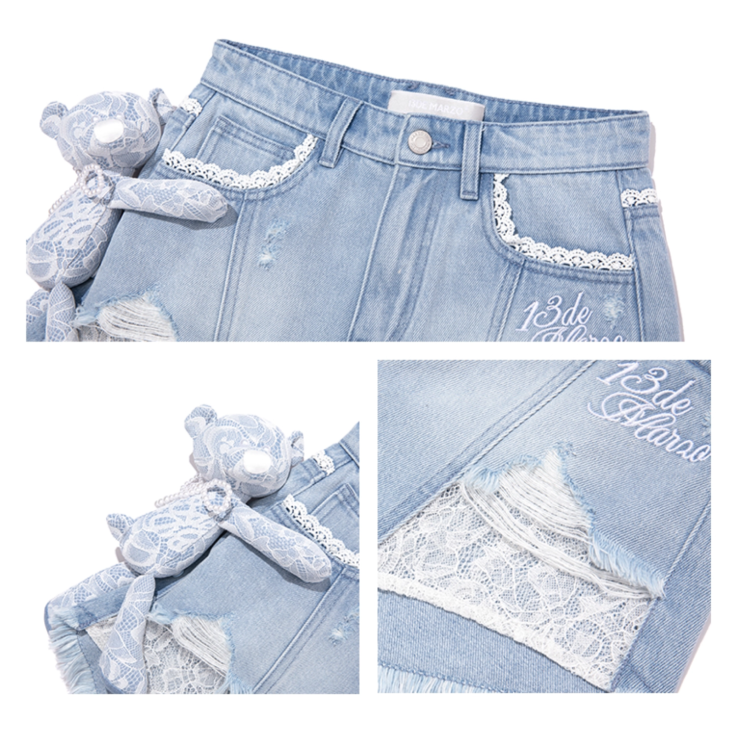 13DE MARZO Bear Lacy Denim Skirt Blue