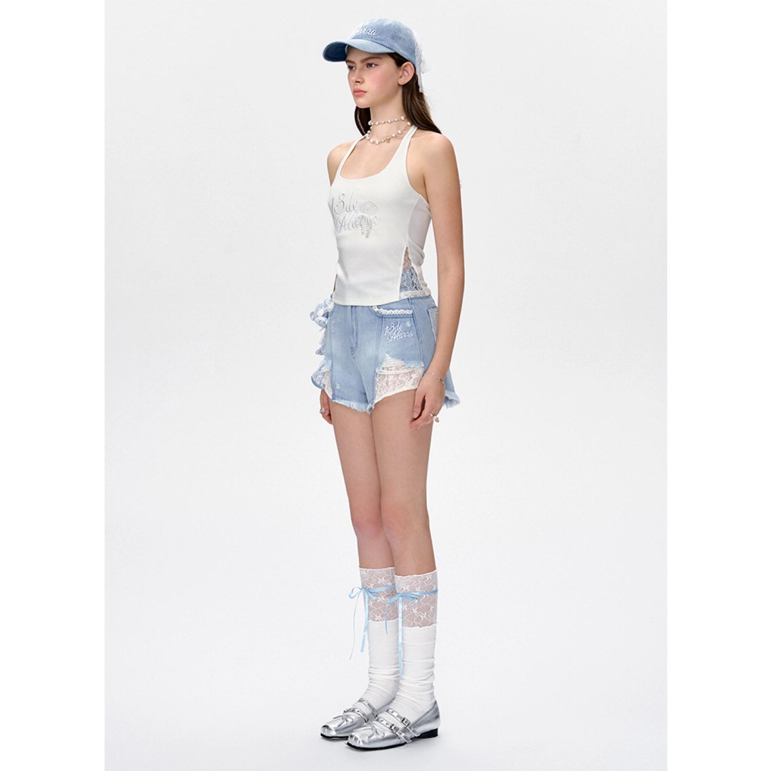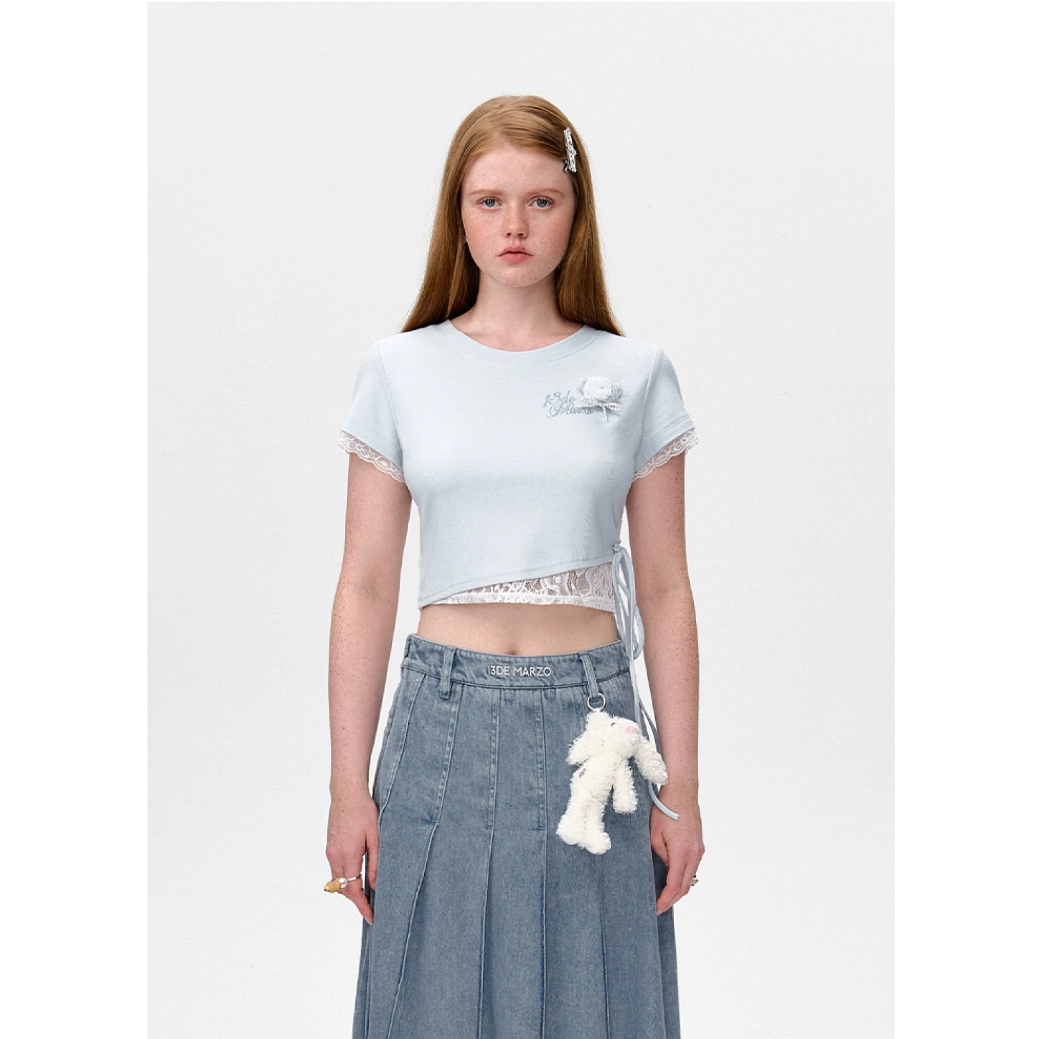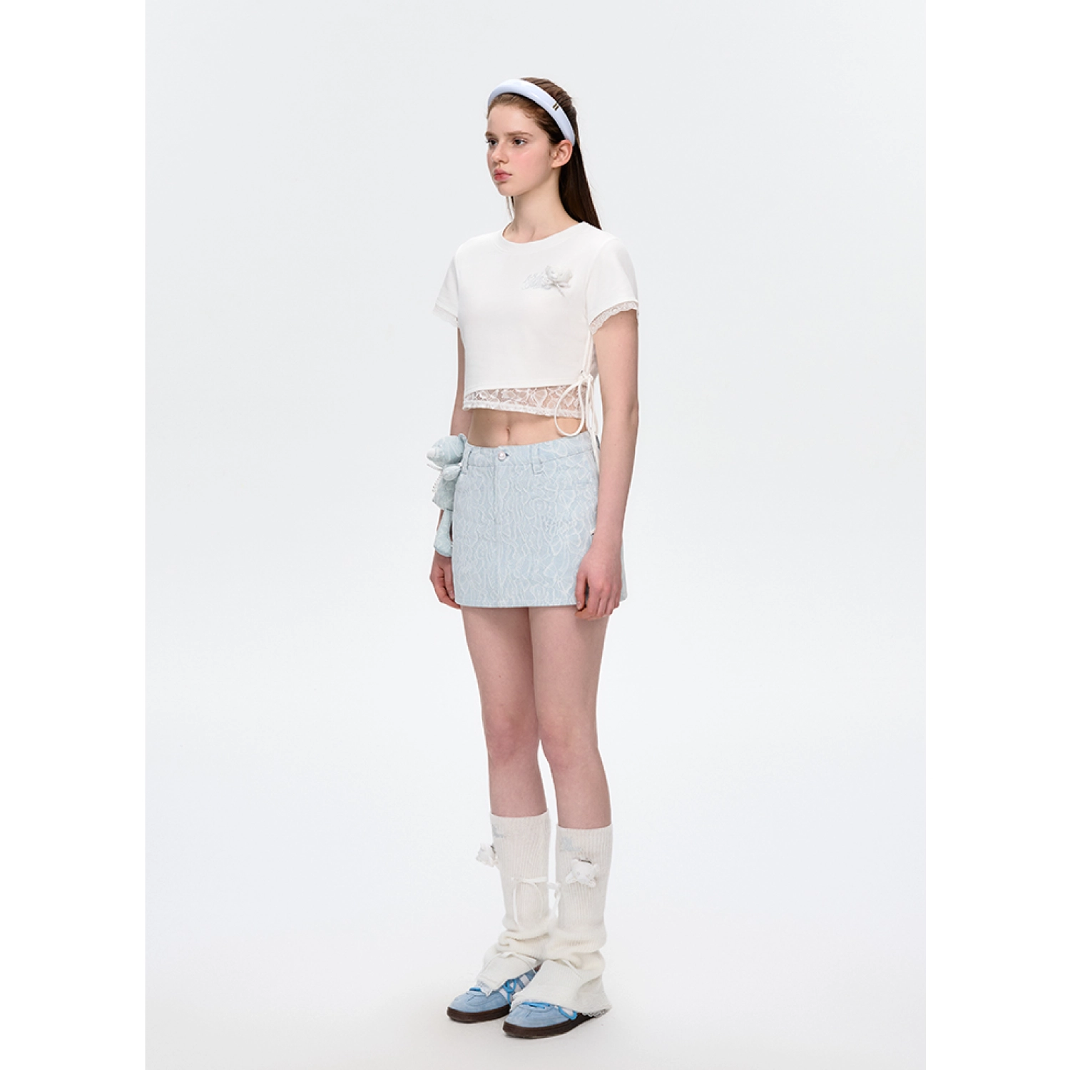 13DE MARZO Bear Lacy Denim Skirt Blue