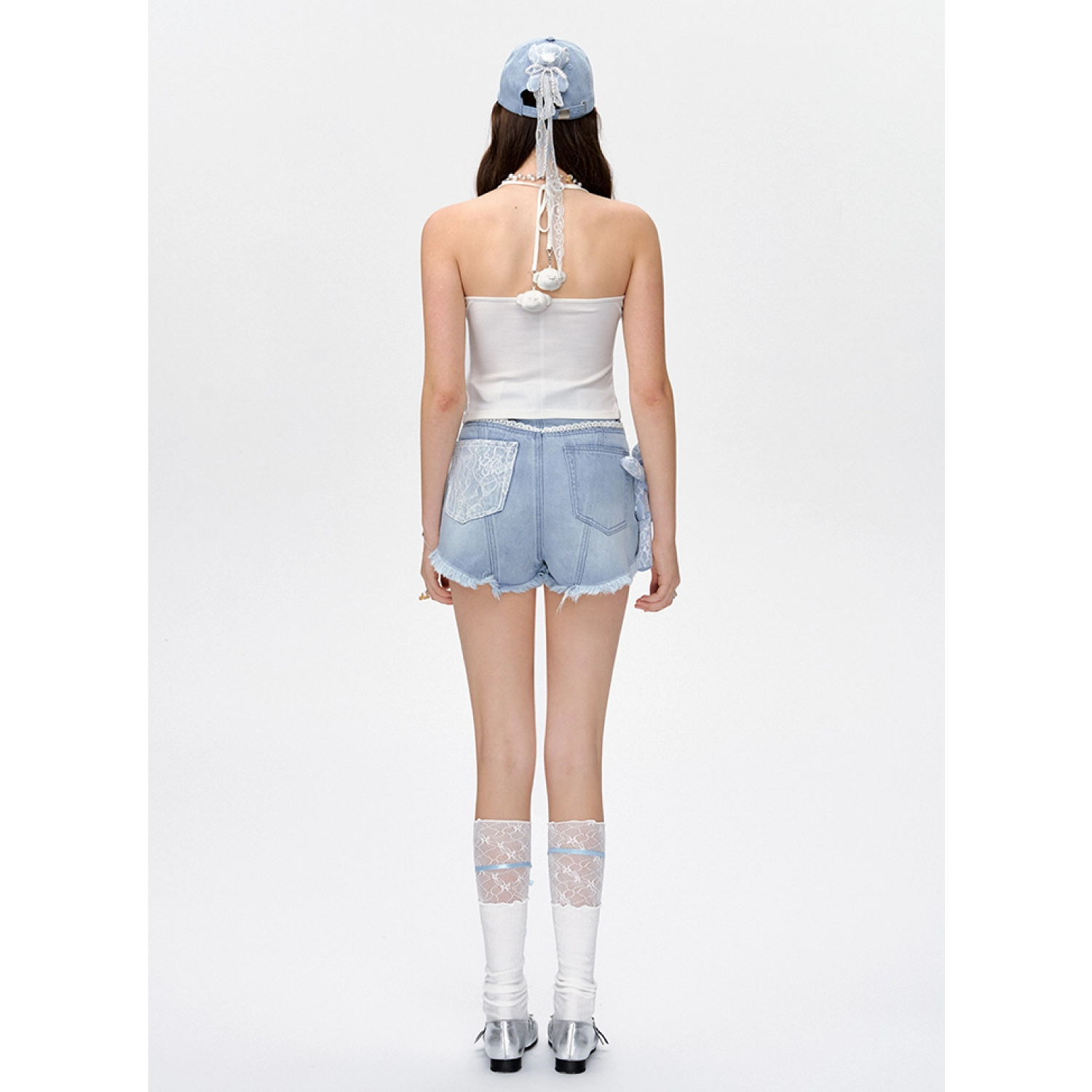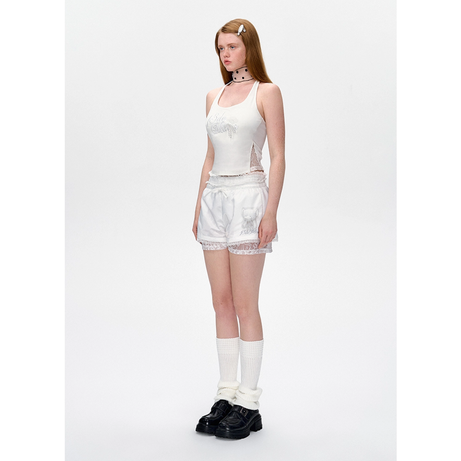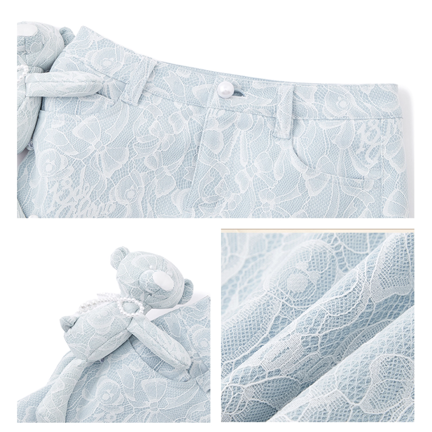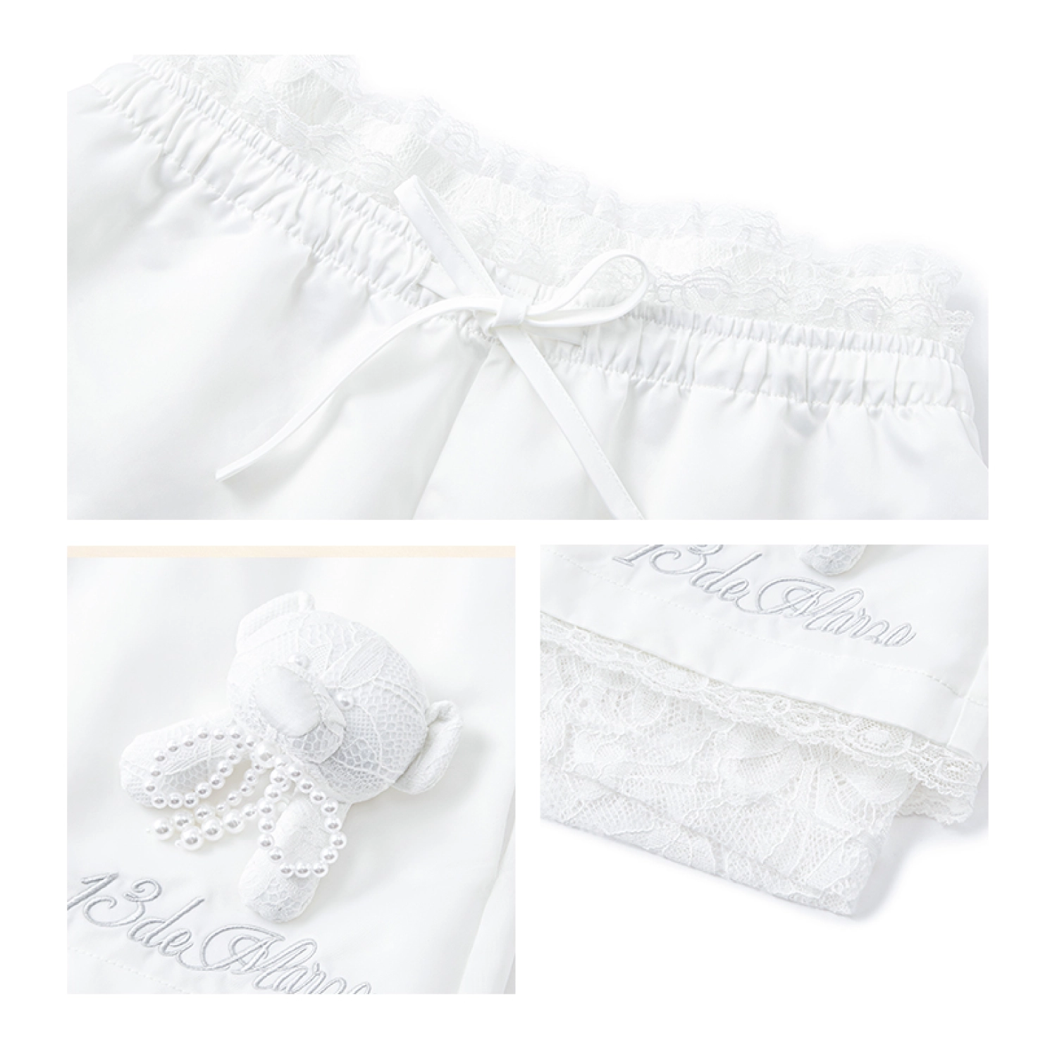 13DE MARZO Bear Lacy Bowknot Shorts White