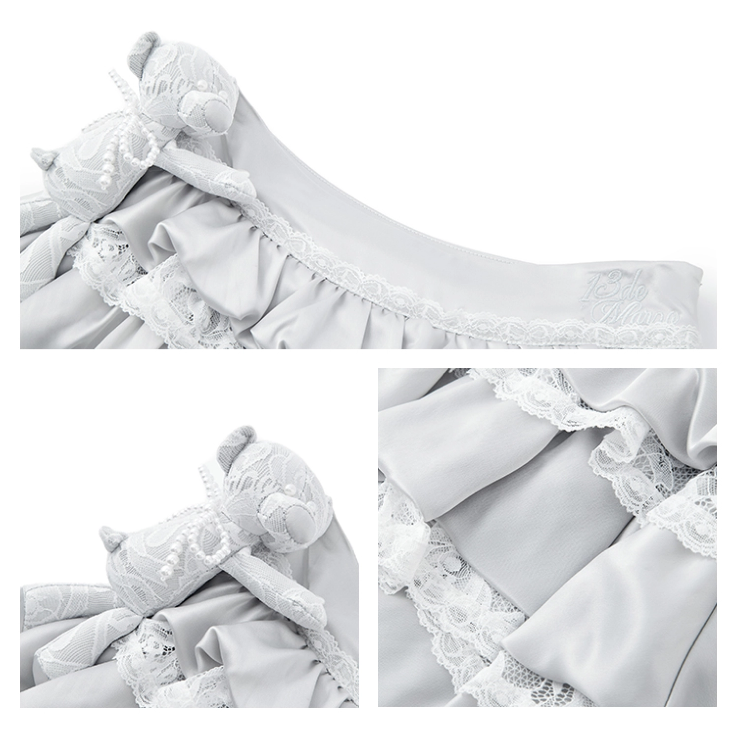 13DE MARZO Bear Lacy Bud Skirt Grey