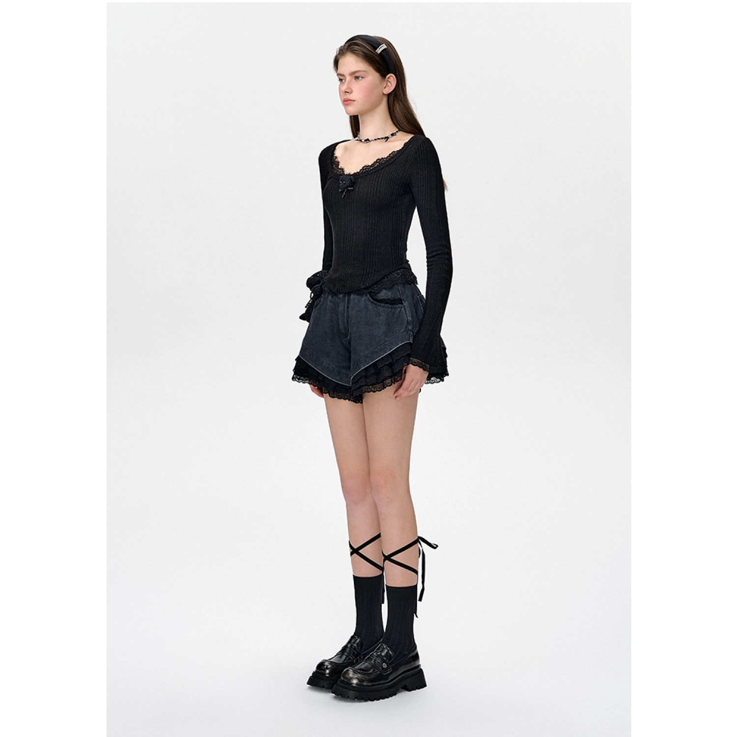 13DE MARZO Bear Lacy Bowknot Top Black