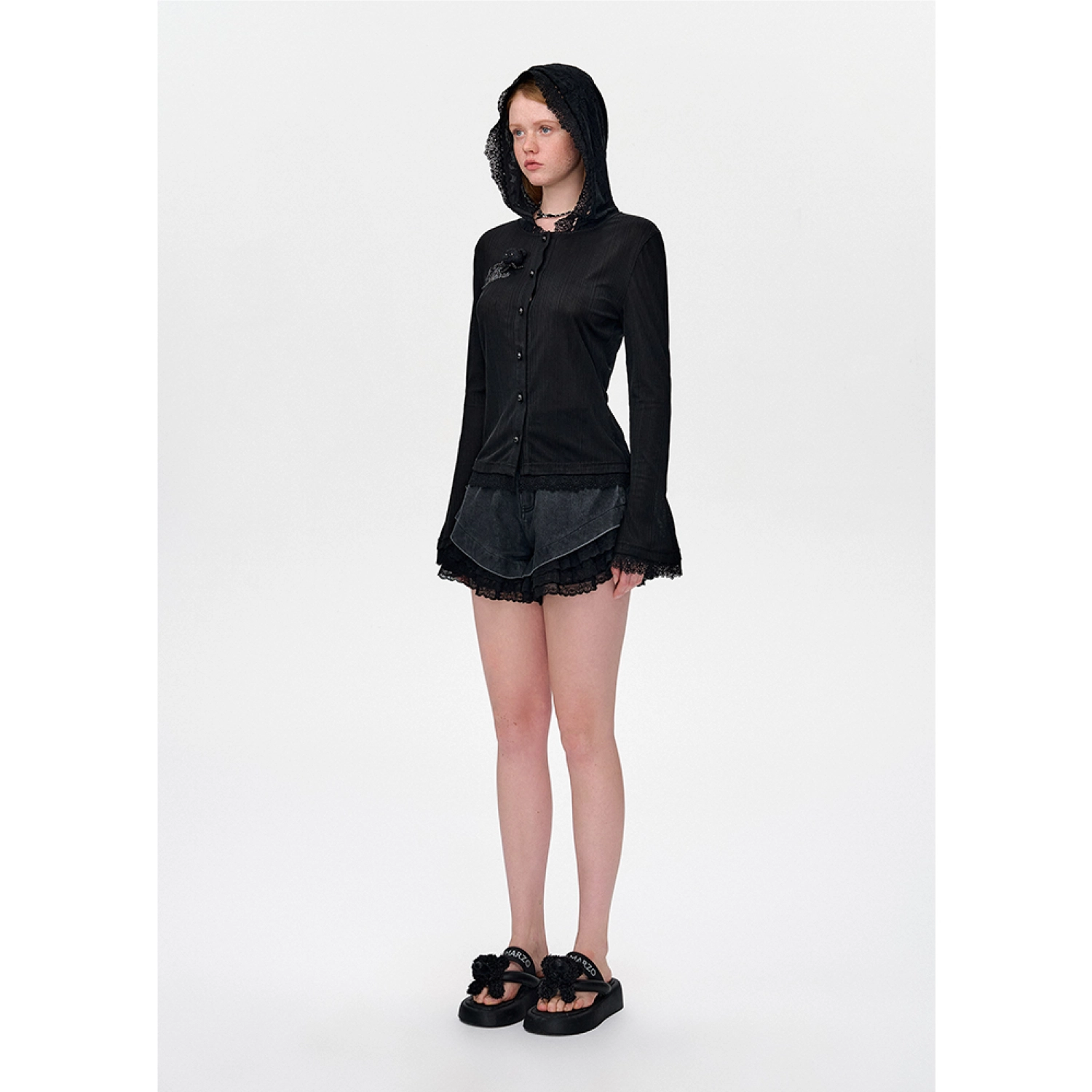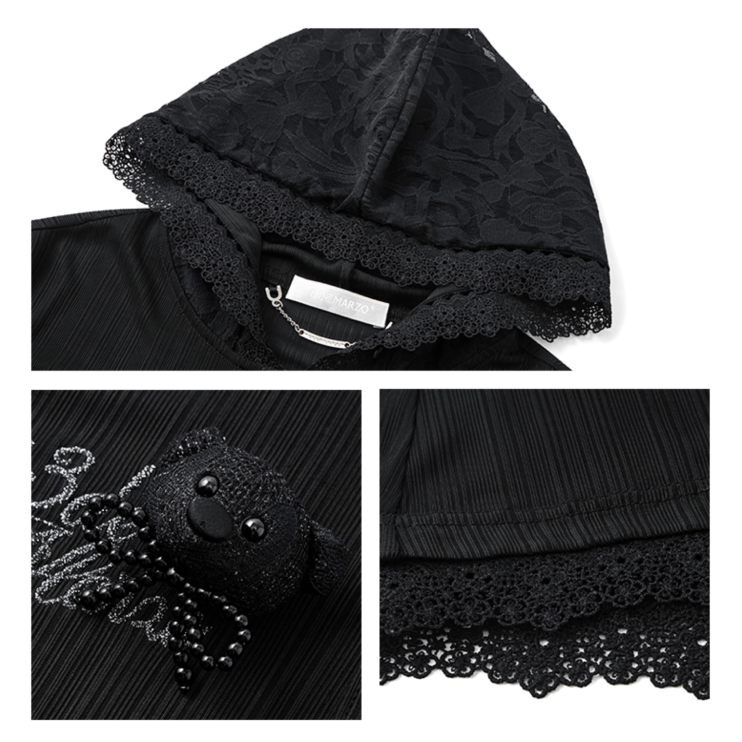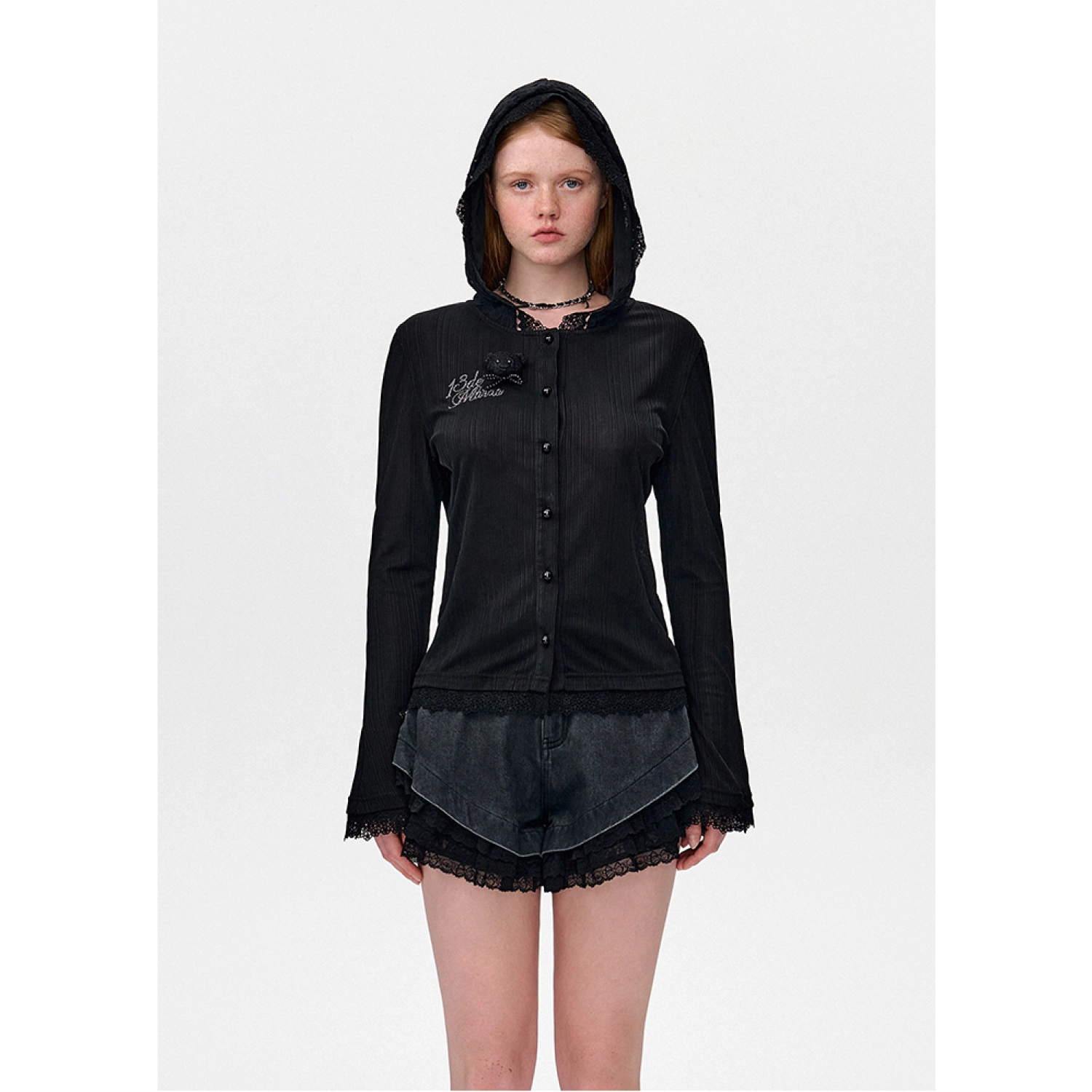 13DE MARZO Bear Lacy Pearl Cardigan Black