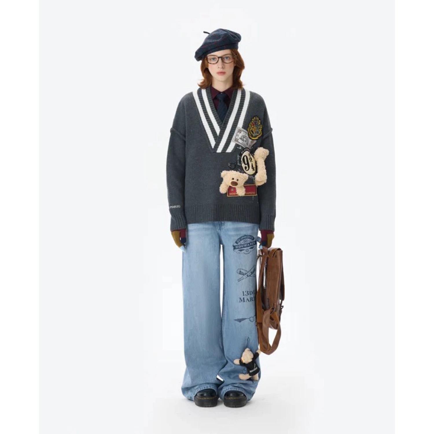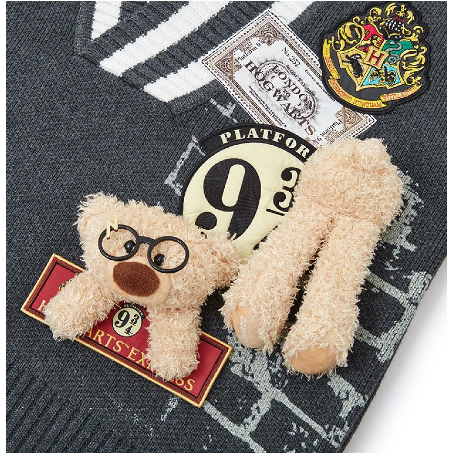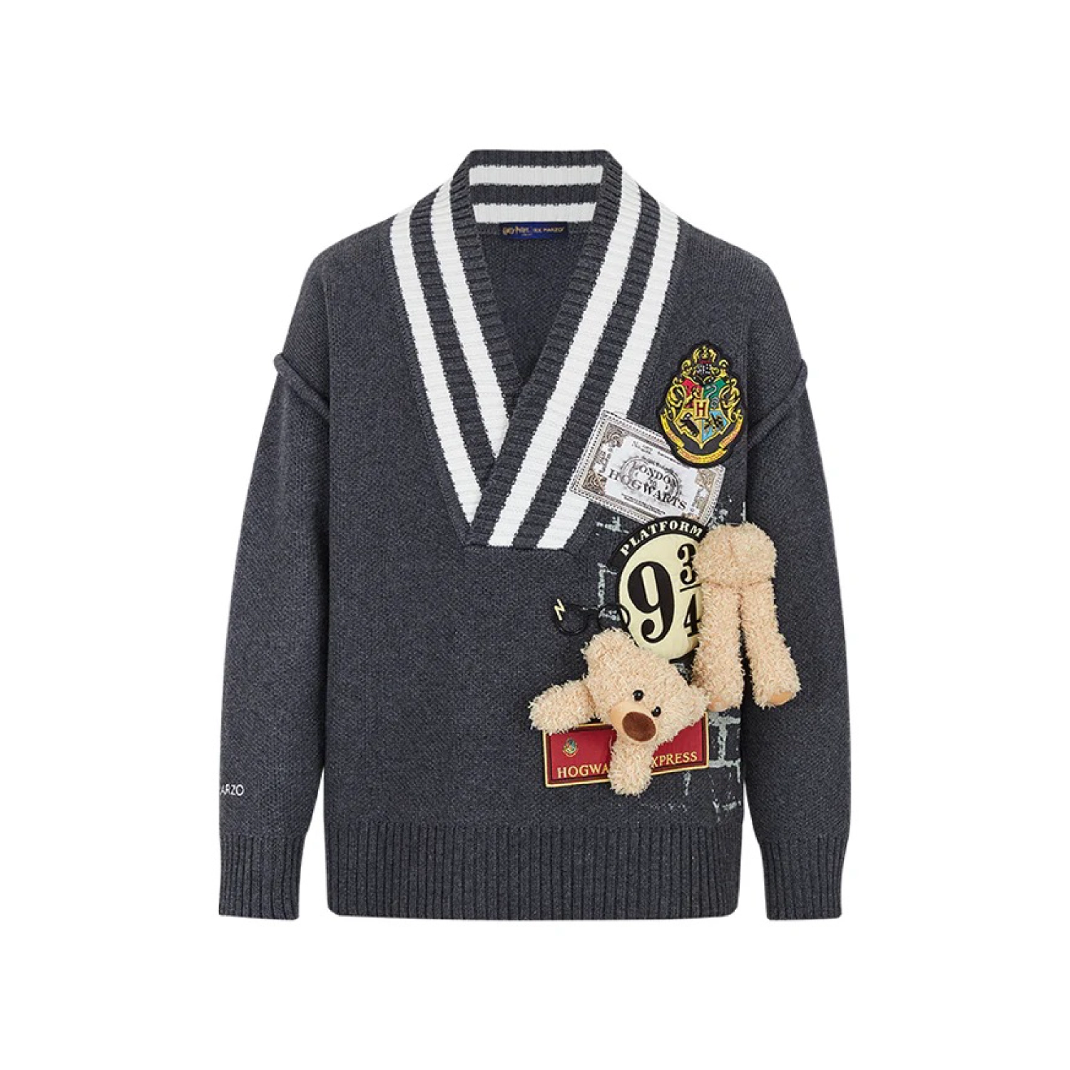 Harry Potter × 13DE MARZO Platform 9¾ Bear V-neck Sweater Dark Grey