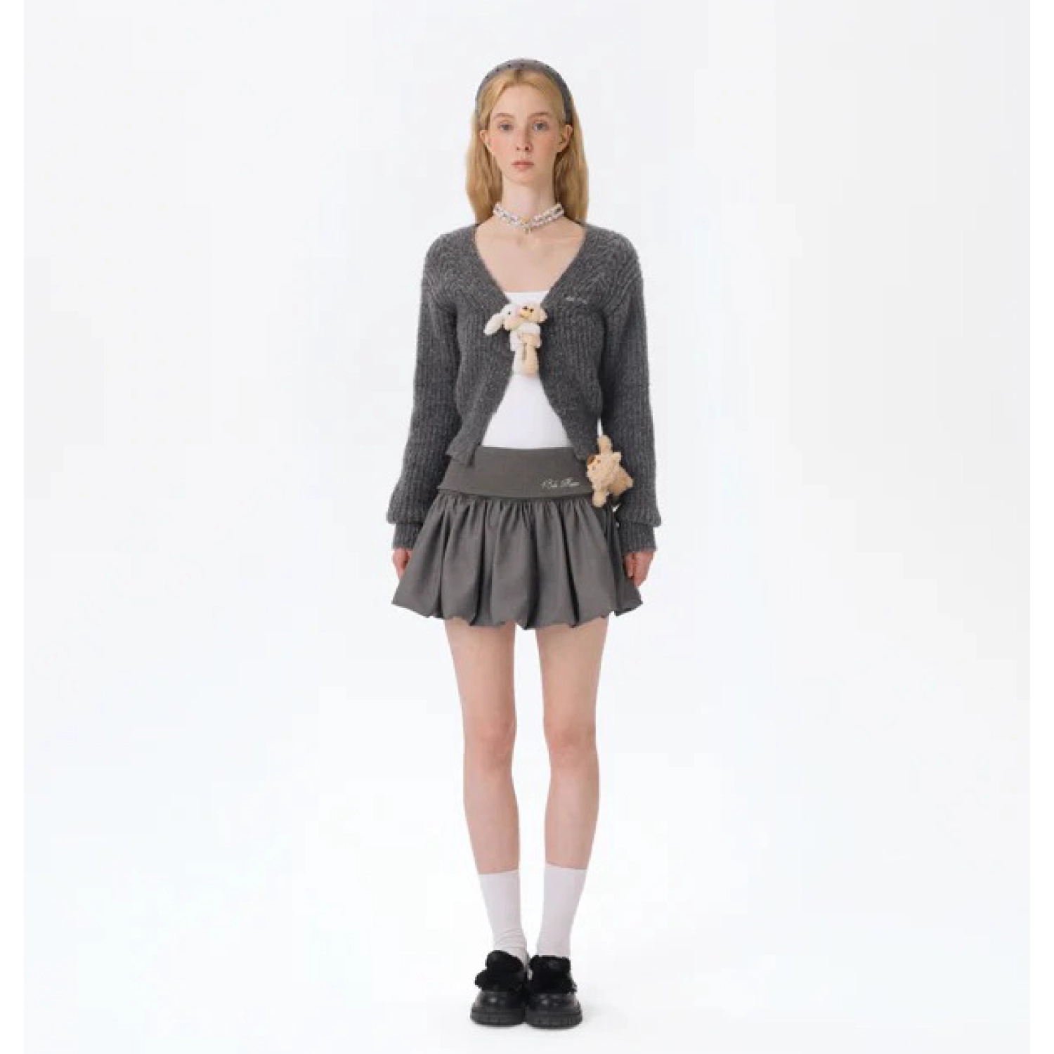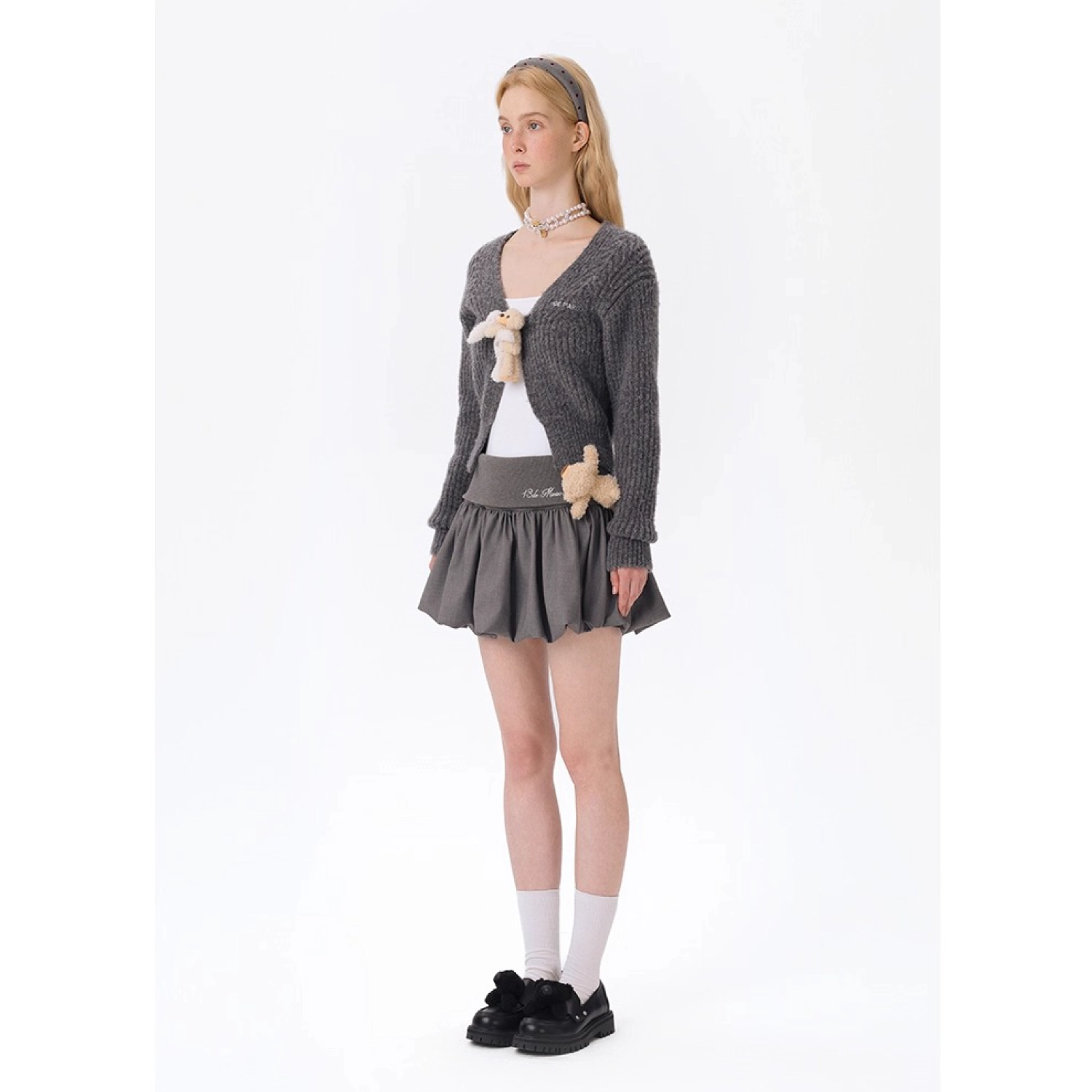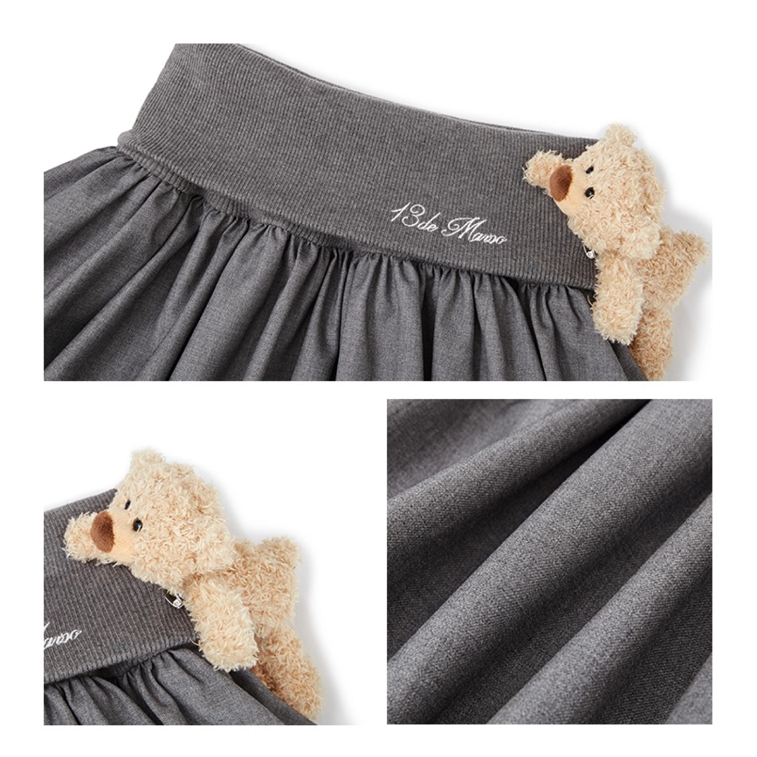 13DE MARZO Bear Upper Bud Skirt Grey
