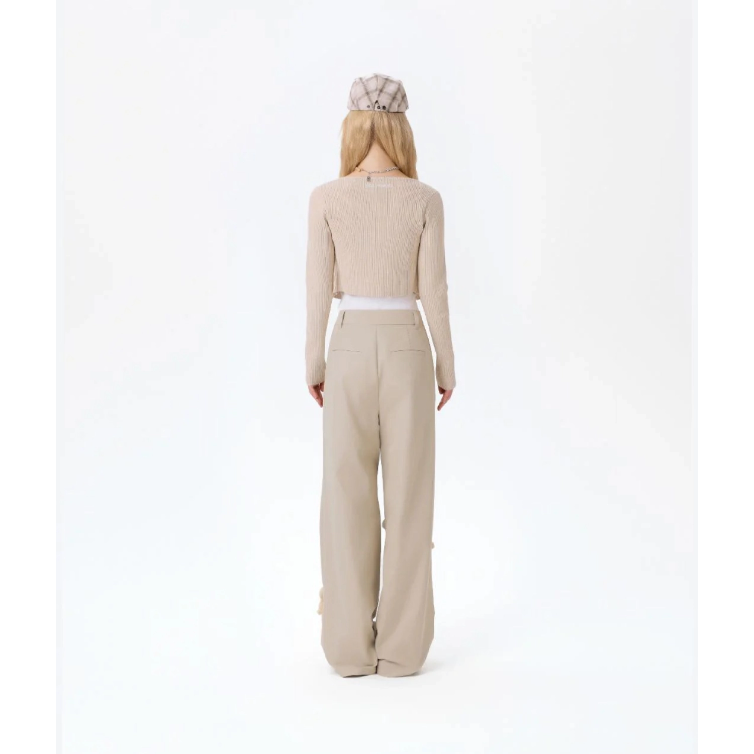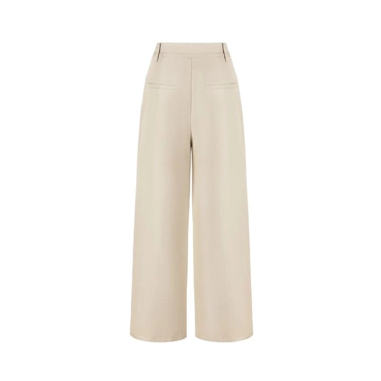REVAN Asymmetrical Waist Wide-Leg Trousers Khaki