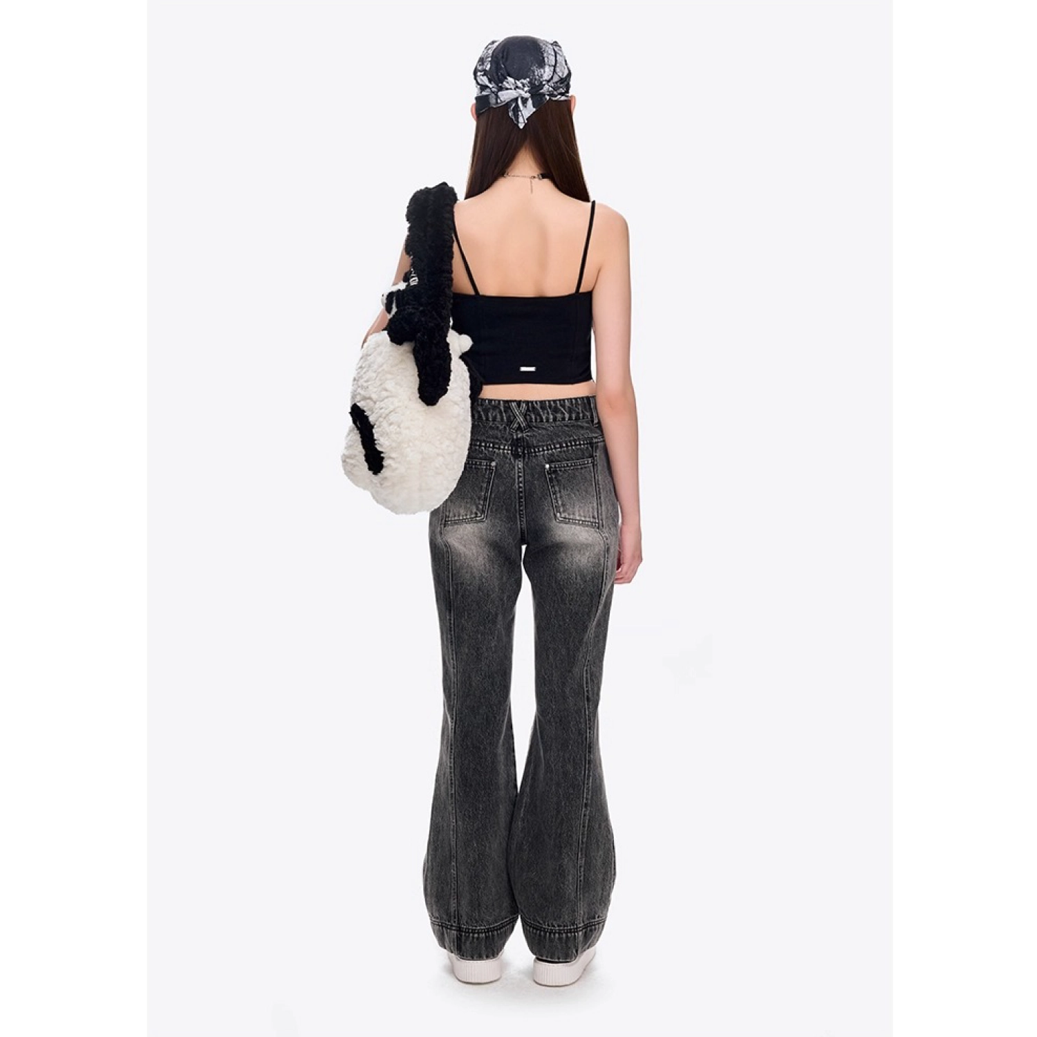 13DE MARZO Doozoo Split Hem Flared Jeans Black