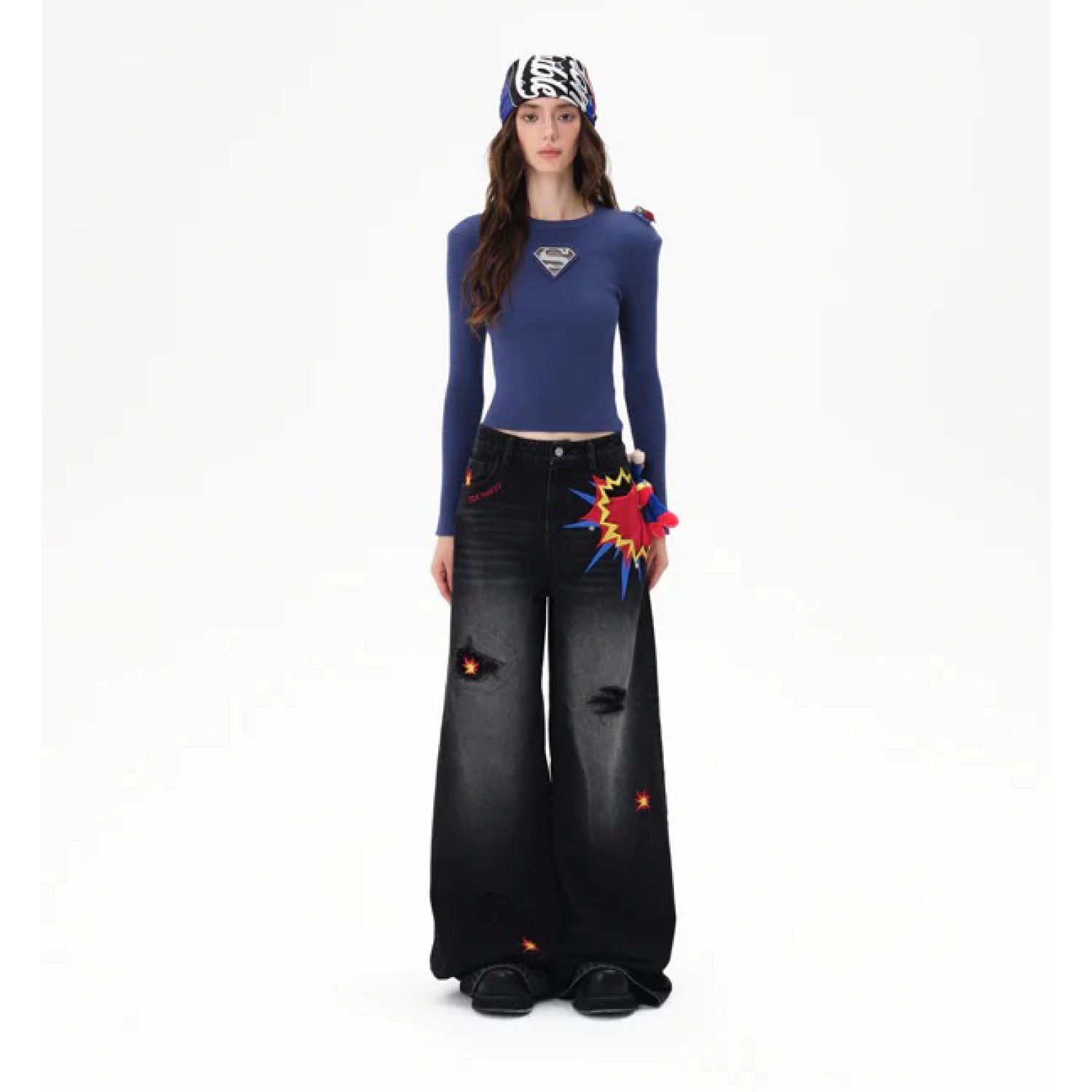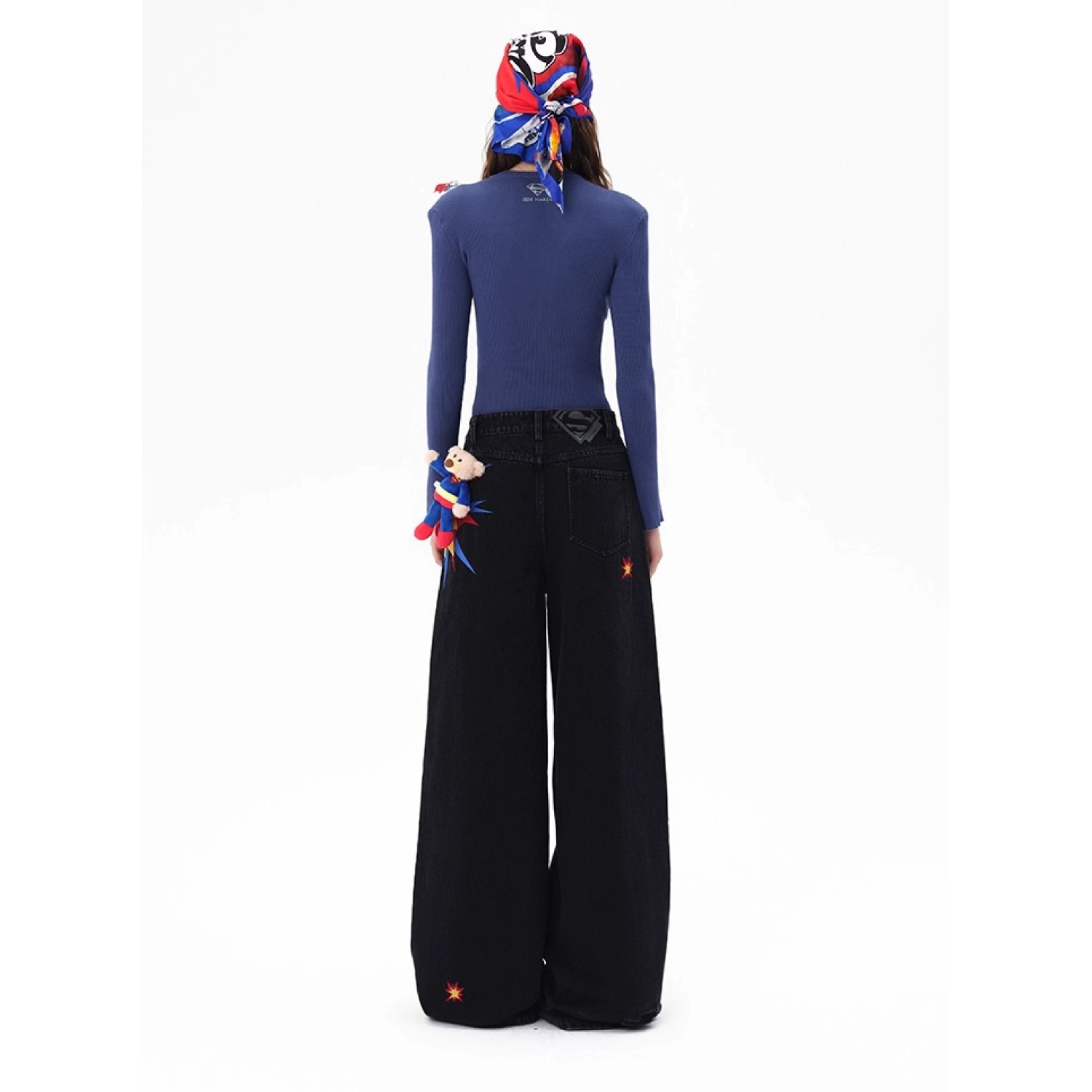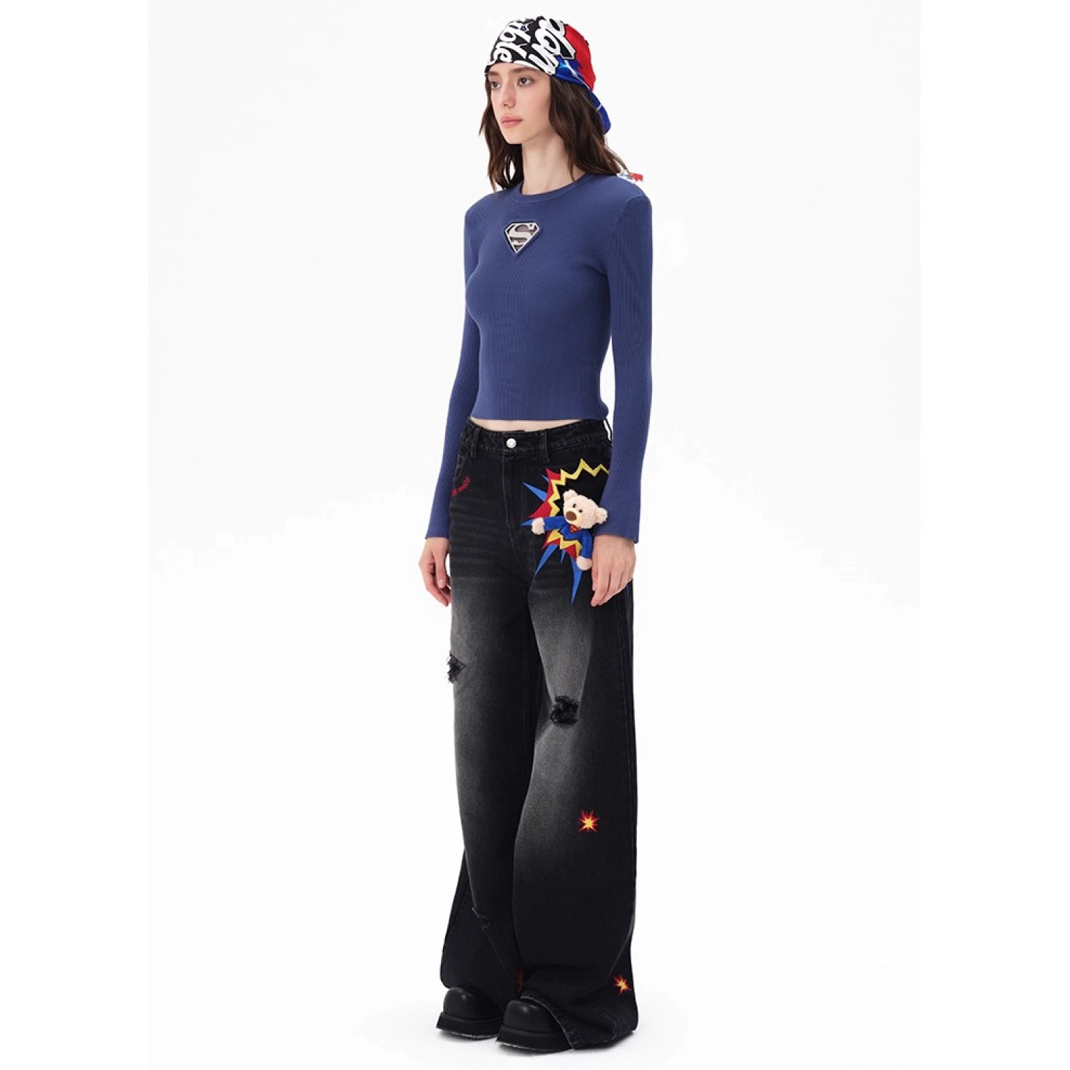 13DE MARZO Superman Bear 3D Pocket Jeans Black