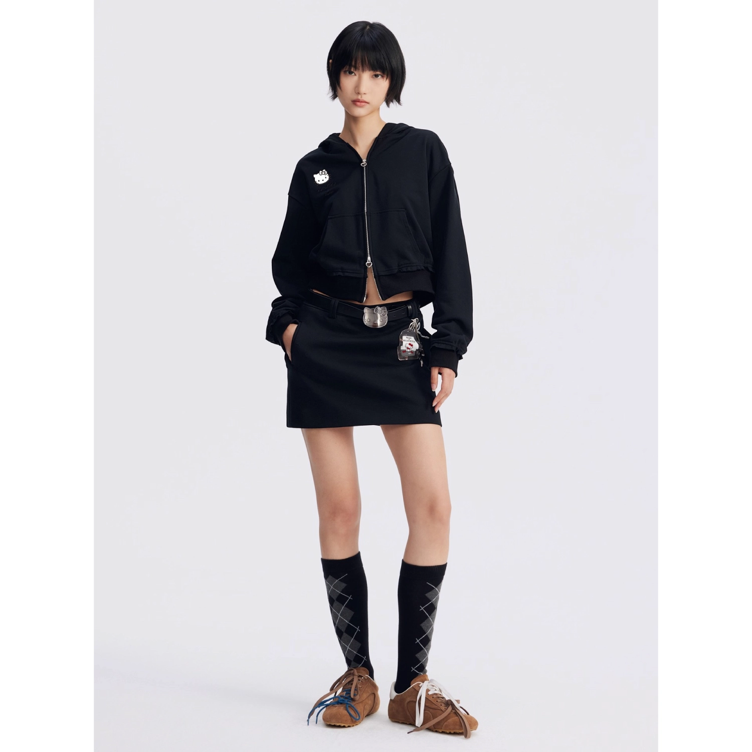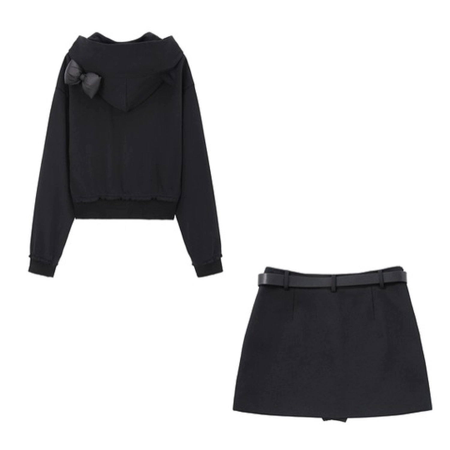 REVAN x Hello Kitty Hoodie & Skirt Set with Detachable Bow Black