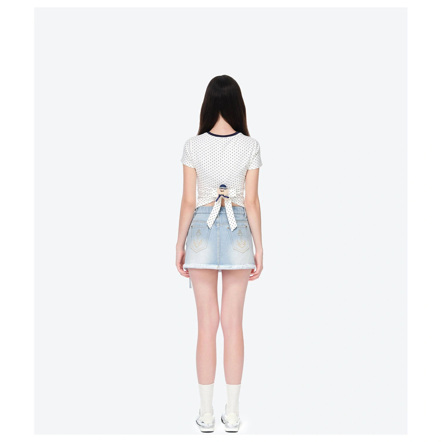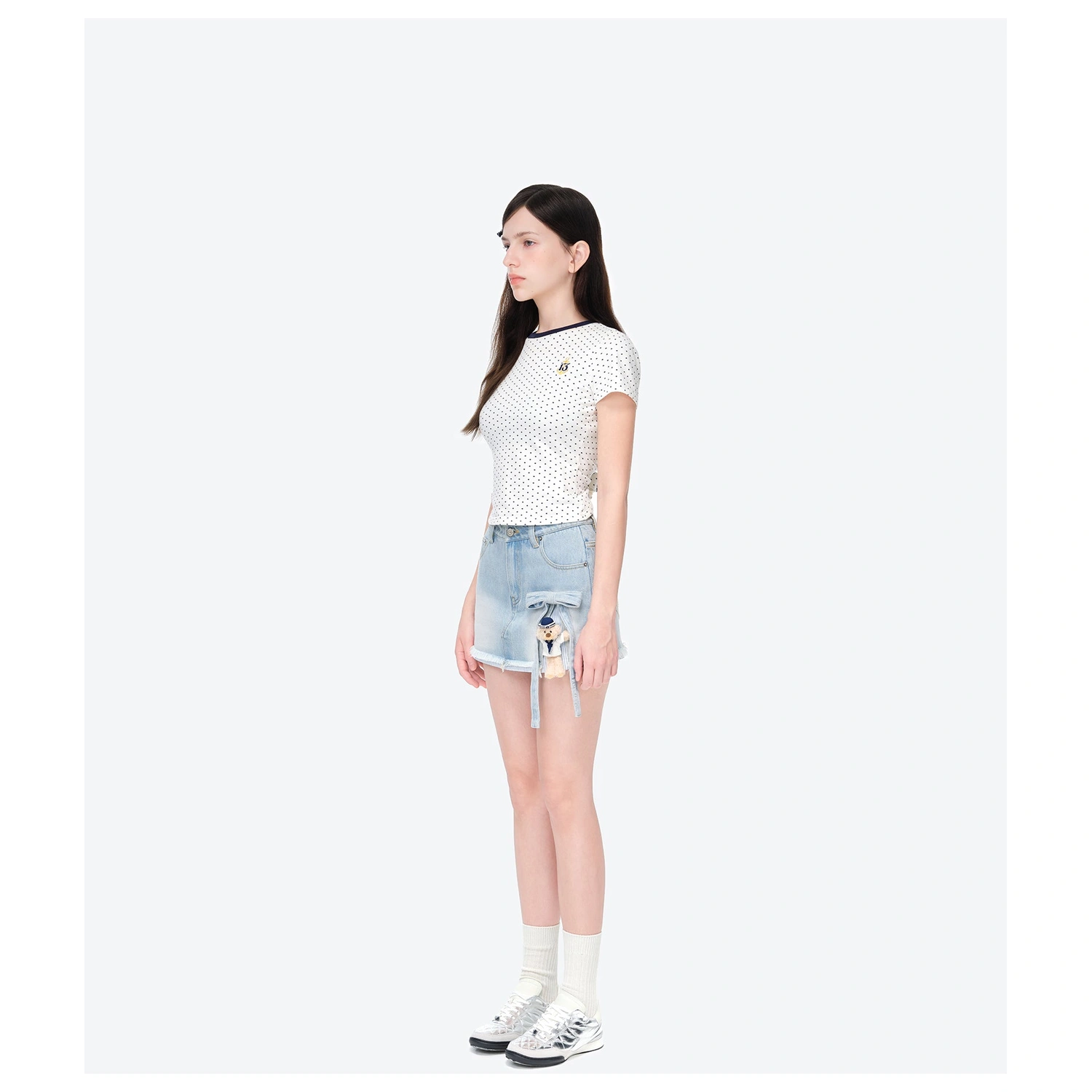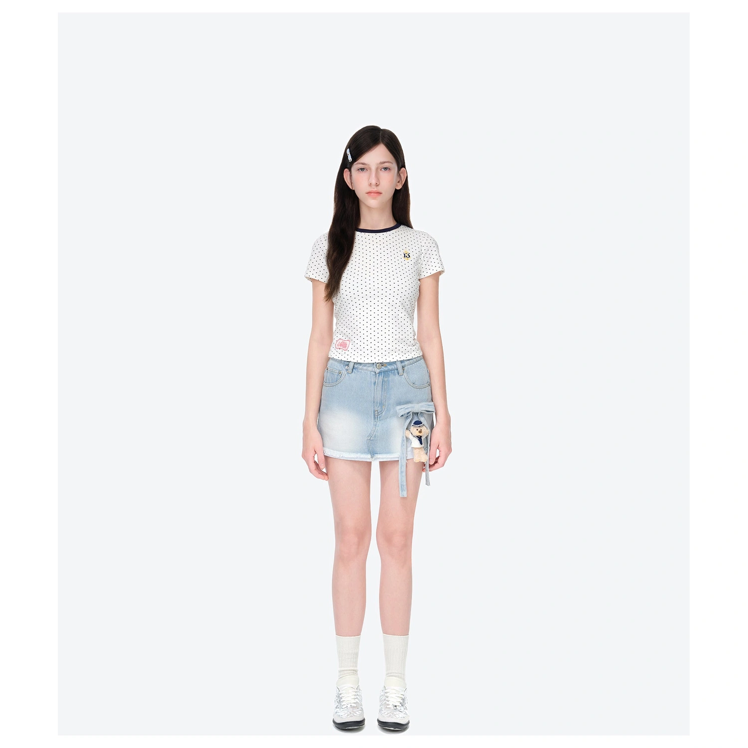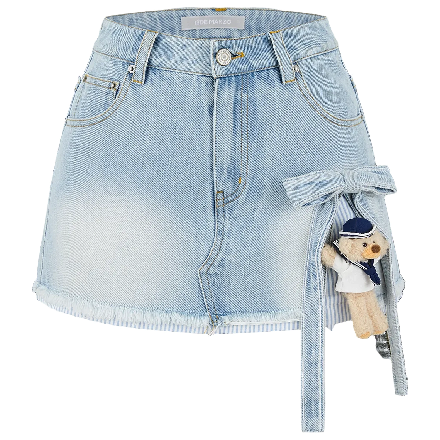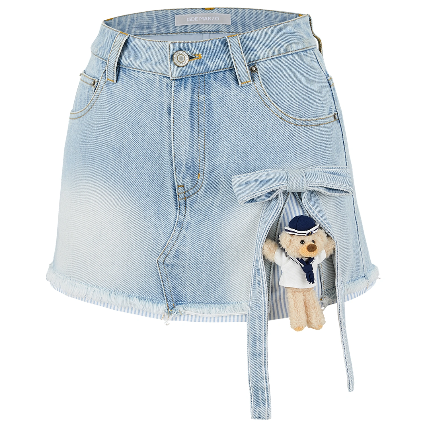13DE MARZO Sailor Bear Denim Skirt White