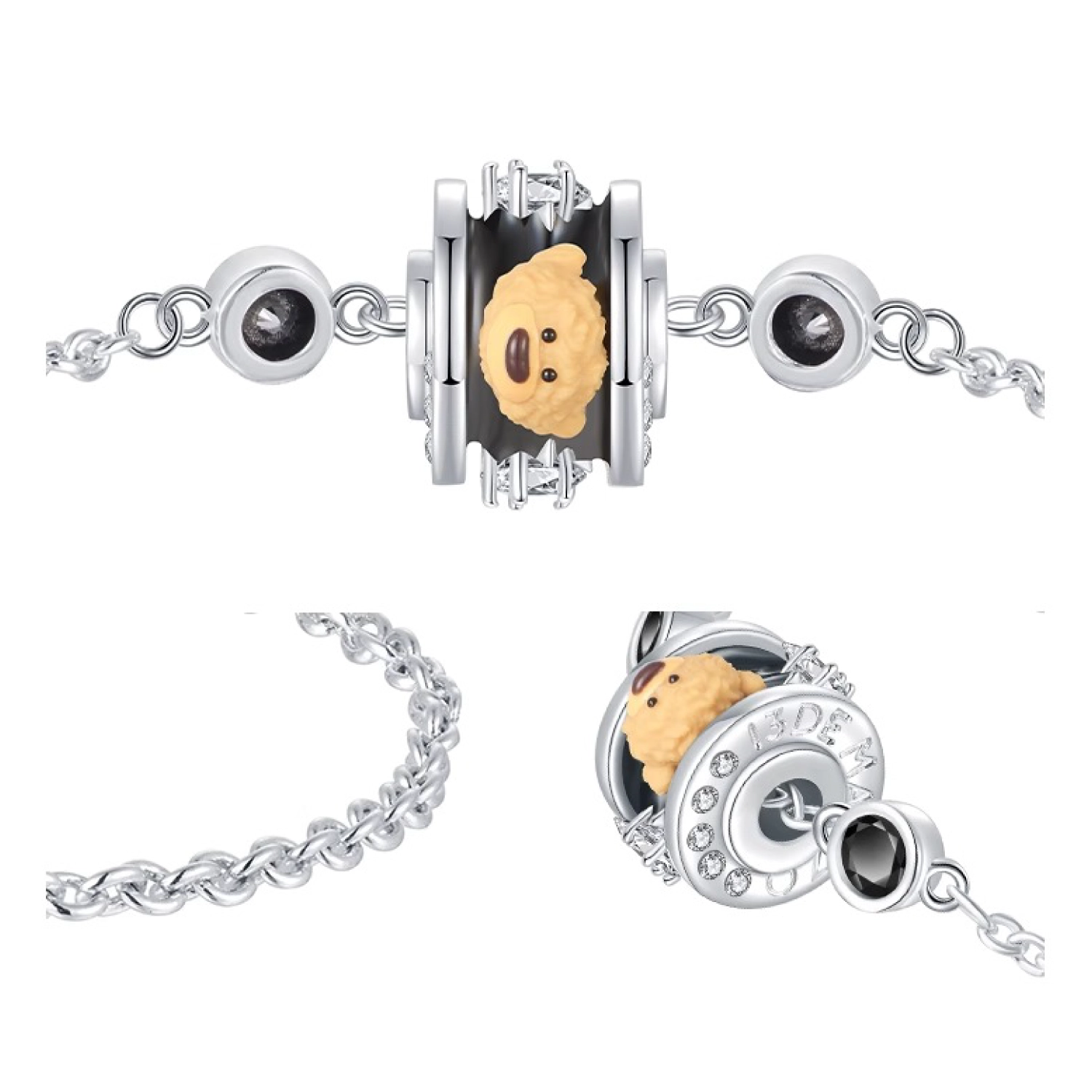 13DE MARZO Zircon Bear Bracelet Black