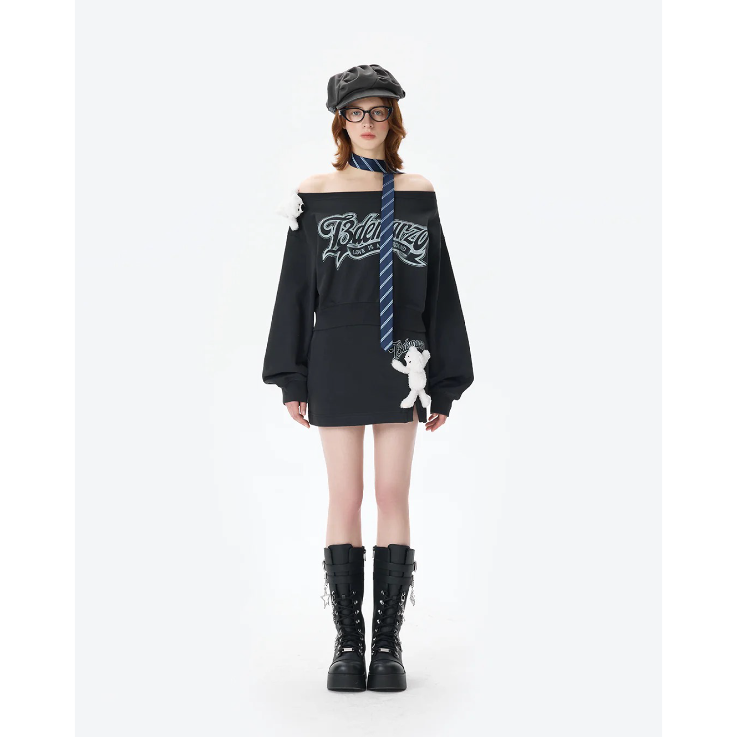 13DE MARZO BabyBear Pleated Dress Black