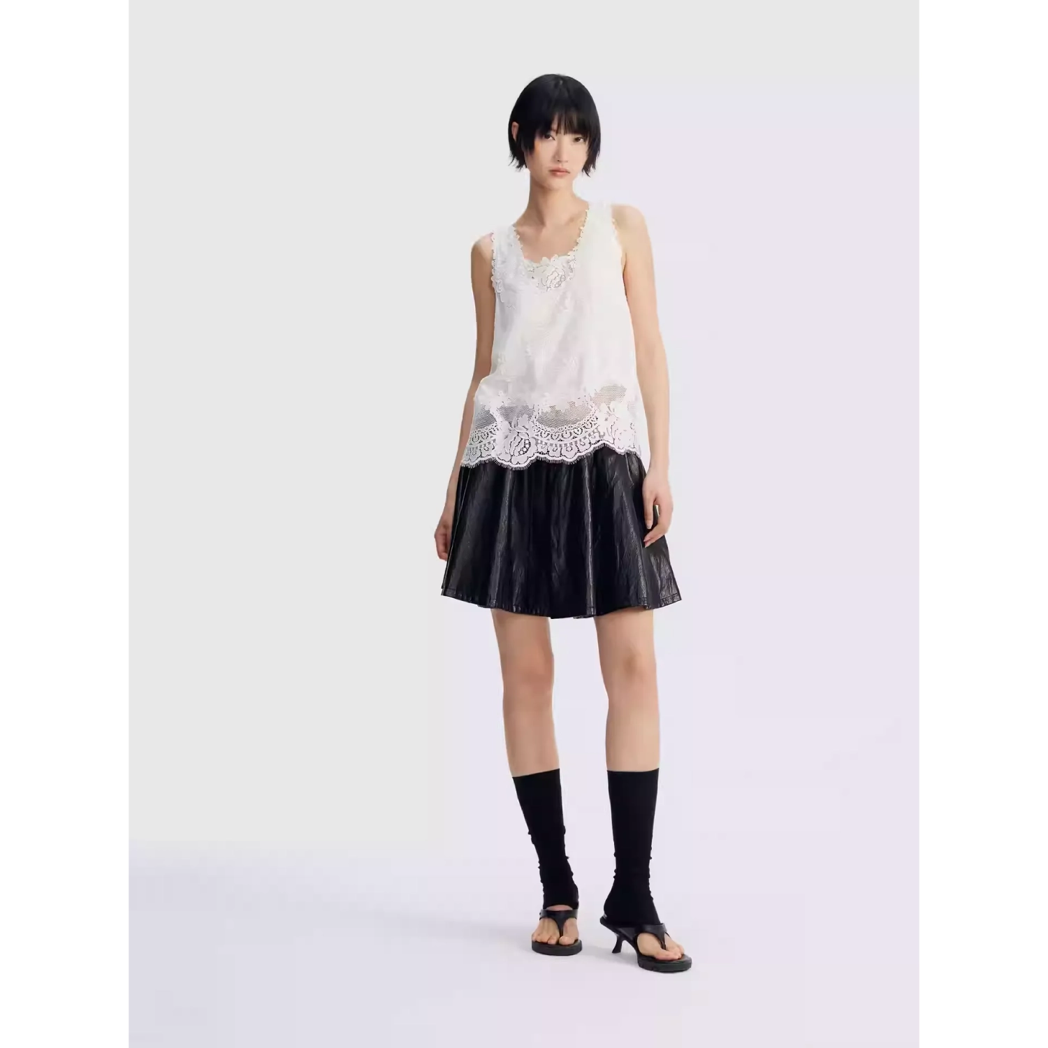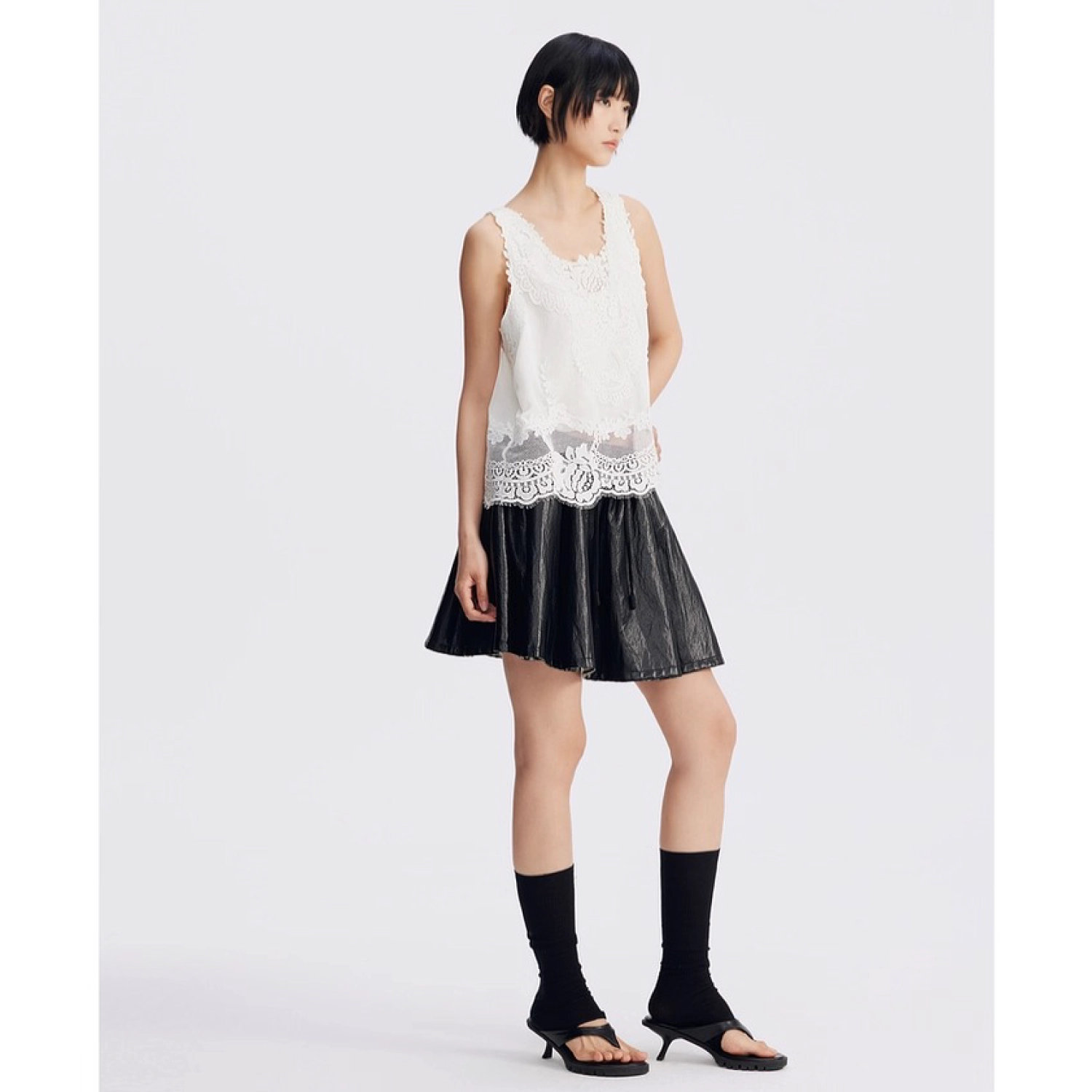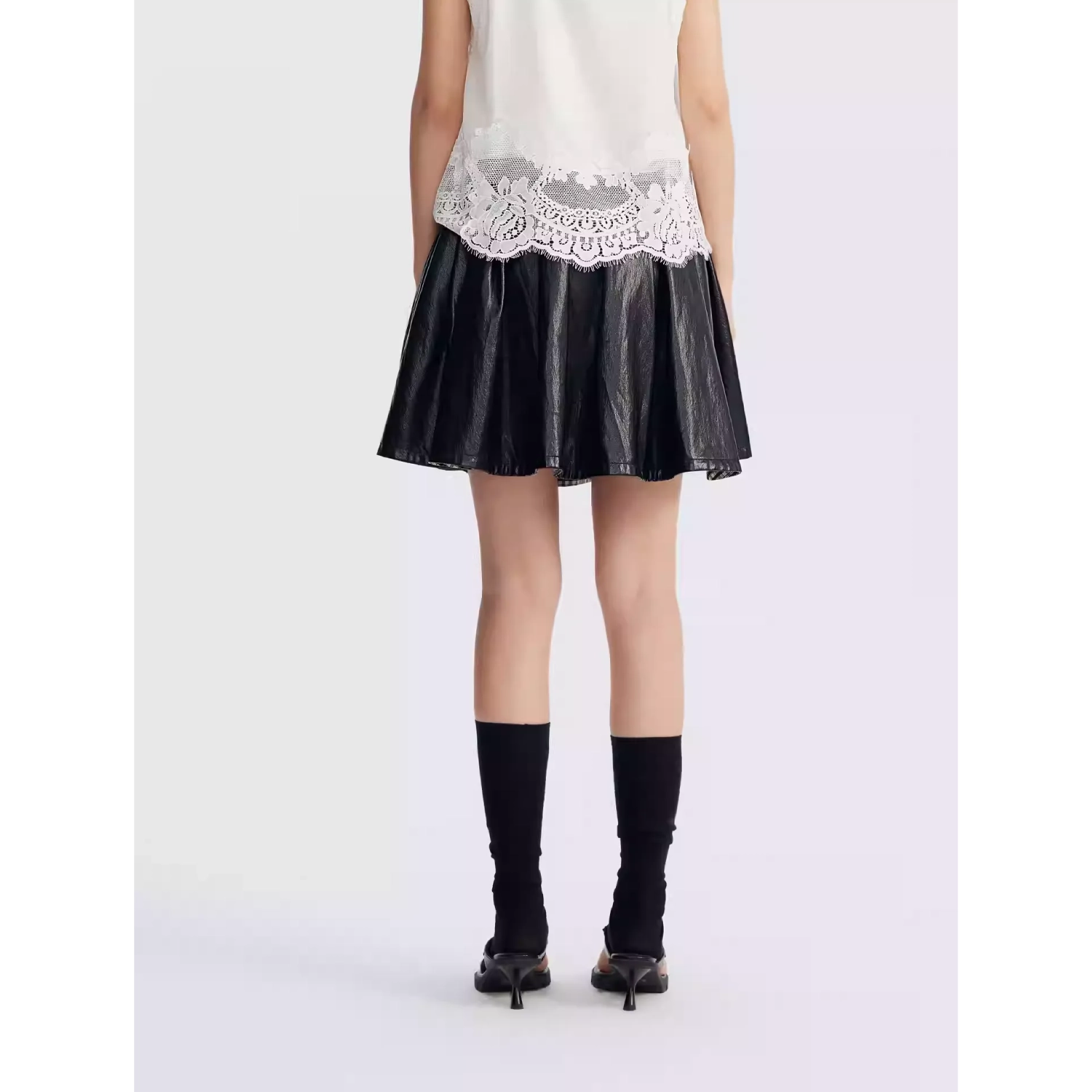 REVAN Reversible PU Leather Check Mini Skirt Black