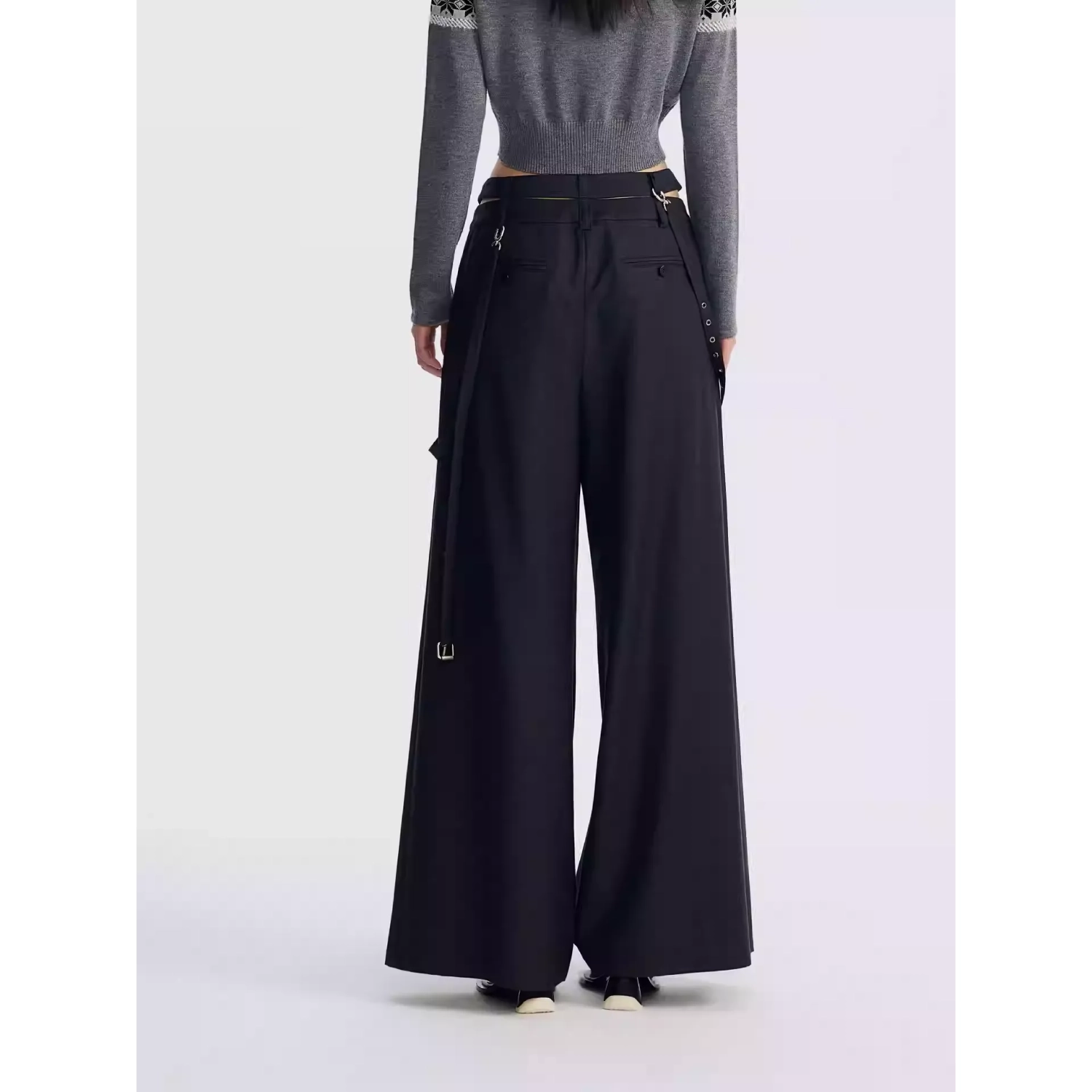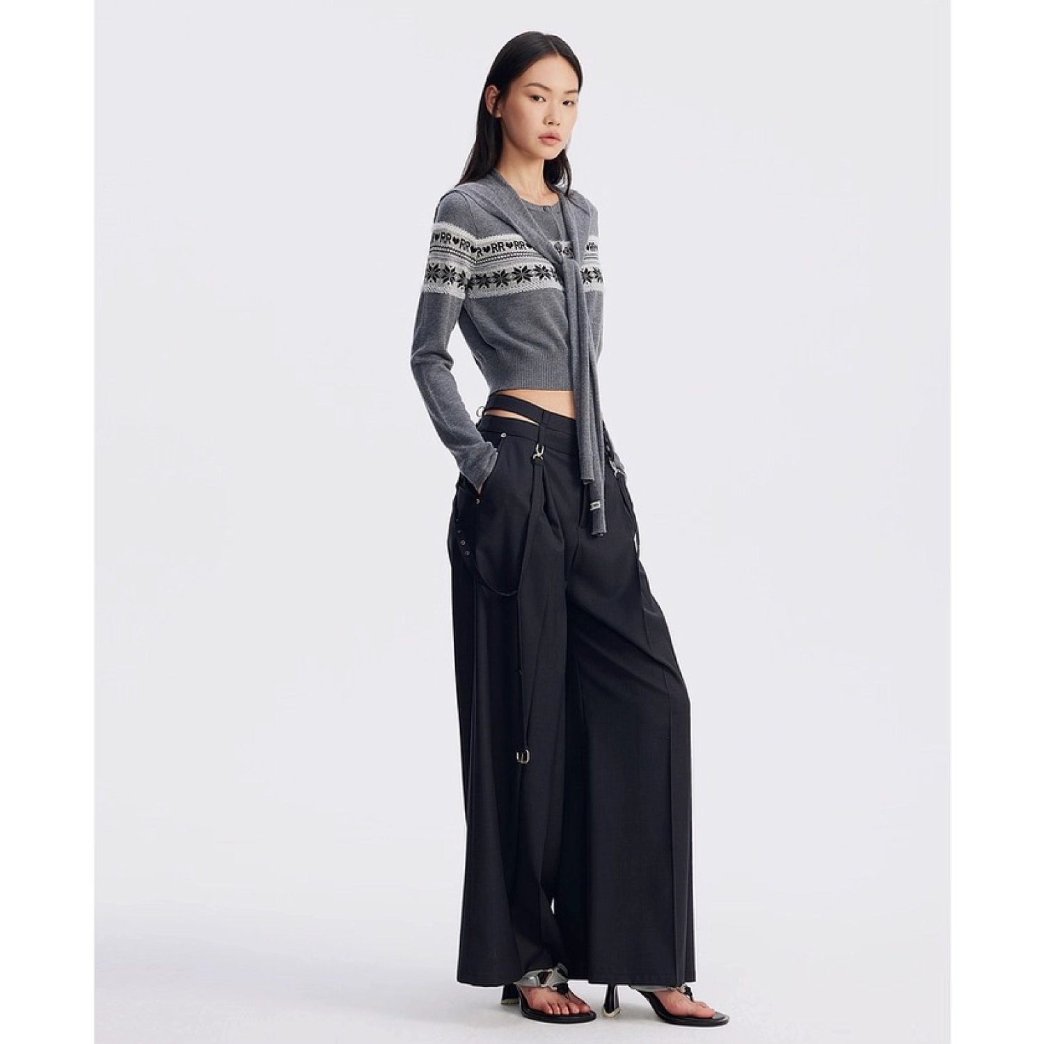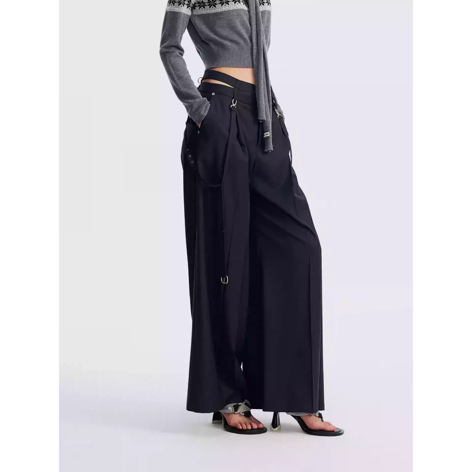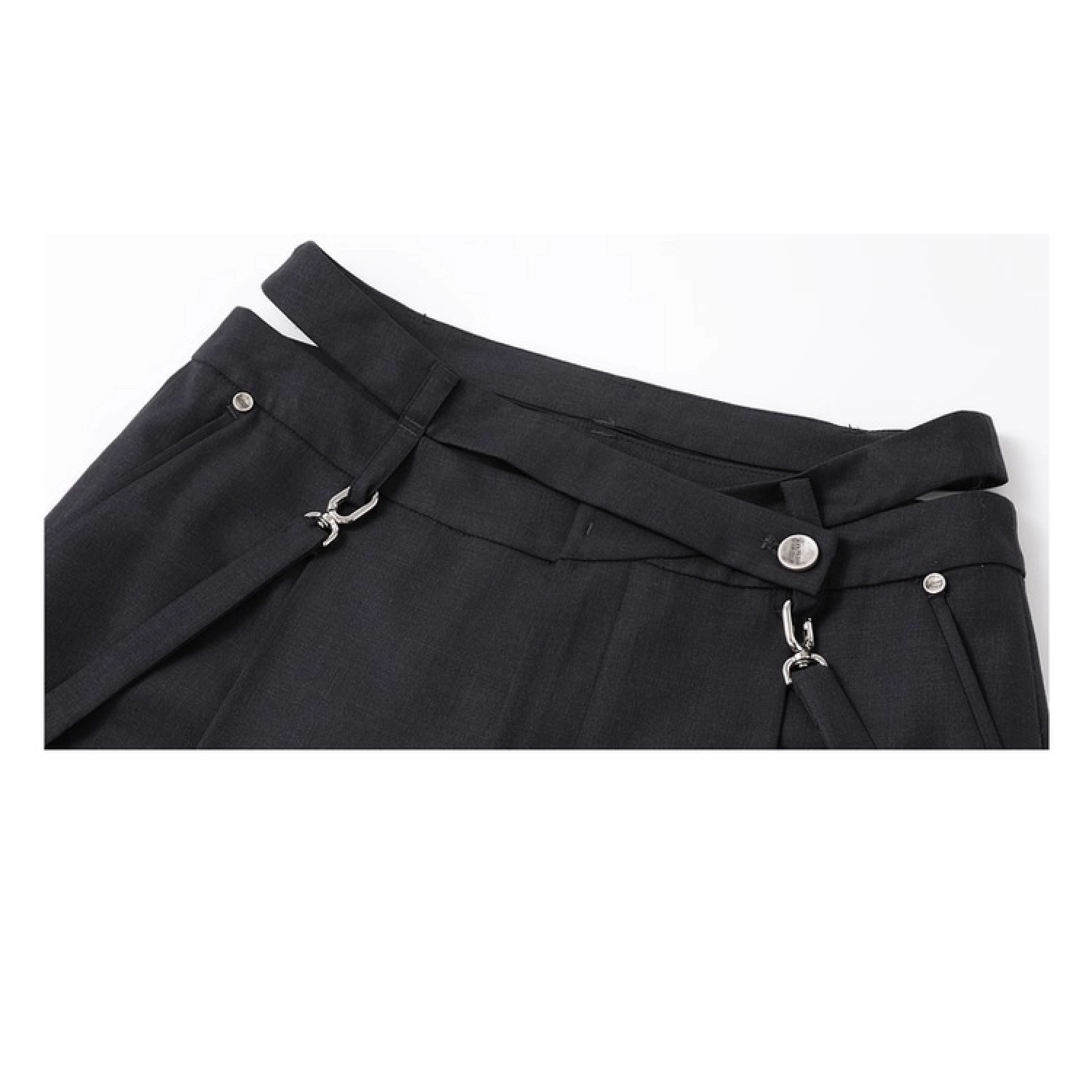 REVAN Asymmetrical Waist Wide-Leg Trousers Grey