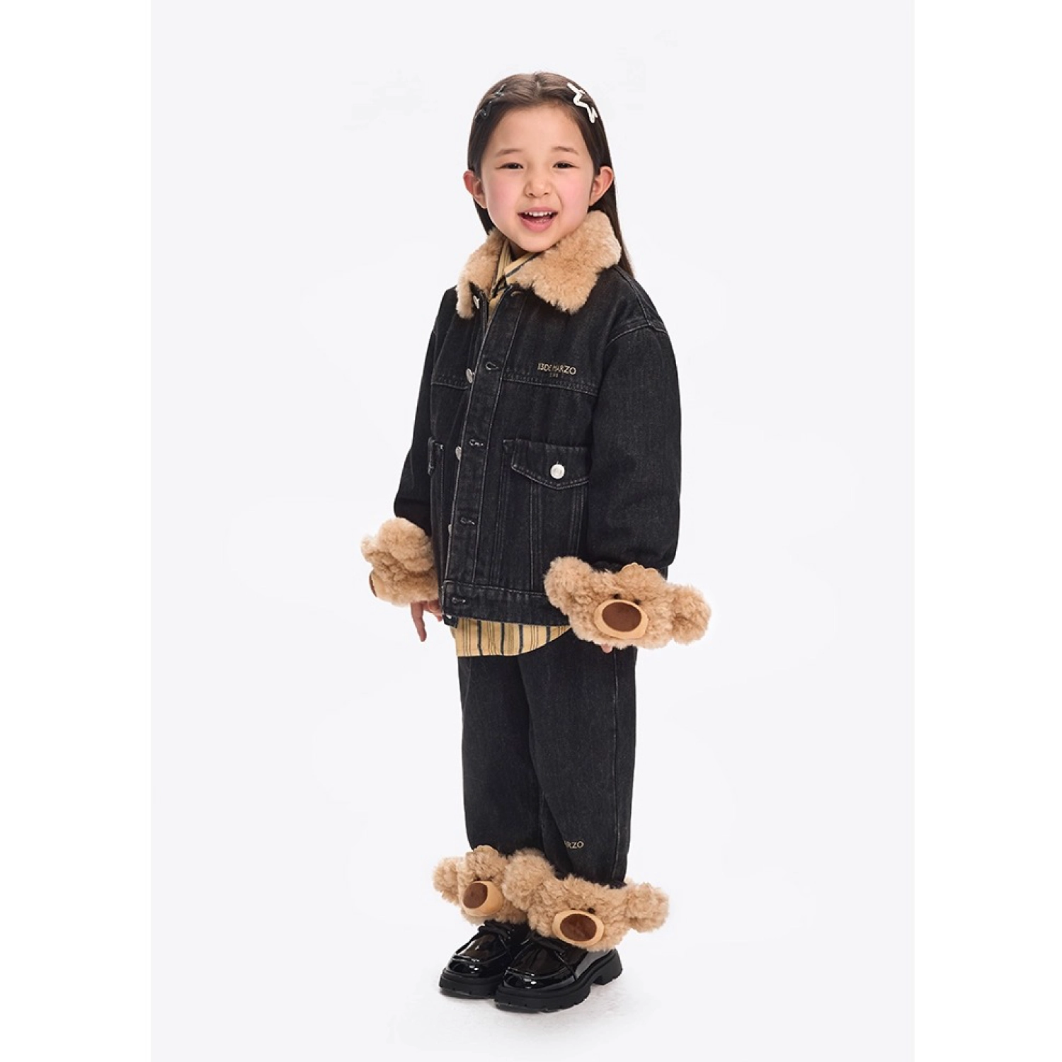 13DE MARZO BabyBear Cuffed Denim Jacket Black