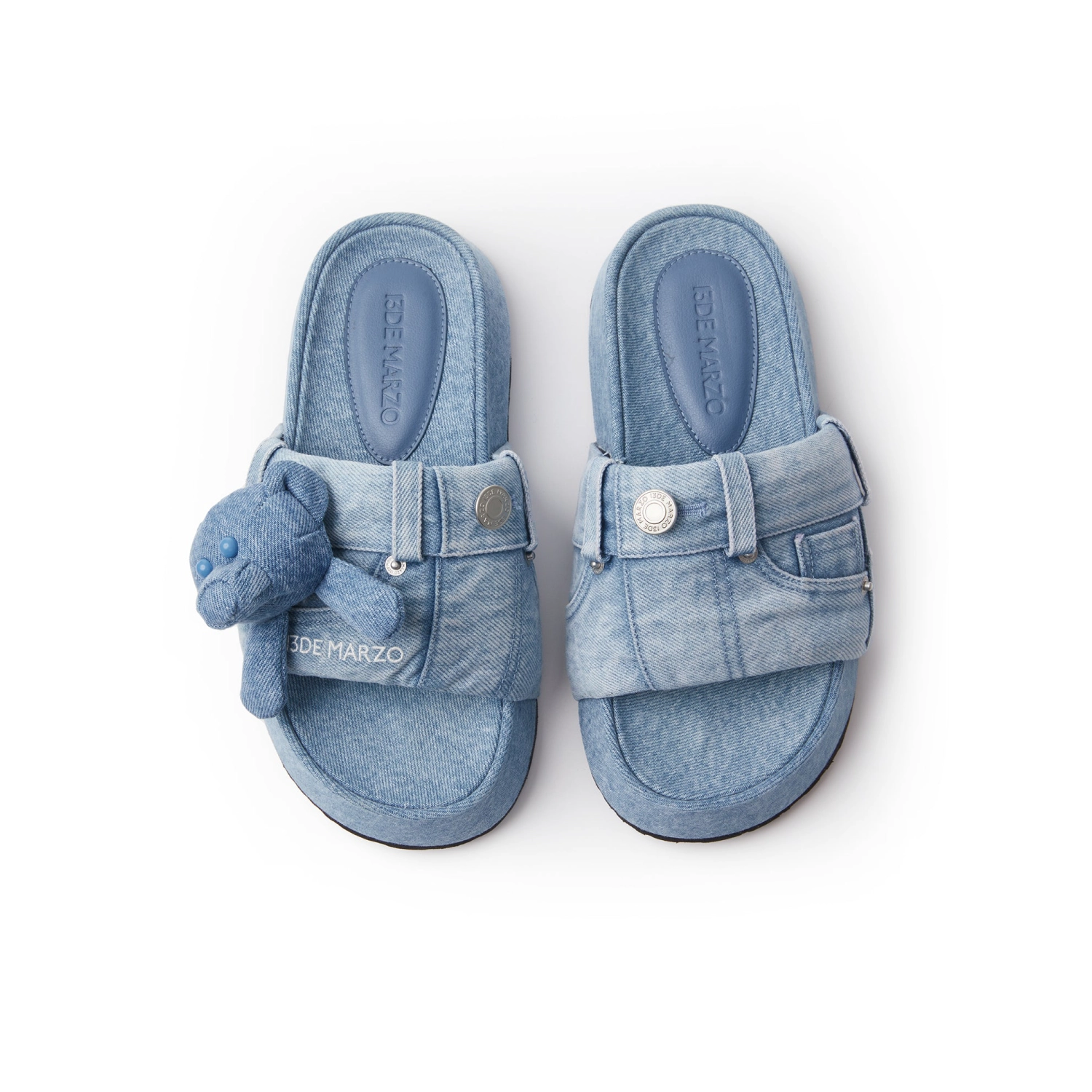 13DE MARZO Denim Frayed Embroidered Shorts Blue