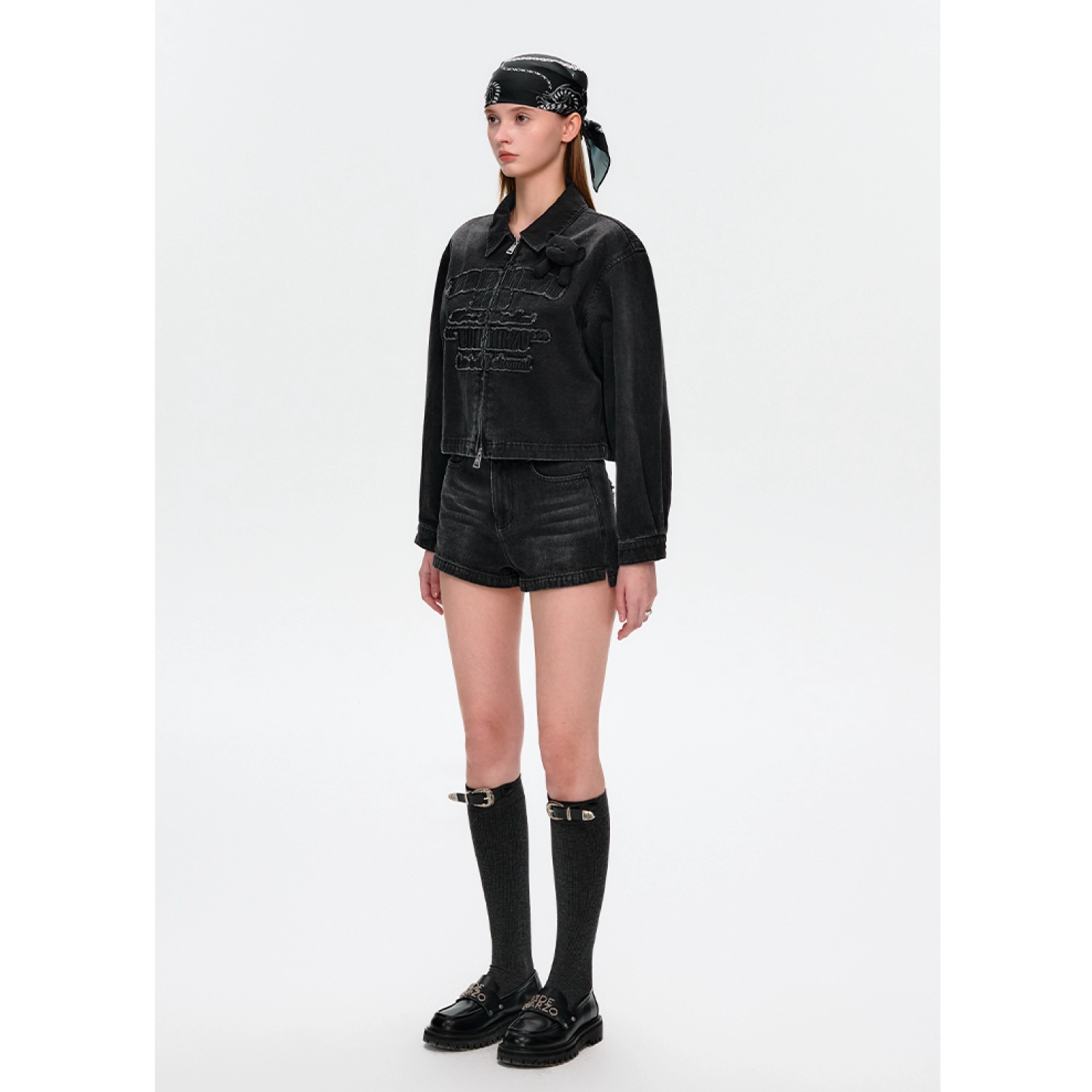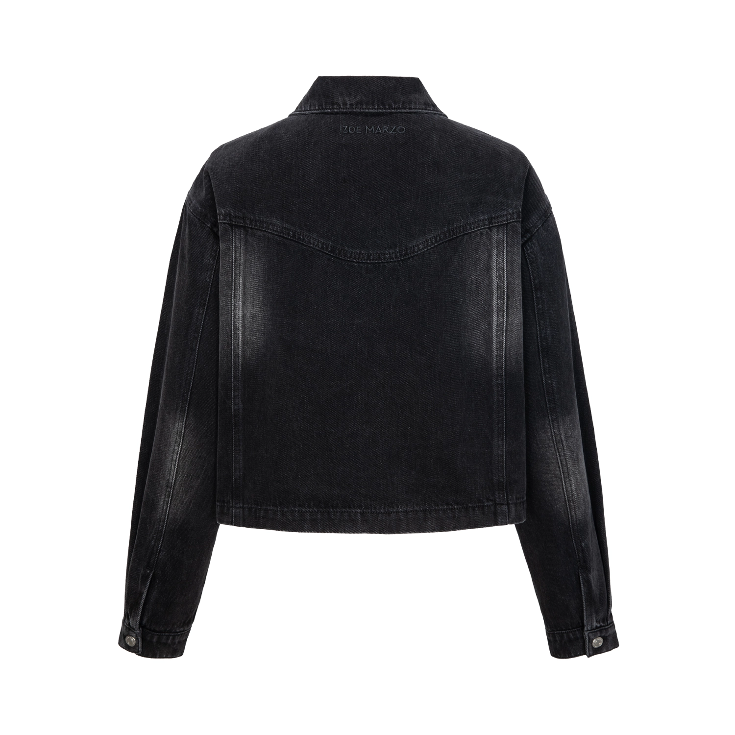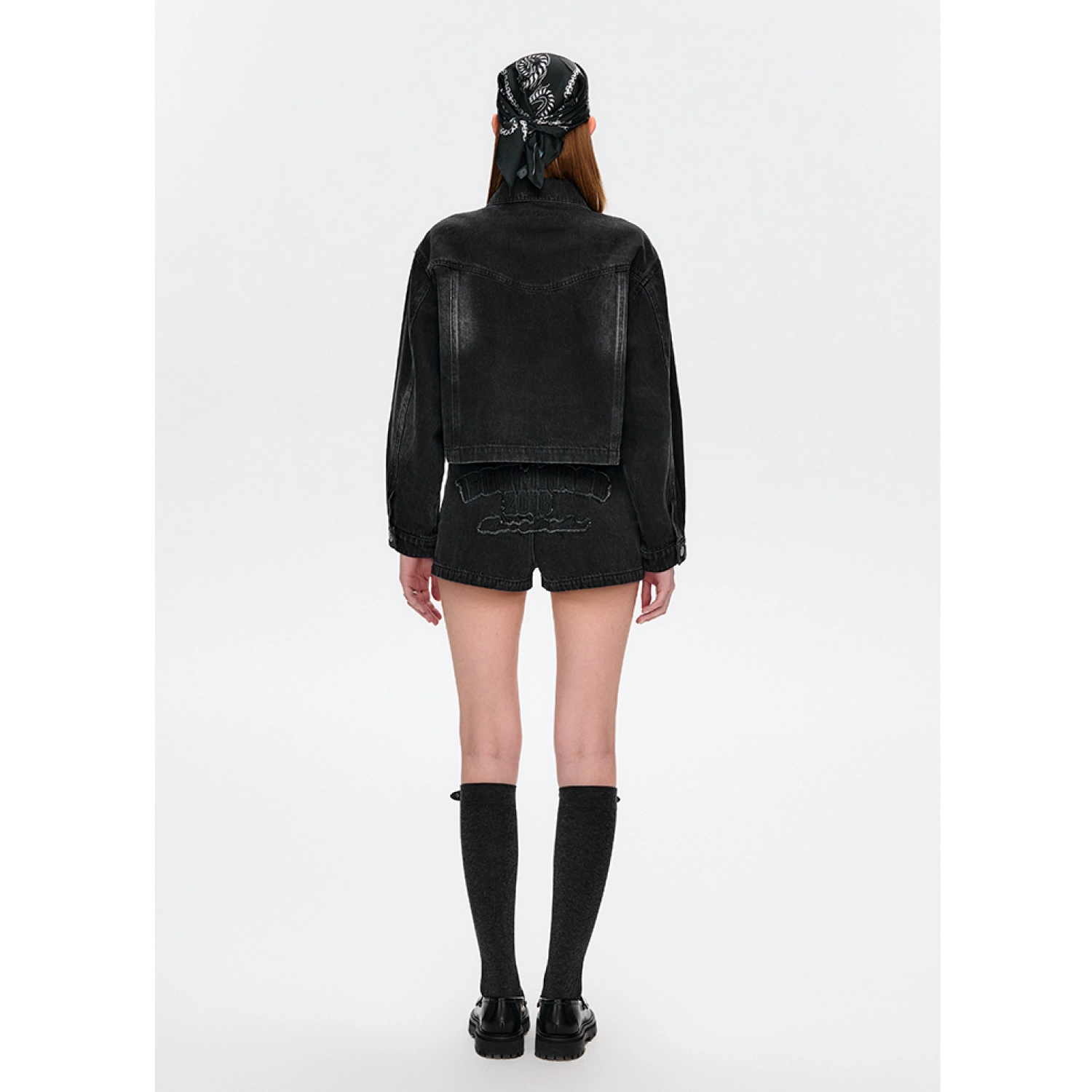 13DE MARZO Denim Frayed Embroidered Jacket Black