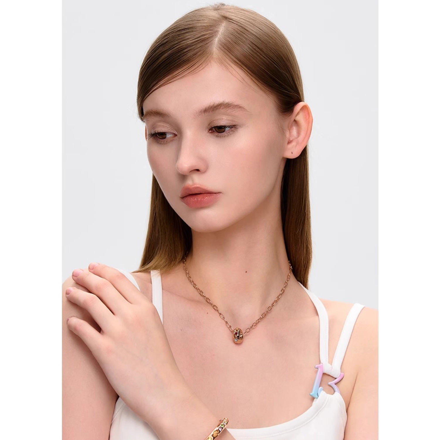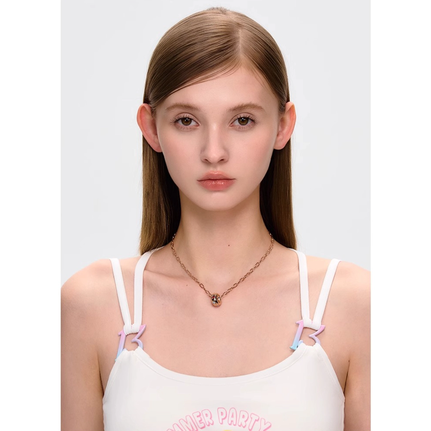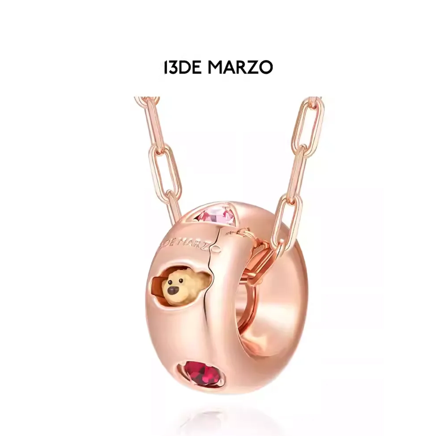 13DE MARZO Color Gems Bear Necklace Rose Gold