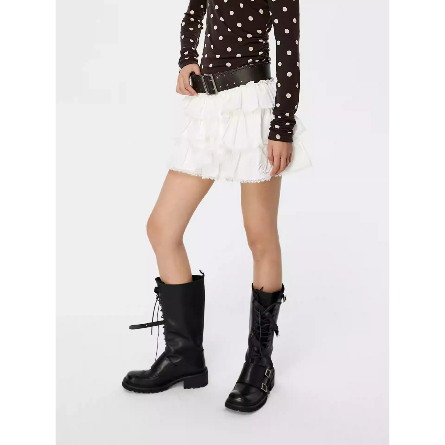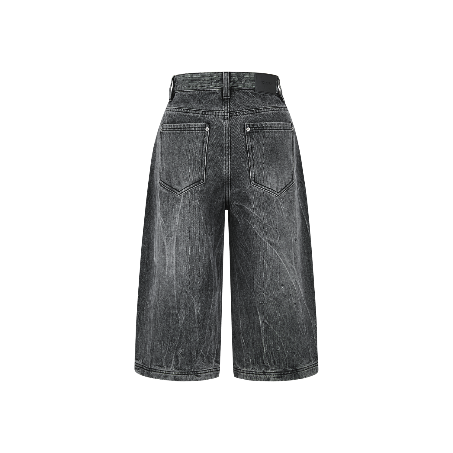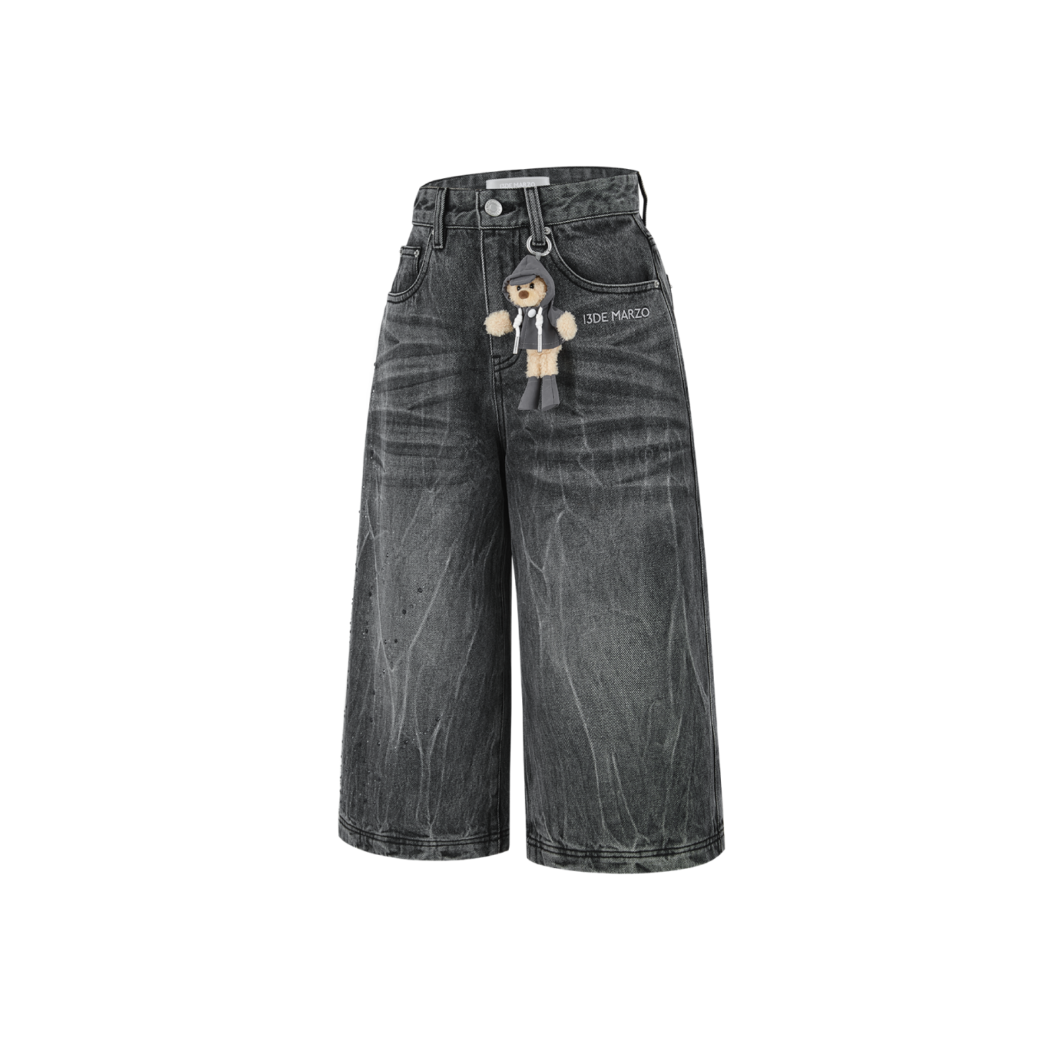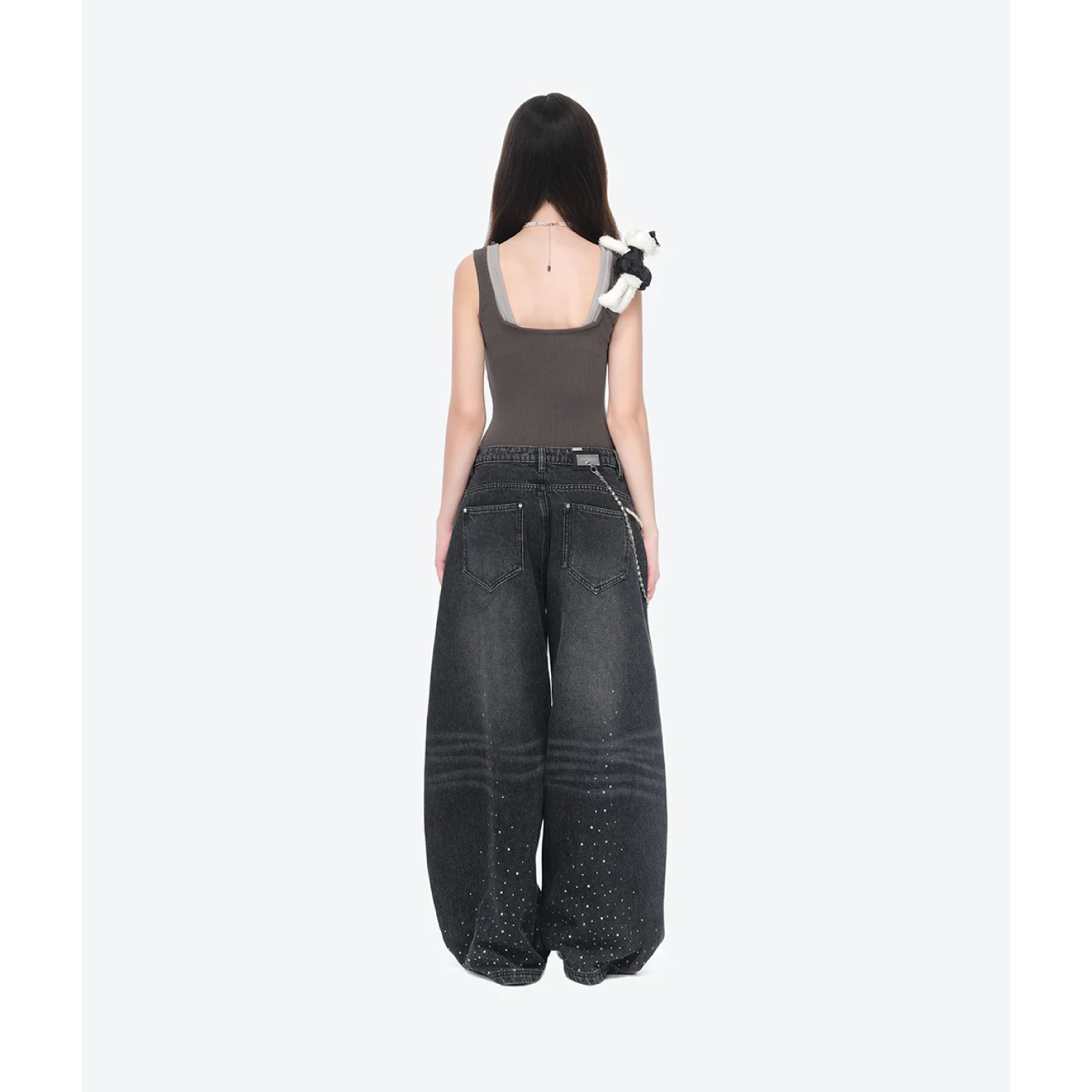 13DE MARZO Faux Rhinestones Pearl Chains Jeans Black