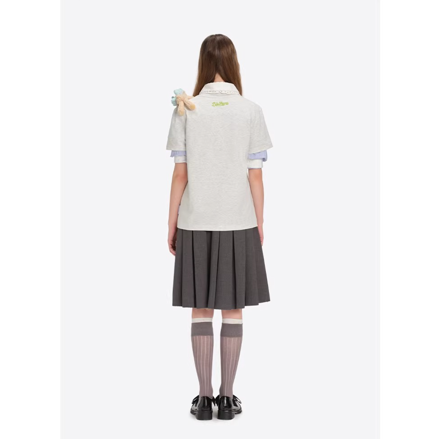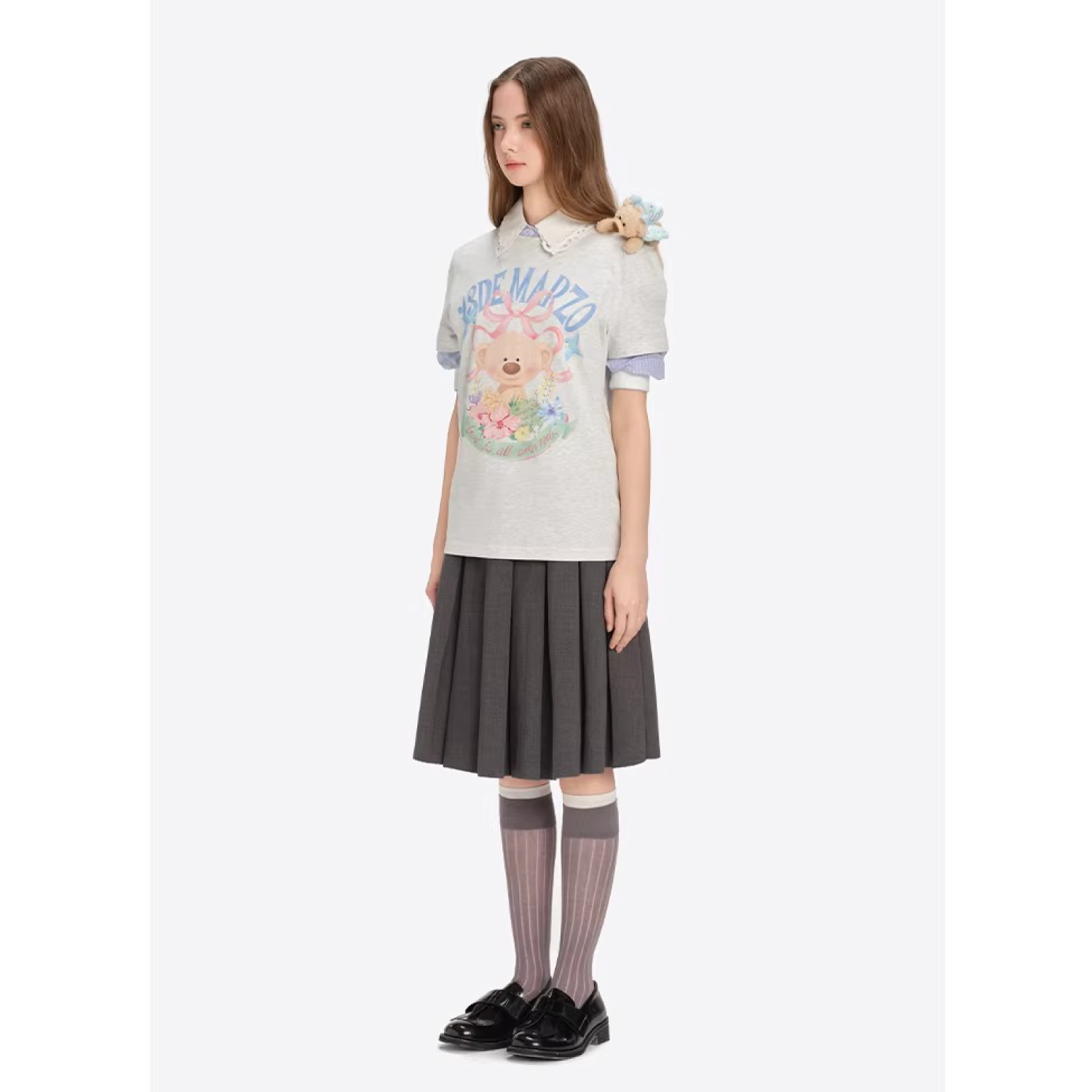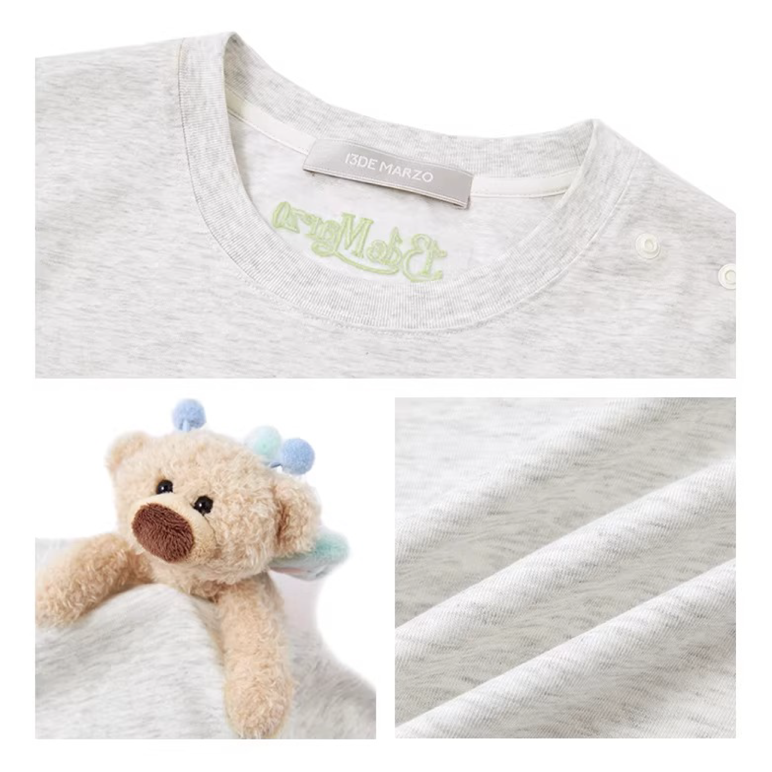 13DE MARZO Floral Bear Illustration T-Shirt Grey