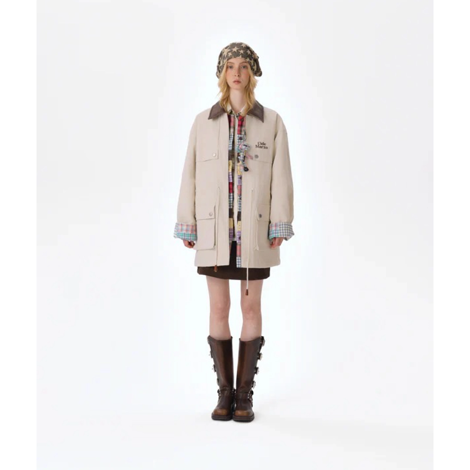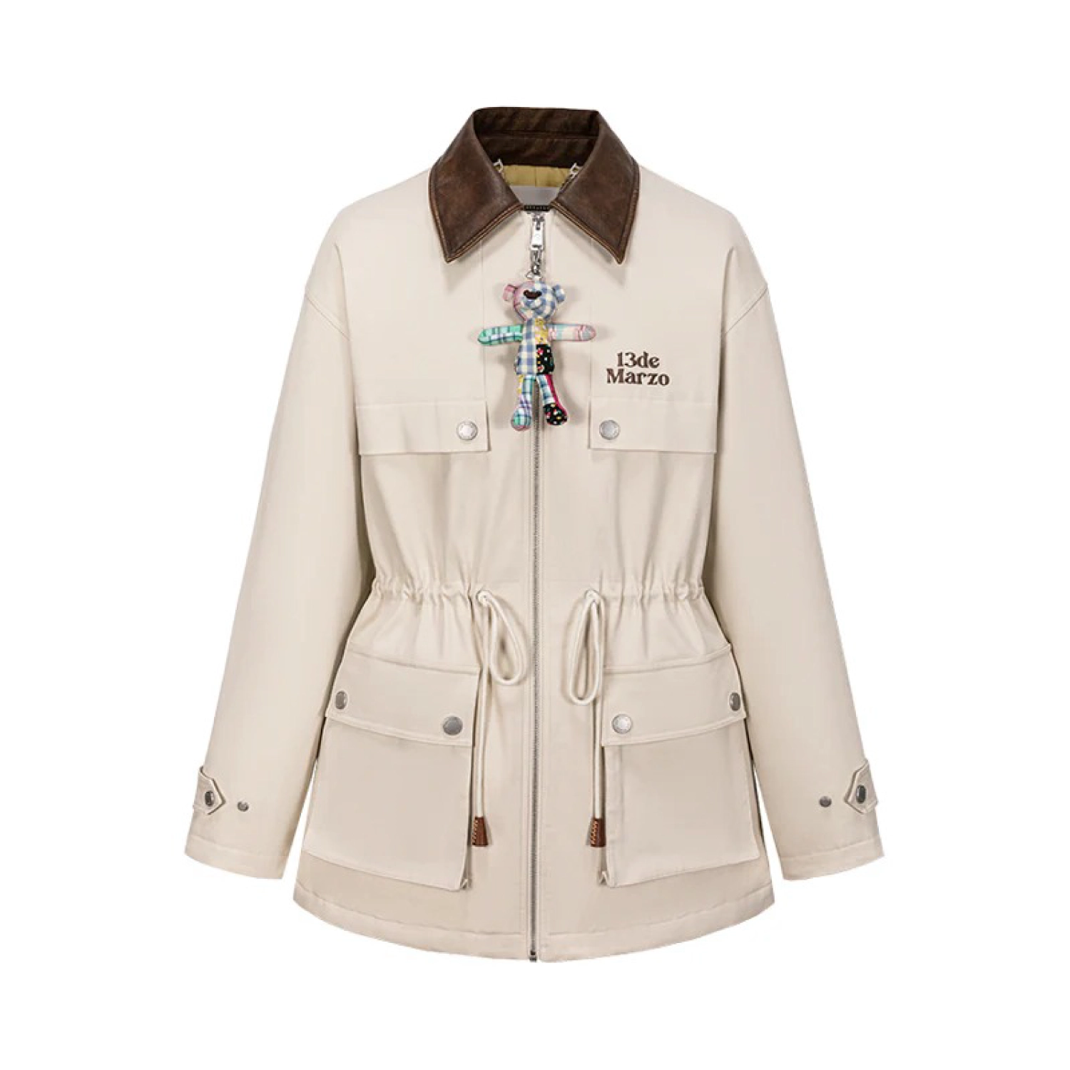 13DE MARZO Patchwork Bear Parka Coat Beige