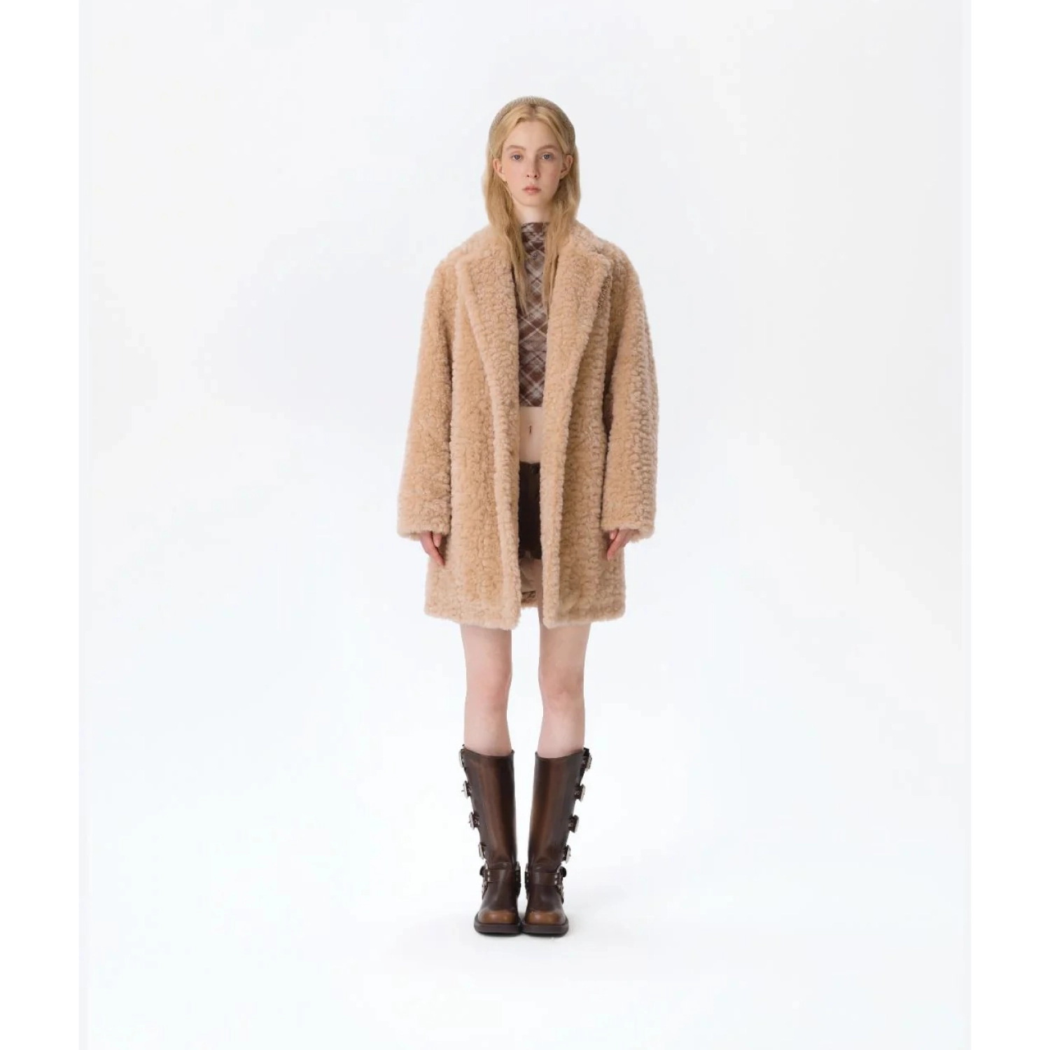 13DE MARZO Bear Fuzzy Long Coat Khaki