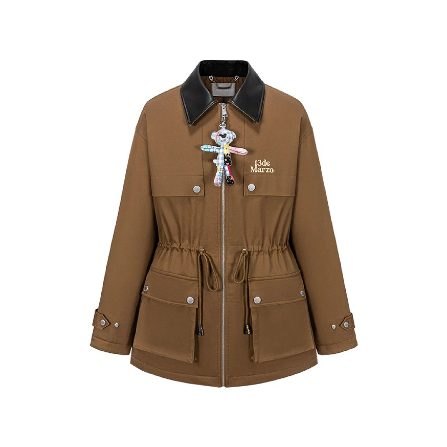 13DE MARZO Patchwork Bear Parka Coat Brown