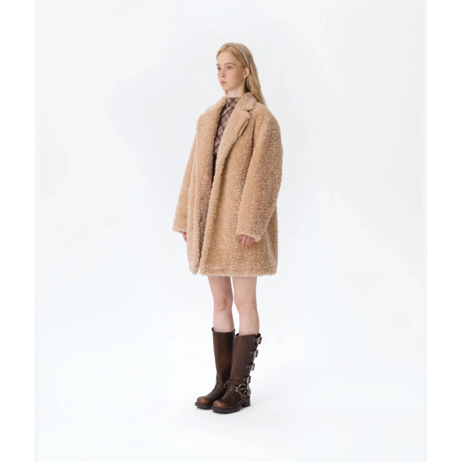 13DE MARZO Bear Fuzzy Long Coat Beige