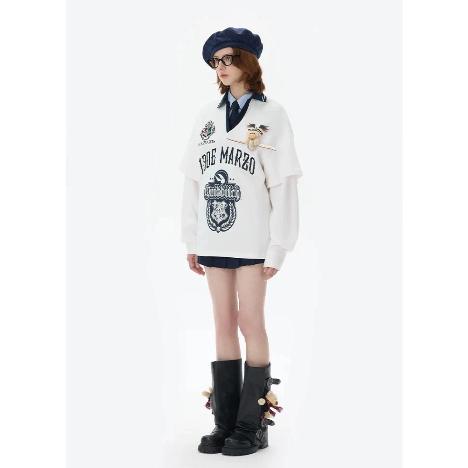 Harry Potter × 13DE MARZO Quidditch Bear Sports Shirt White