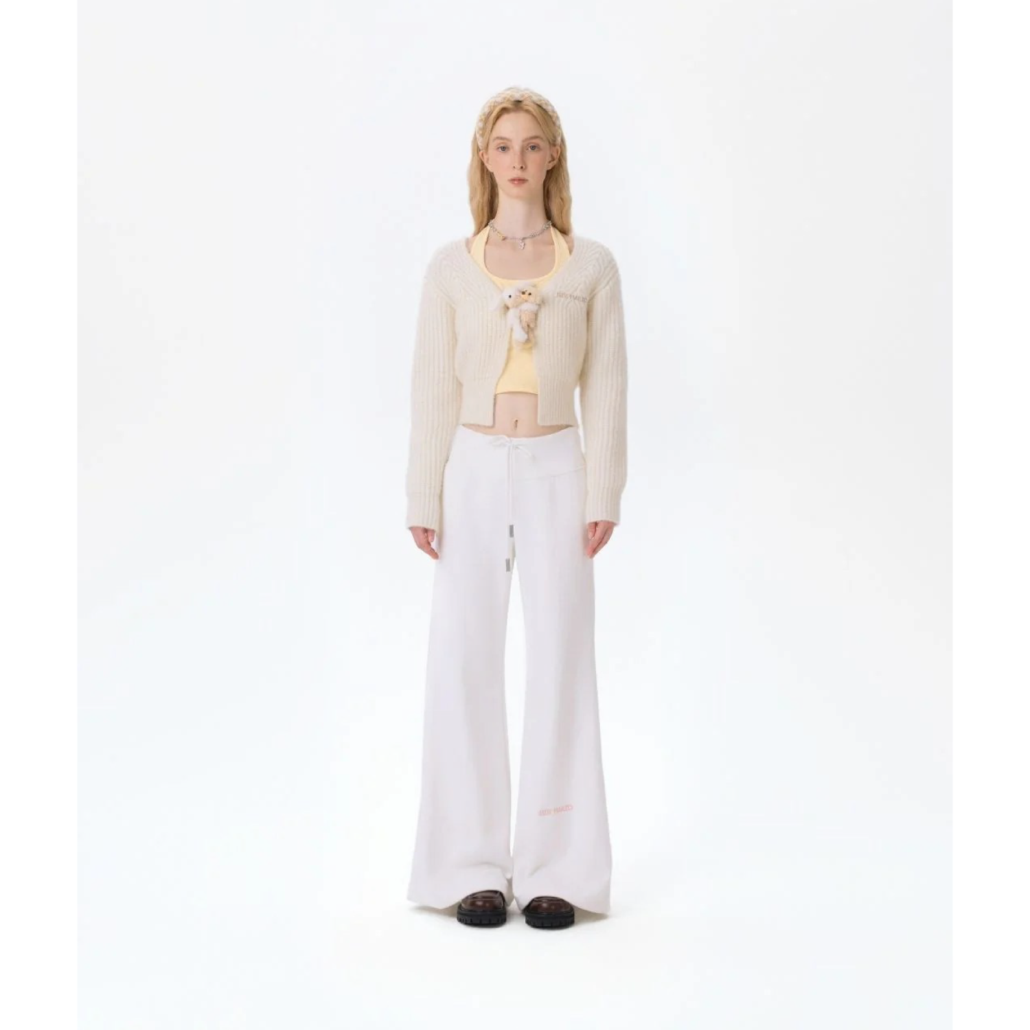 13DE MARZO Base Wide Flare Pants White