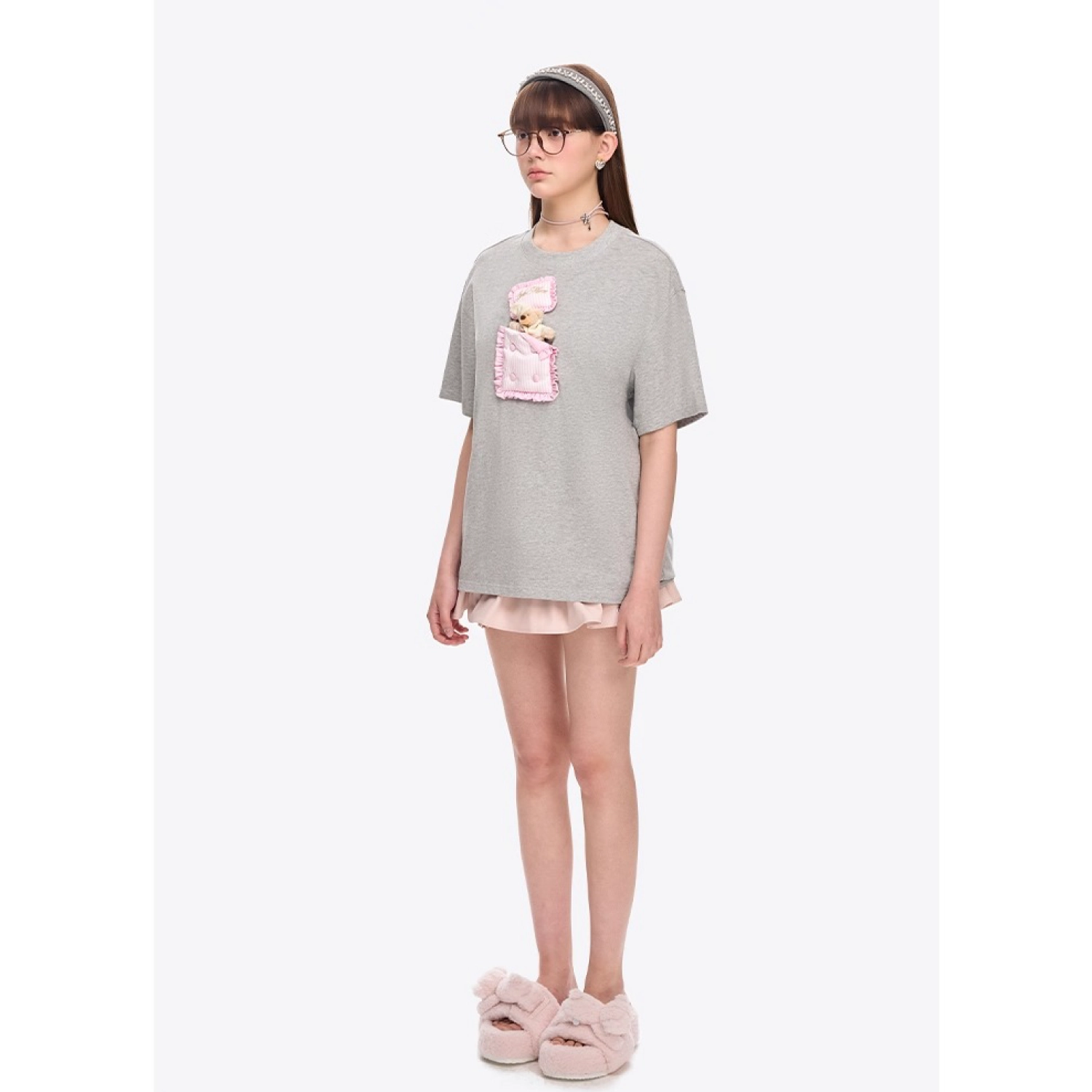 13DE MARZO Bear Flip-top Fur Slippers Pink