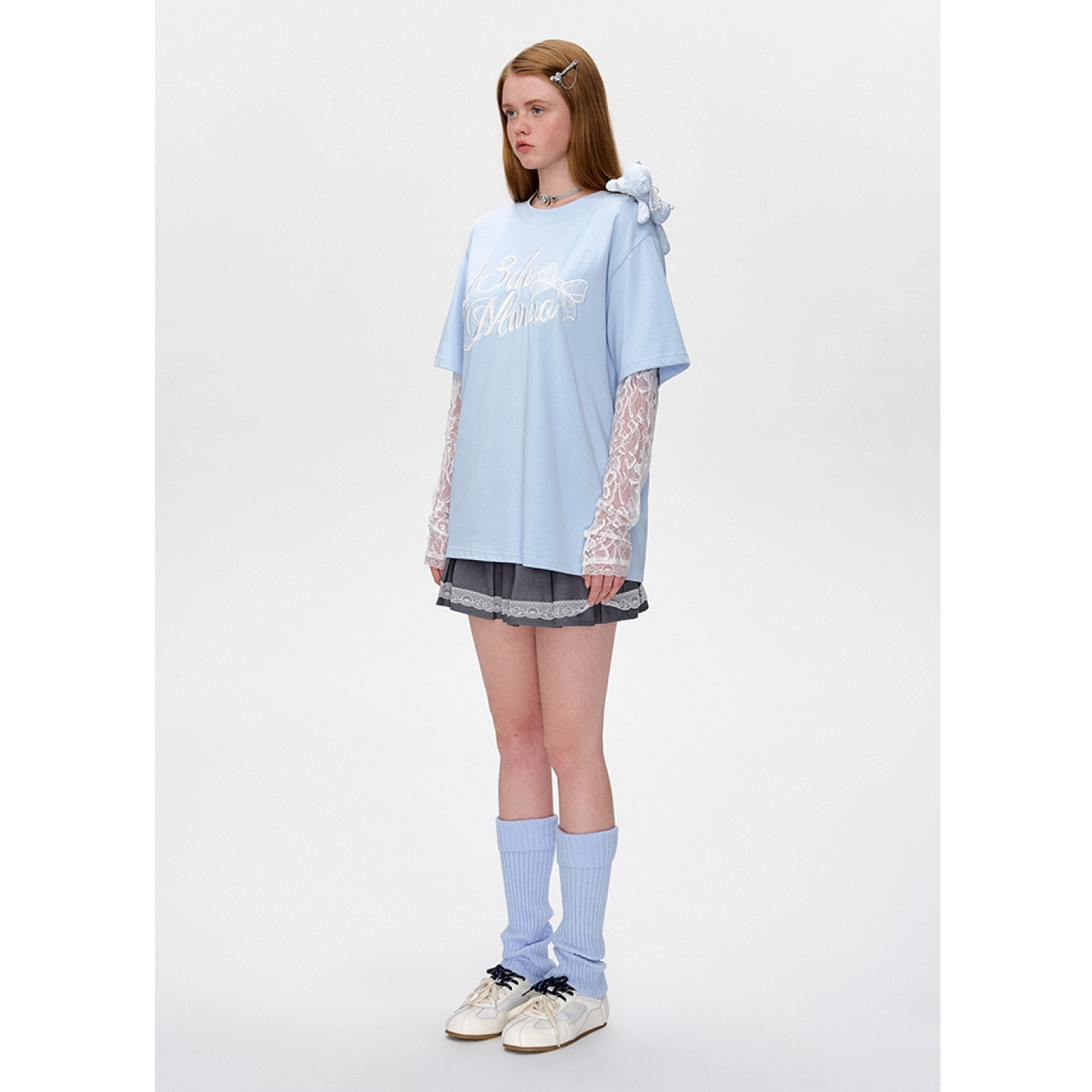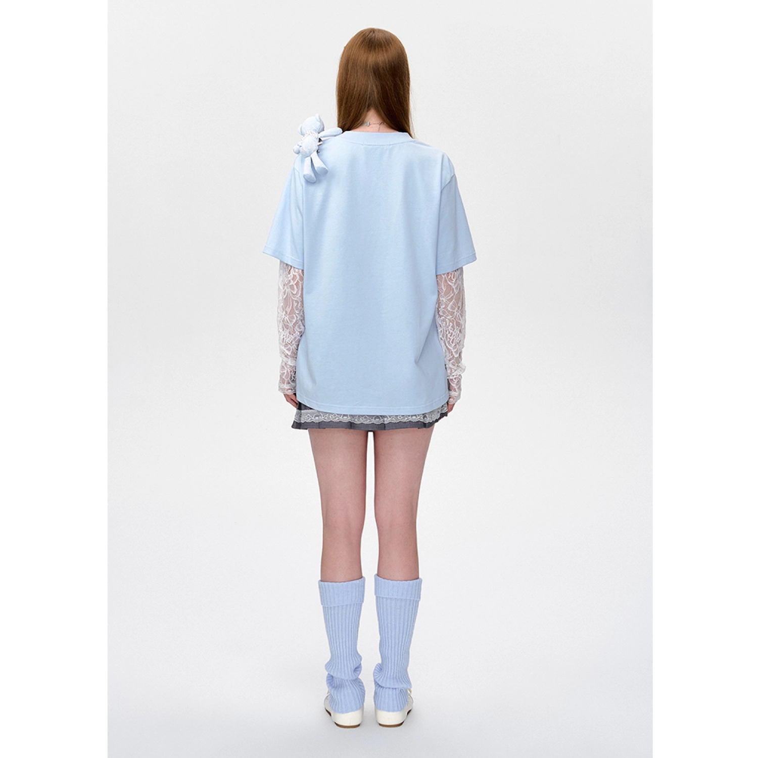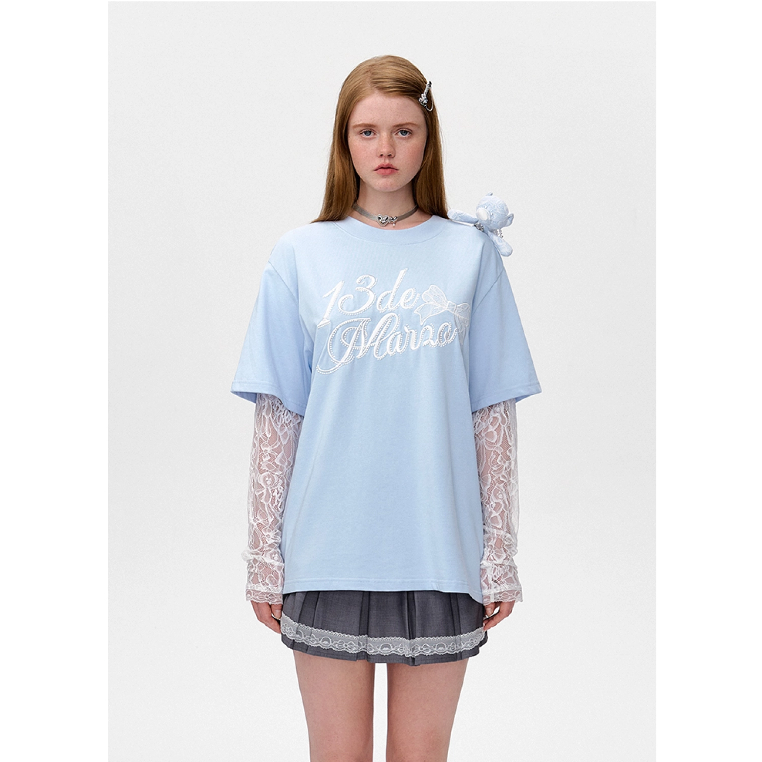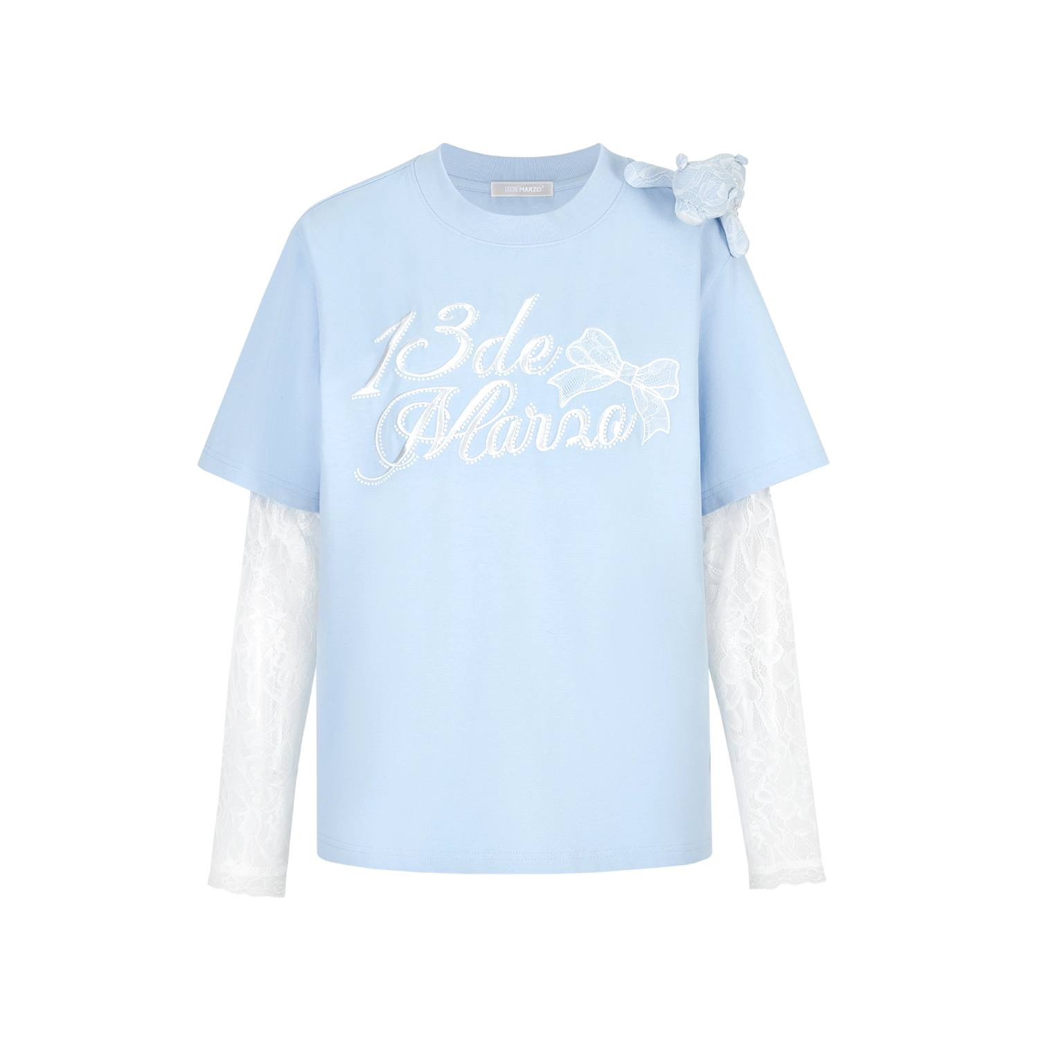 13DE MARZO Bear Layered Lacy T-shirt Blue