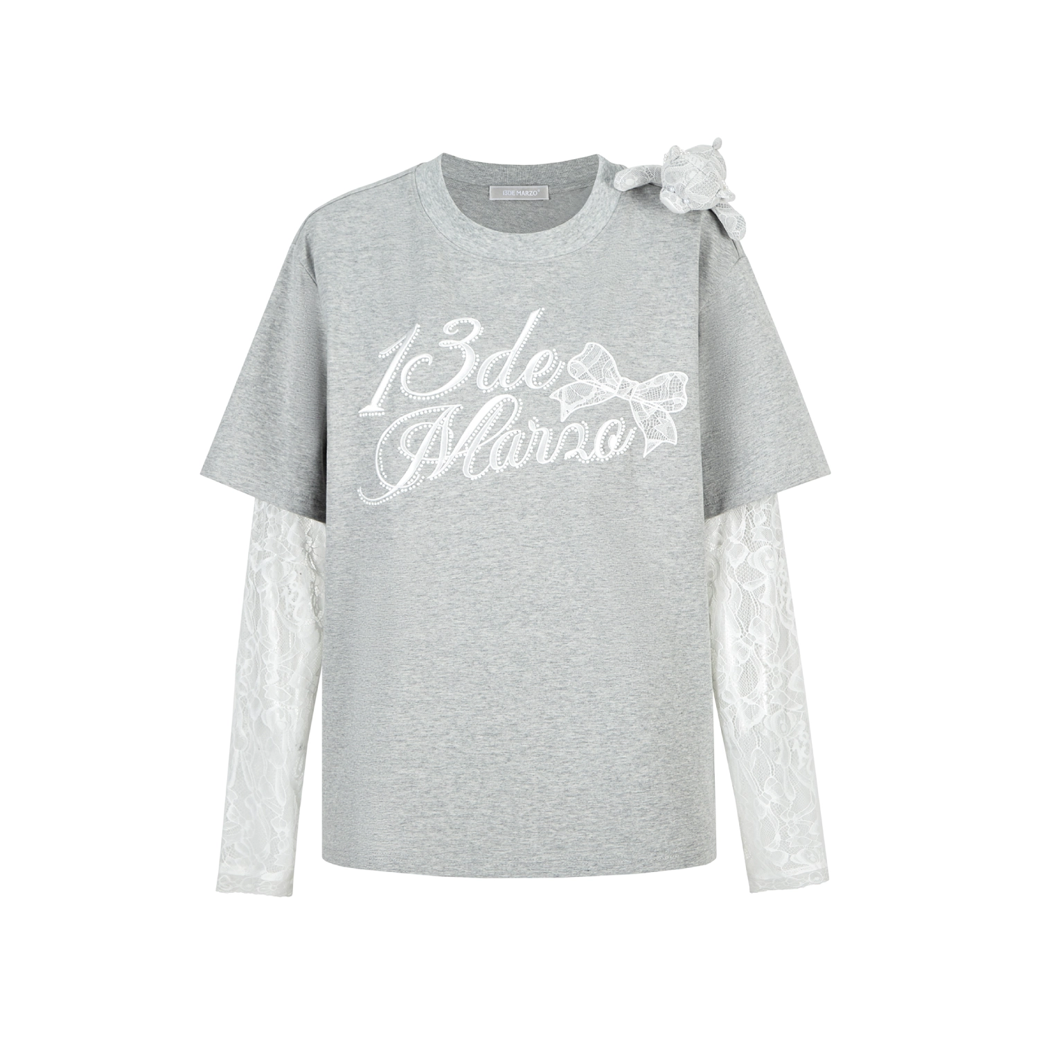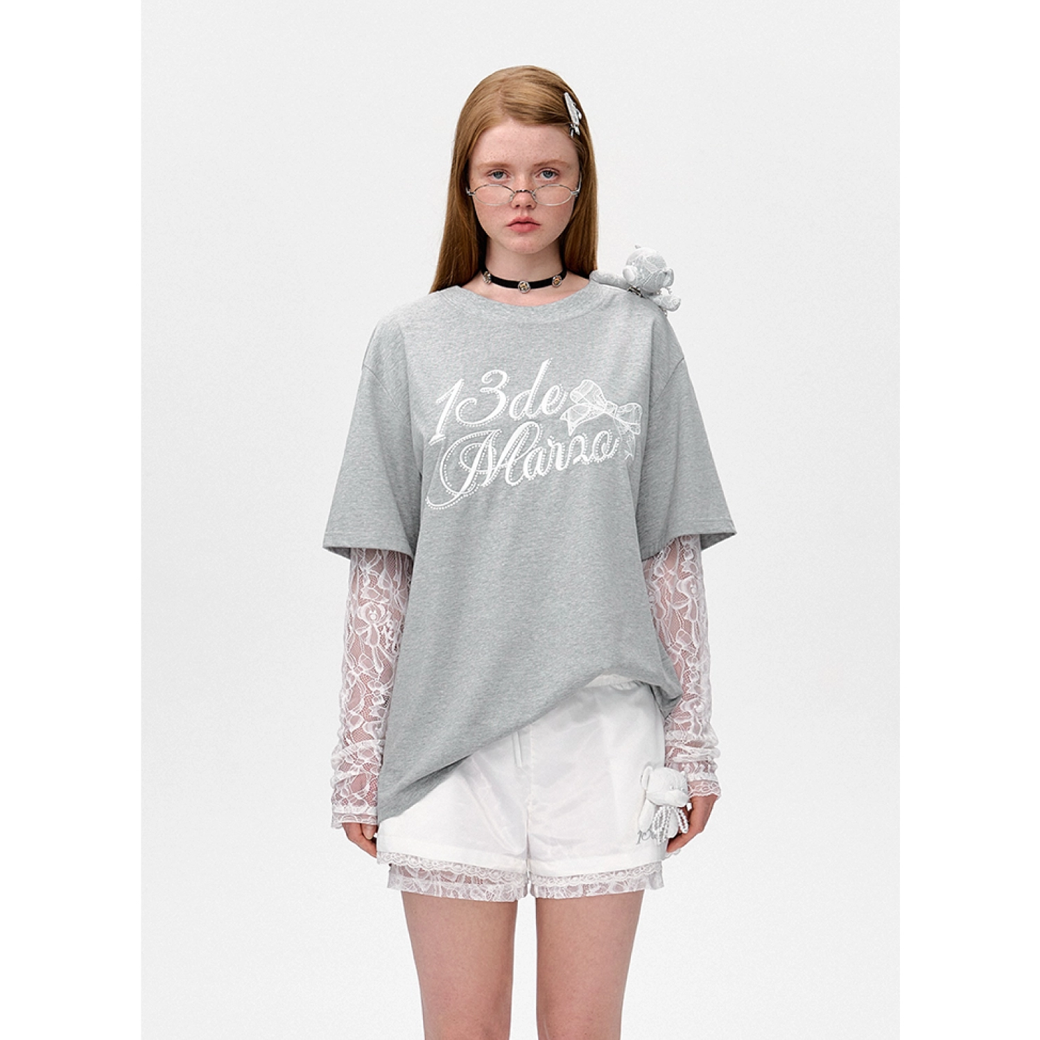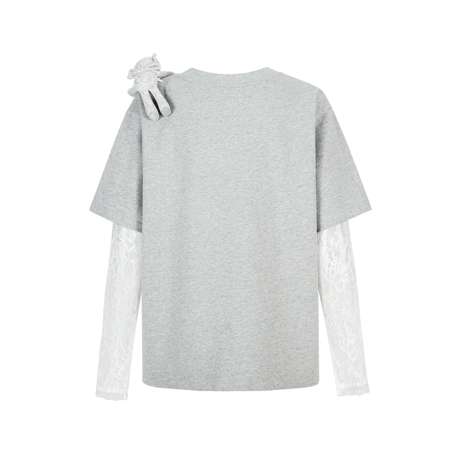 13DE MARZO Bear Layered Lacy T-shirt Grey
