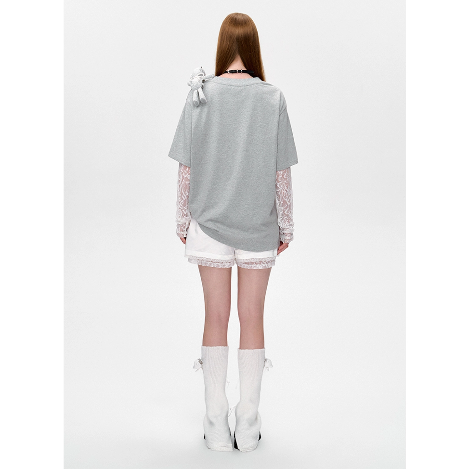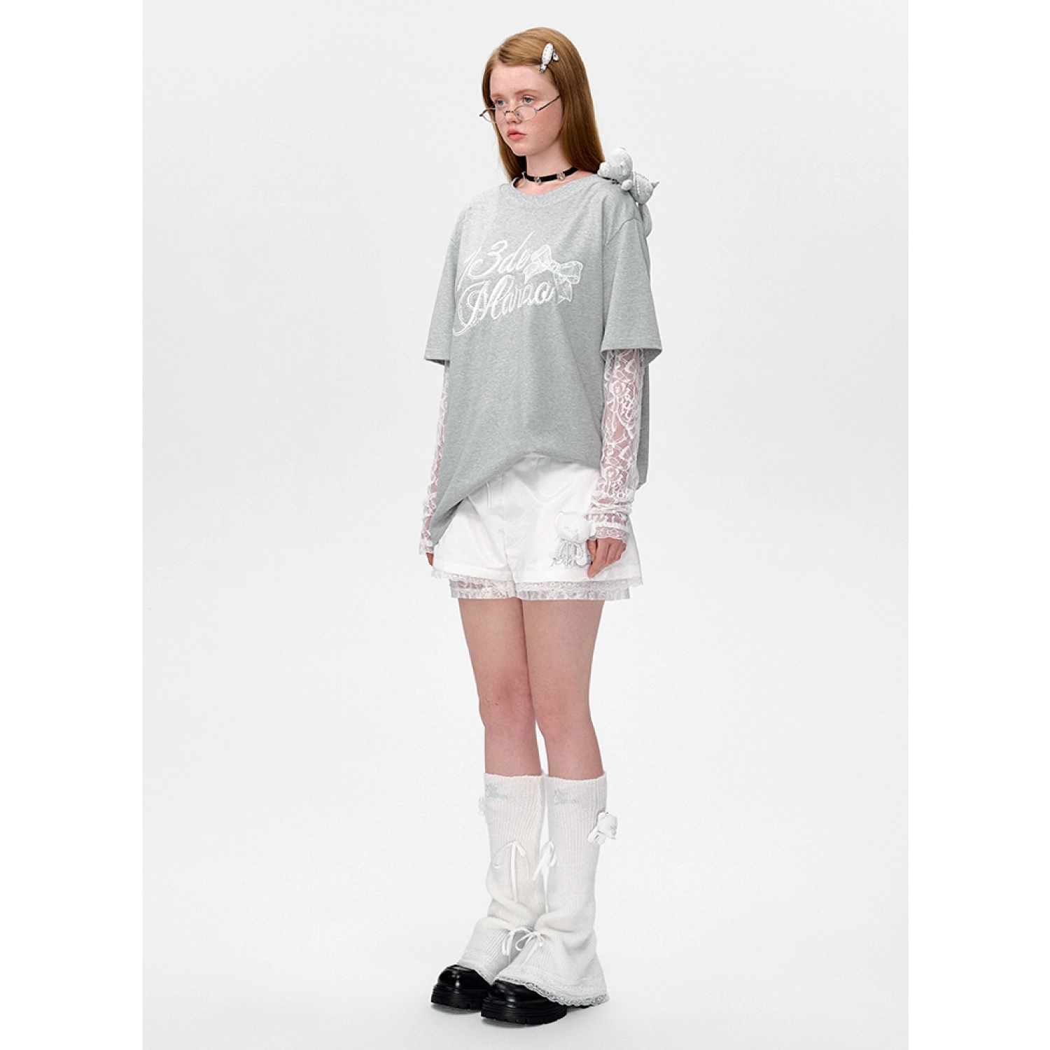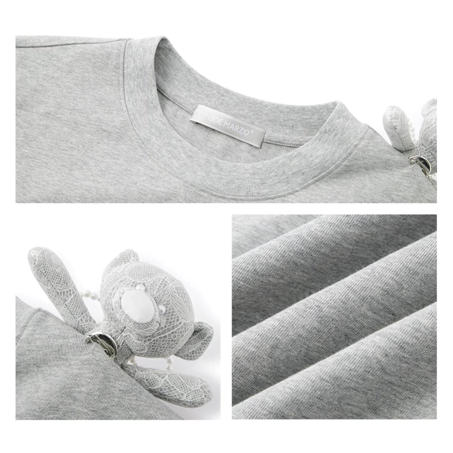 13DE MARZO Bear Layered Lacy T-shirt Grey