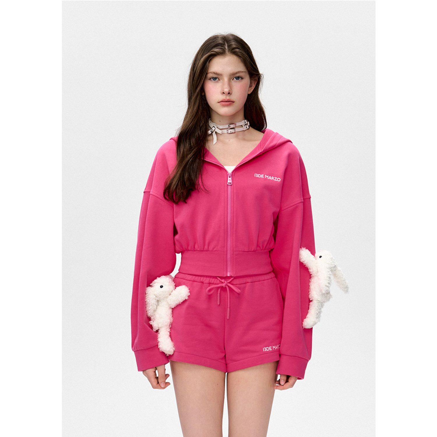 13DE MARZO Doozoo Sports Zipped Hoodie Pink