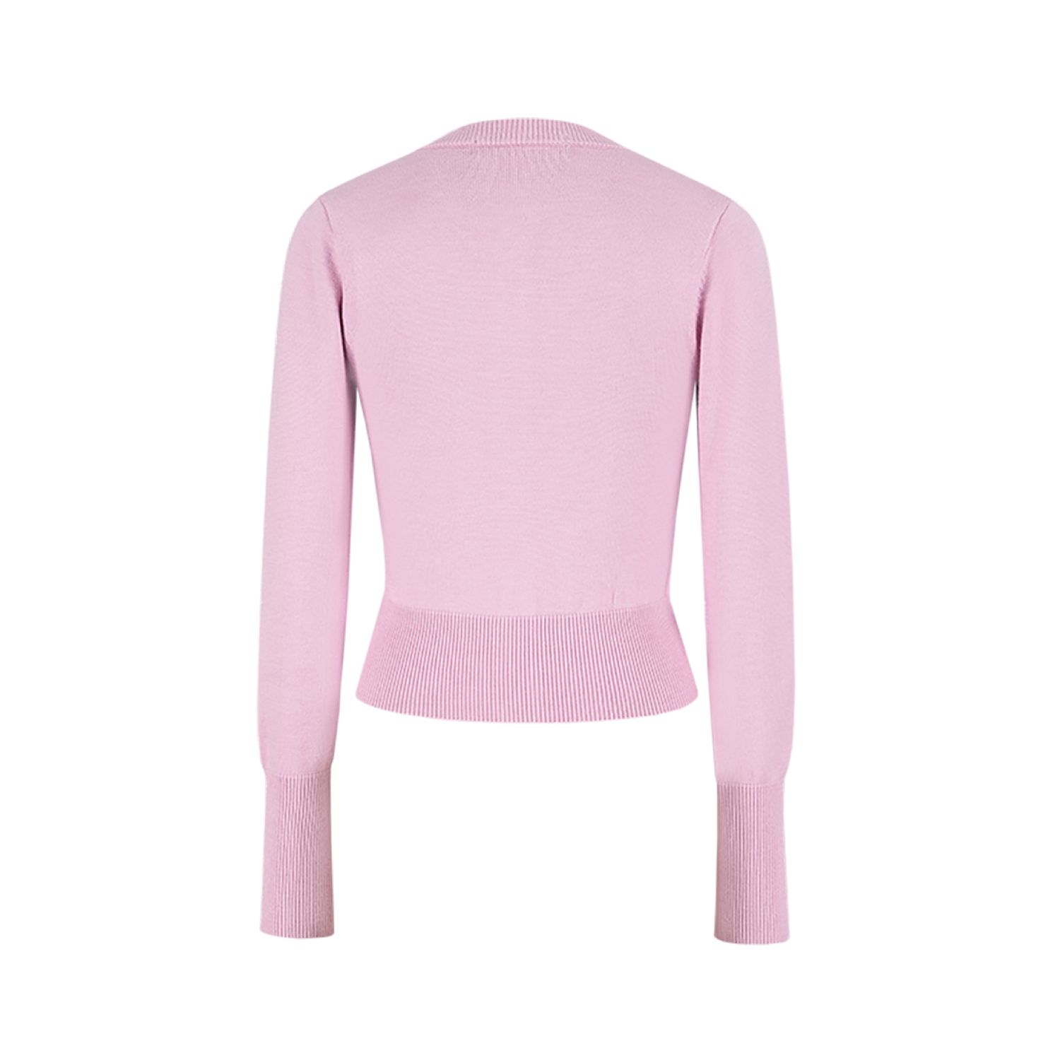 This basic knitted cardigan is designed to deliver a soft, comforting wearing experience with a refined, feminine touch. Crafted from a skin-friendly yarn blend, it feels gentle and smooth against the body, offering lightweight warmth and everyday comfort.