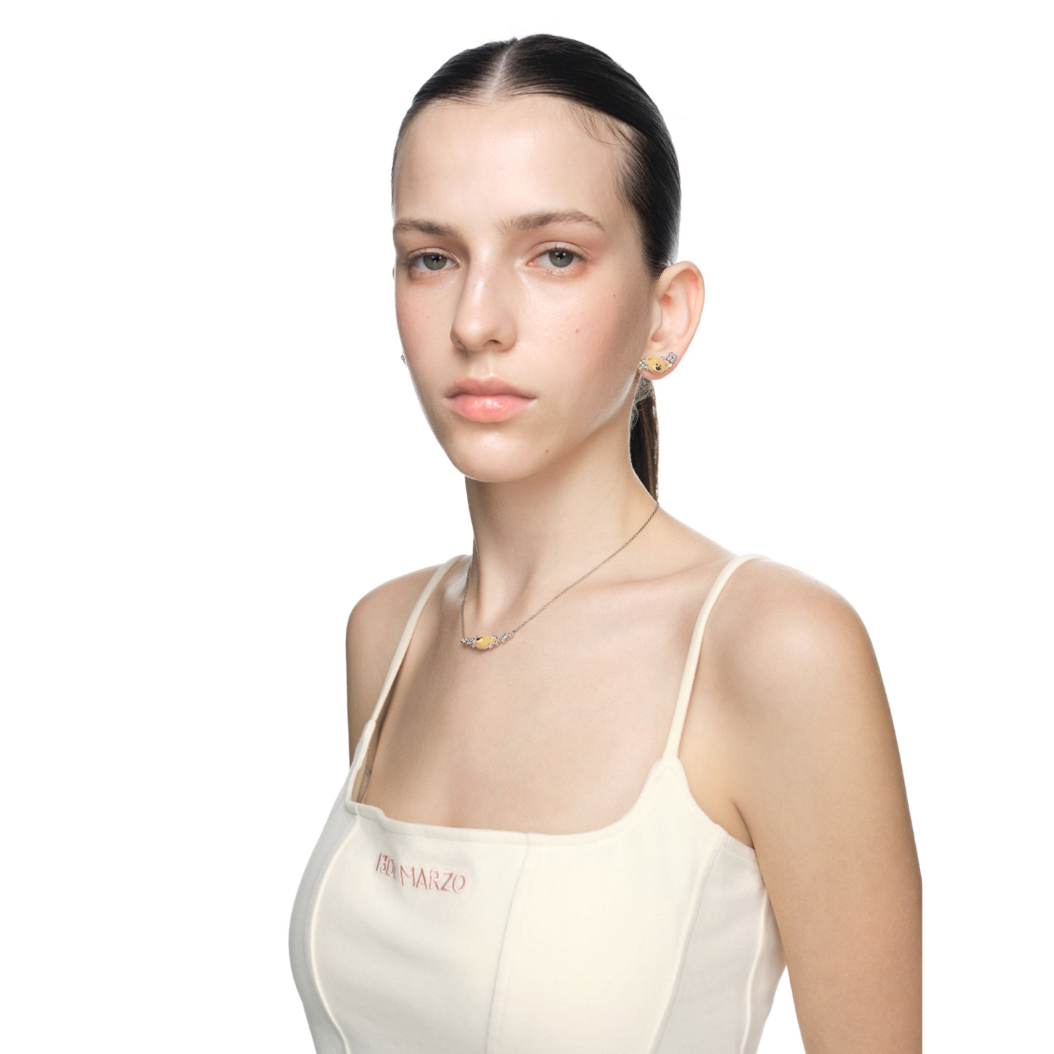 Scattered white diamonds add subtle highlights, reminiscent of the garden’s shimmering light spots drifting through the air. Blending artistic poetry with playful imagination, the design comes alive with every movement, letting Impressionist hues unfold delicately beside the ear. A true piece of wearable art, created to express romance through refined detail.